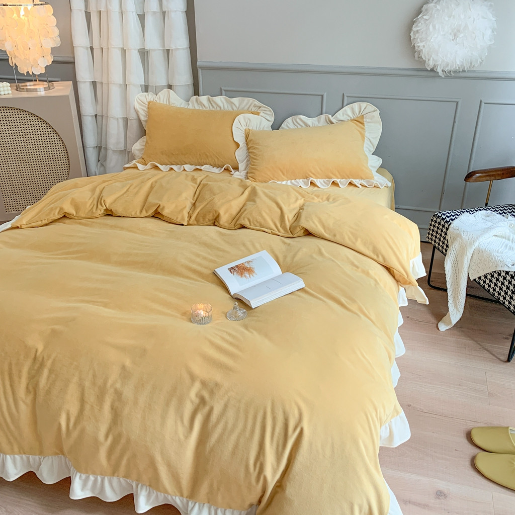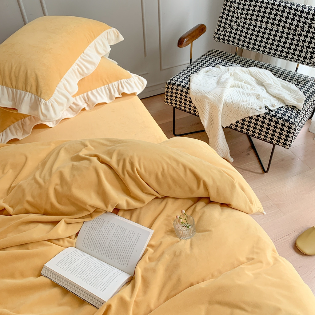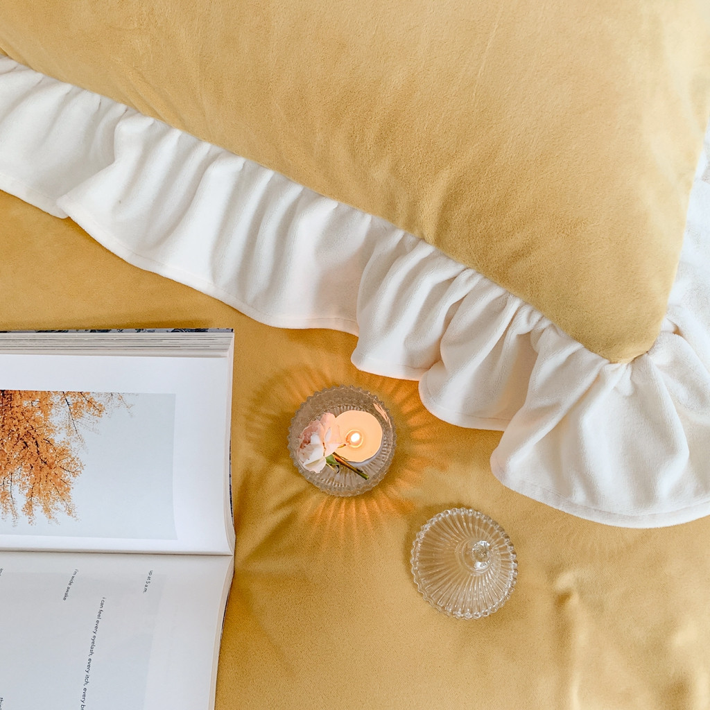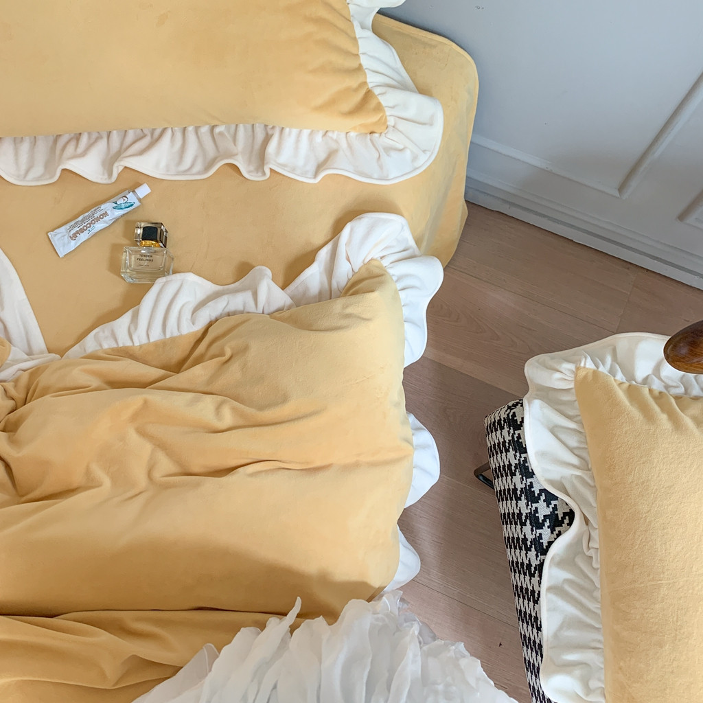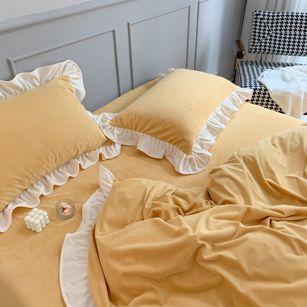 时年 2021新款婴肤绒纯色花边款四件套 杨枝甘露