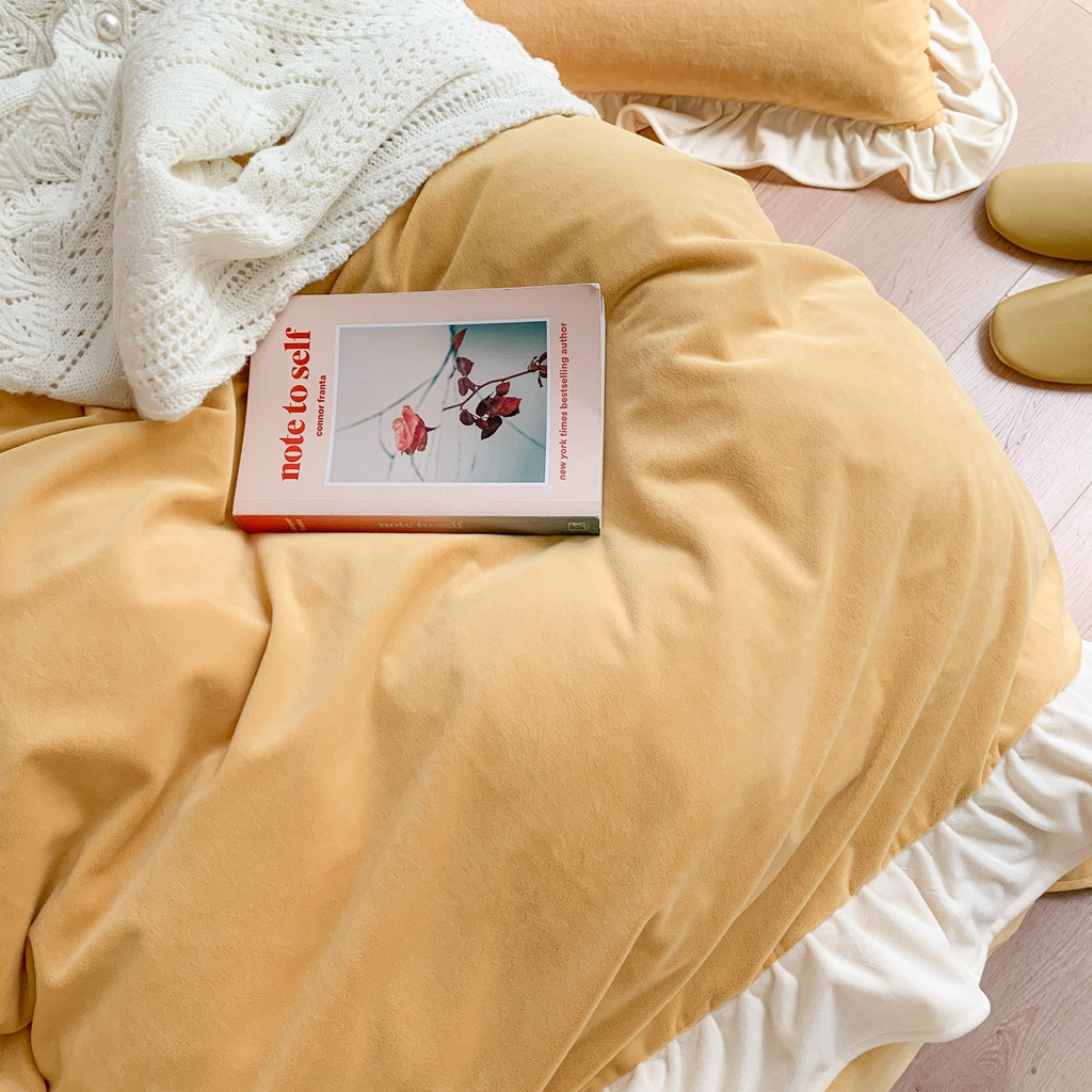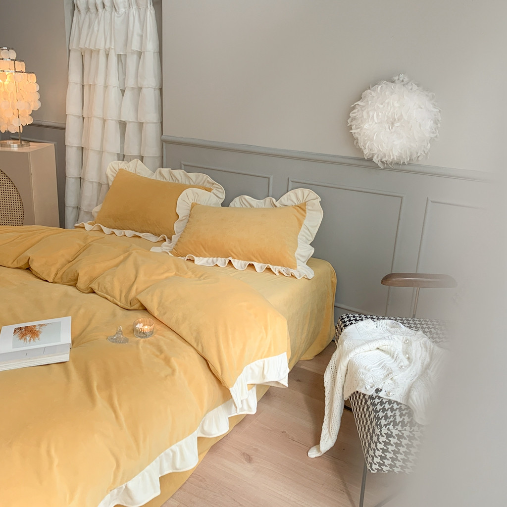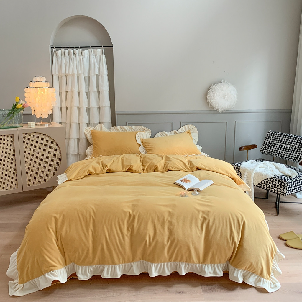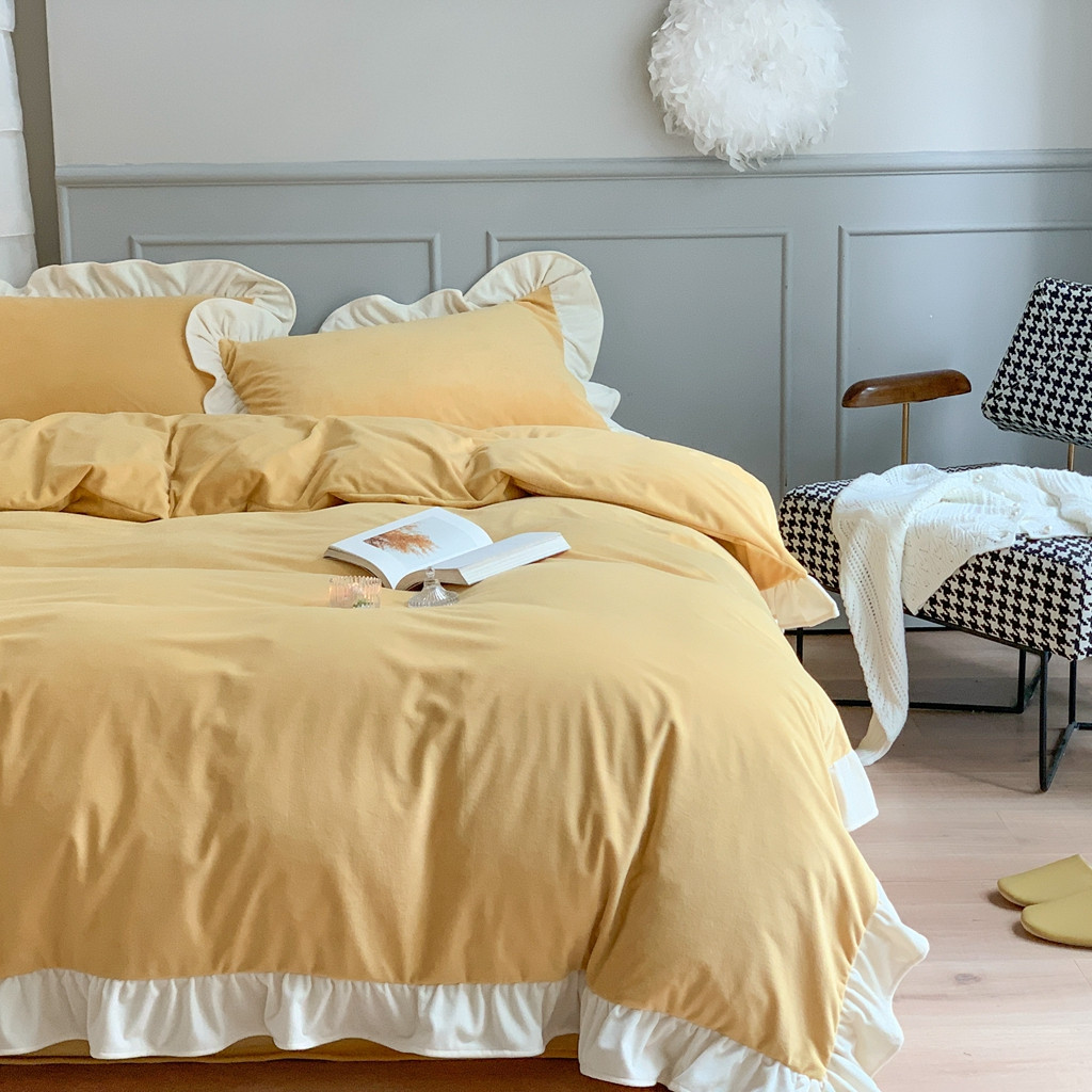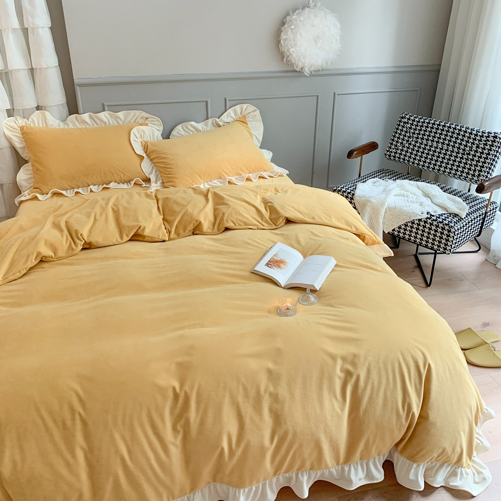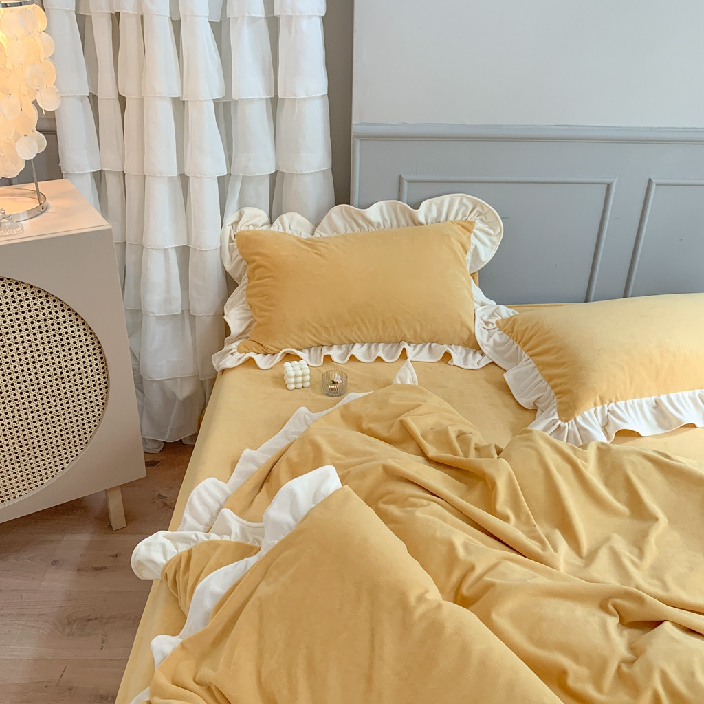 时年 2021新款婴肤绒纯色花边款四件套 杨枝甘露