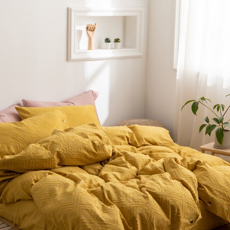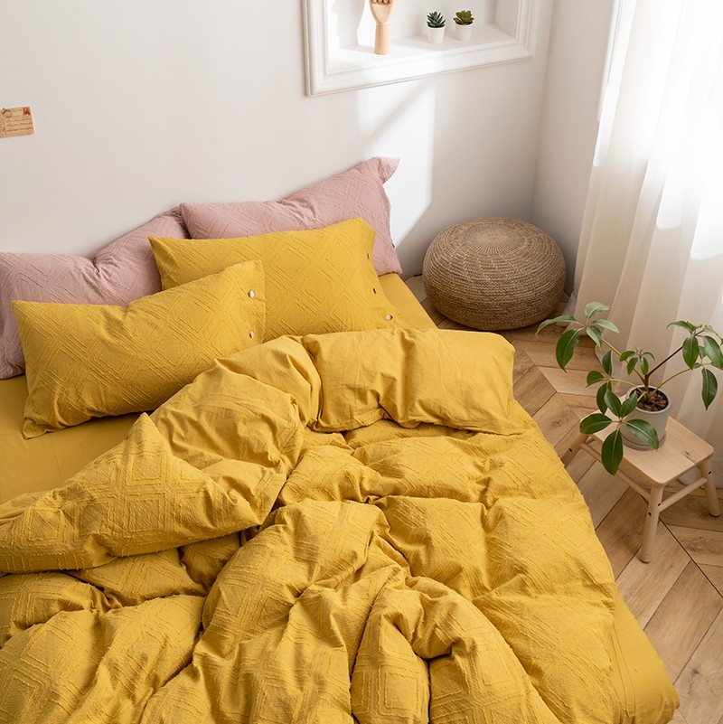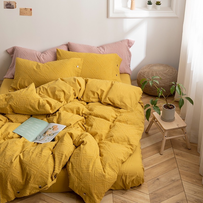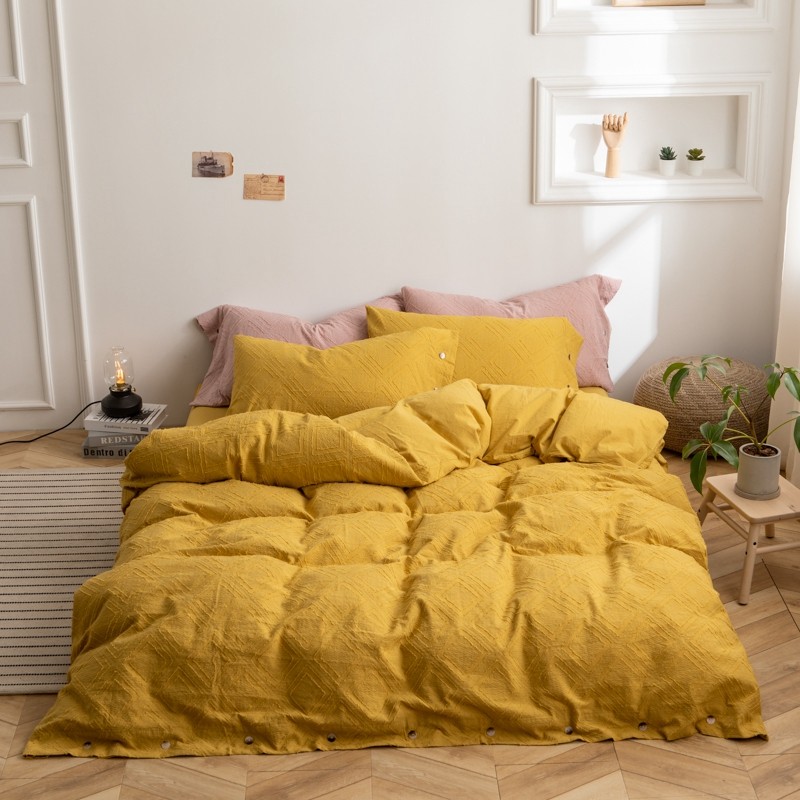 (总)简家居2025新款40支全棉色织空气棉四件套-鎏金喜韵,鎏金喜韵