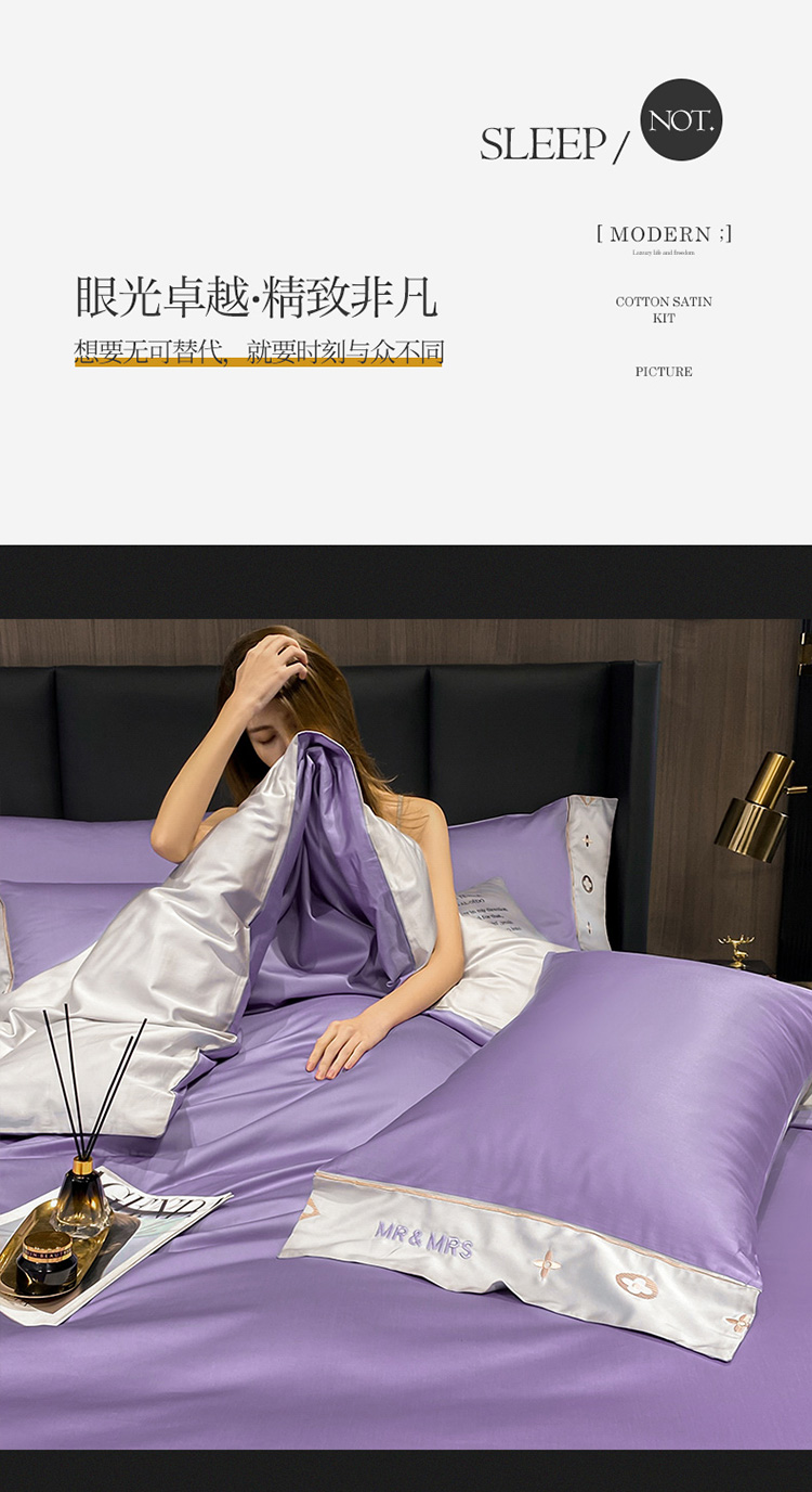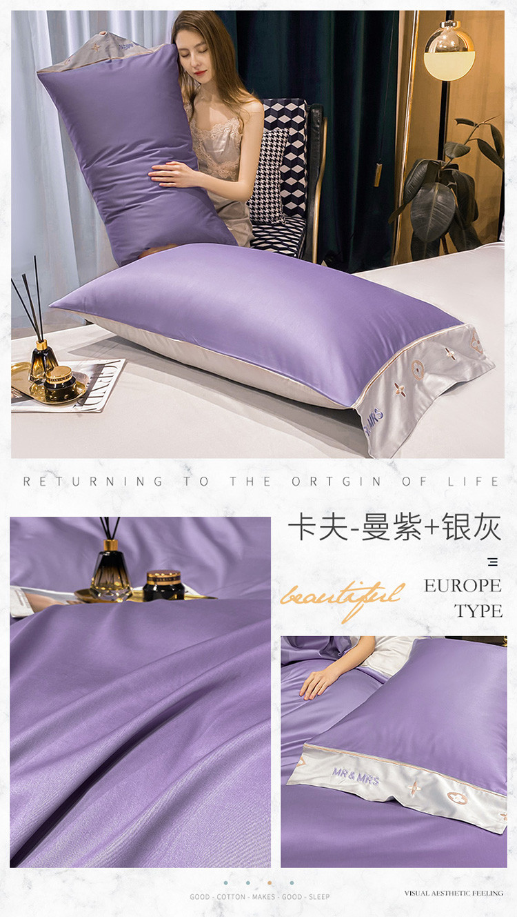 • 91家纺网 家纺一手货源 找家纺 蓝米卡夫 2021新款艾迪&卡夫单枕套 卡夫-曼紫+银灰
