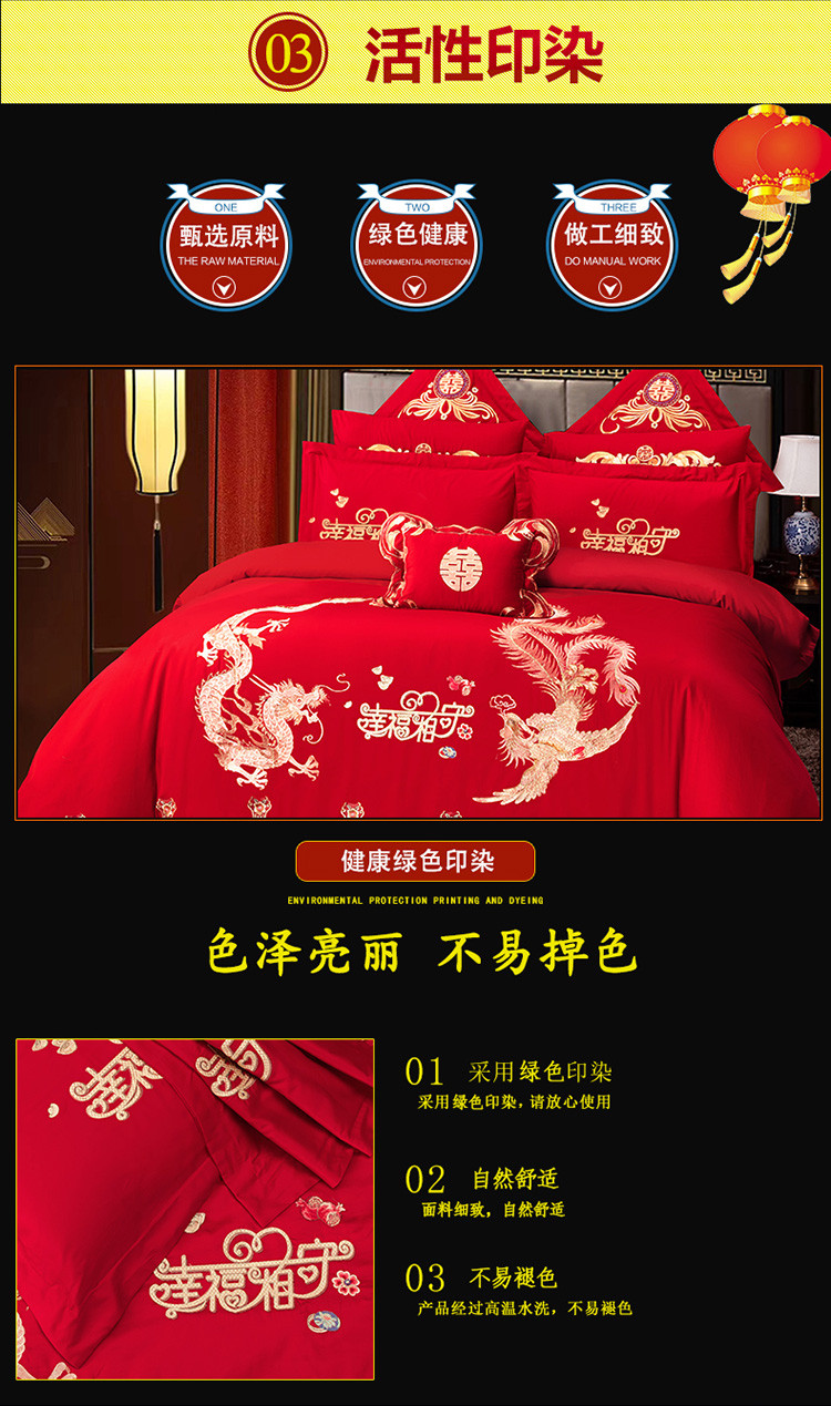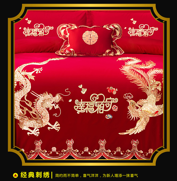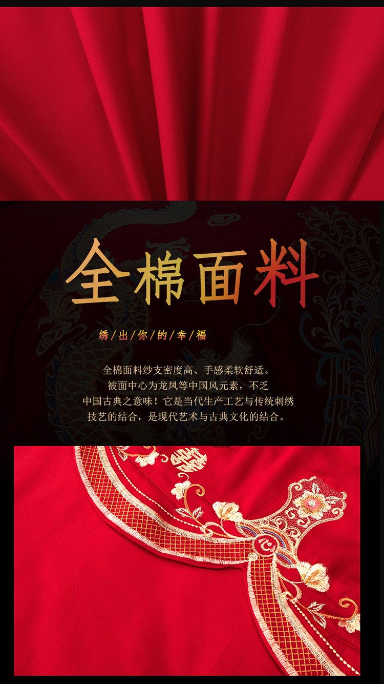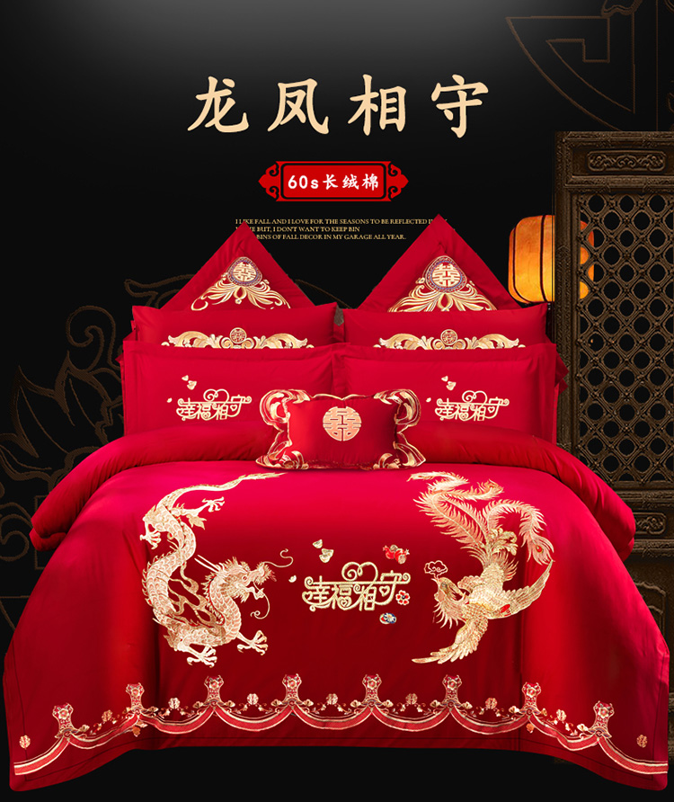 当前位置: 91家纺网 > 商品网购 > 床品套件 > 四件套 > 婚庆四件套 > 慕她 2025四件套大红色刺绣花结婚全棉纯棉多件套 龙凤相守