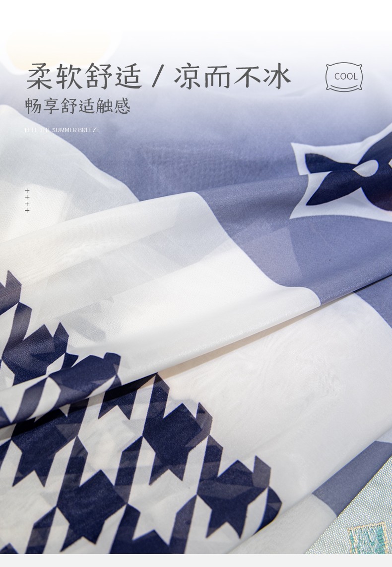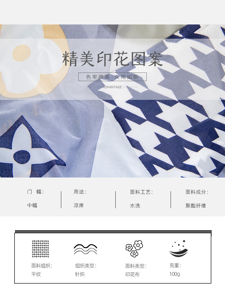 新动力 2021新款乳胶凉席面料凉感丝面料针织平网印花系列