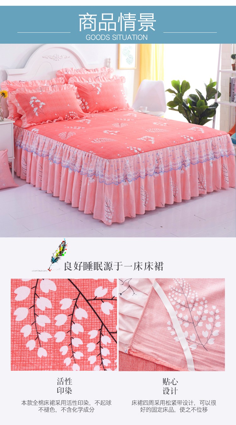 商品名称:艾裙海床笠 2025新款韩版蕾丝单床裙叶语浪漫-红