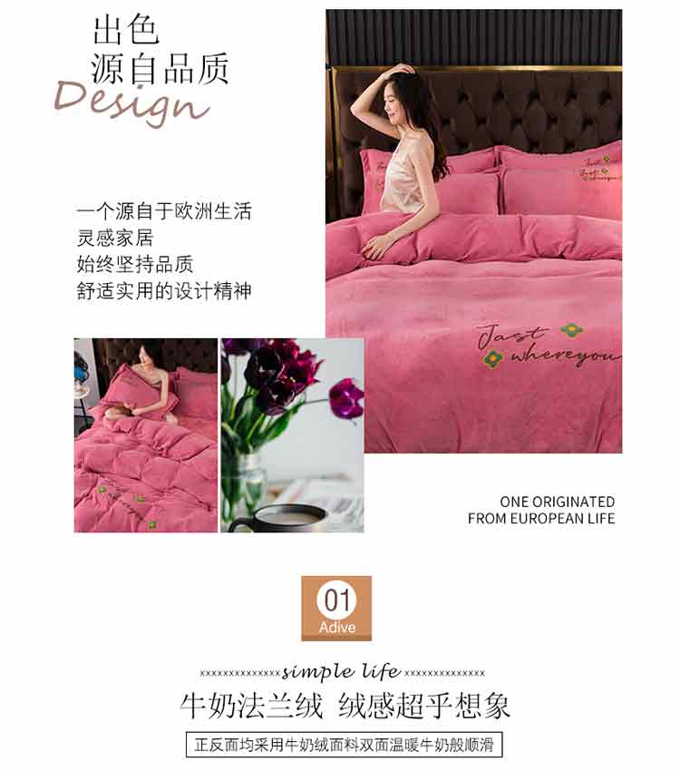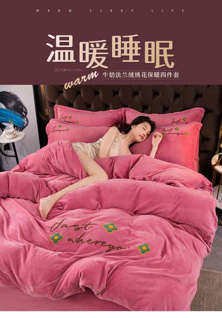 (总)富之航 ) 新款直播绣花高克重加厚牛奶绒法莱绒四件套