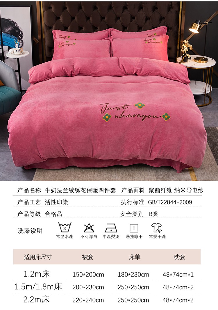 (总)富之航 2024新款宝宝绒刺绣四件套加厚牛奶绒绣花四件套婴儿绒四件套,邂逅-宝蓝,邂逅-豆沙粉,邂逅-绯红,邂逅-湖绿,邂逅-活力橙,邂逅-蔷薇粉,邂逅-蔚蓝,邂逅-湘妃玉,邂逅-银灰