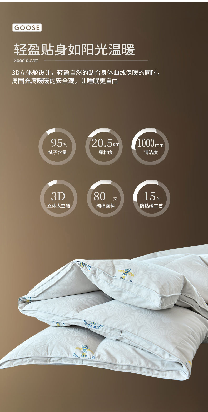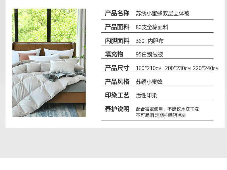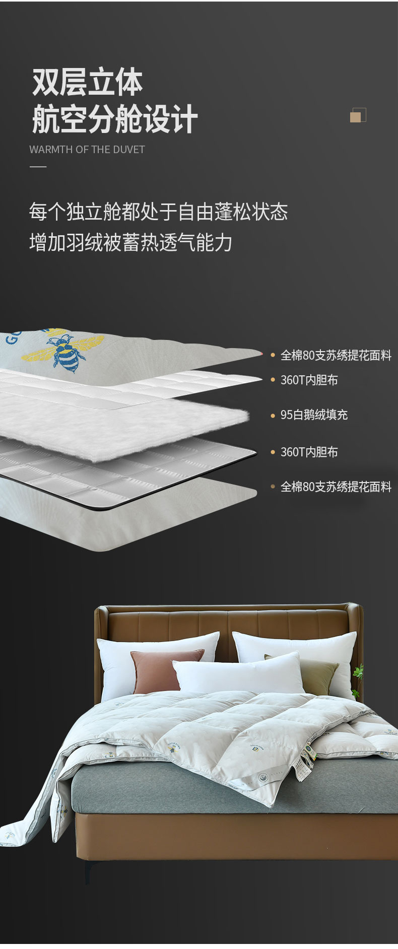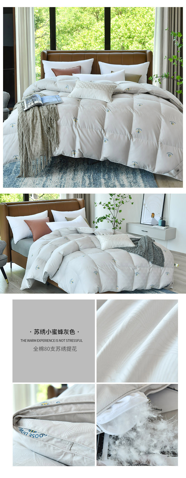 商品名称:绒研羽绒 2025新款苏绣小蜜蜂双层立体95白鹅绒羽绒被冬被 灰色