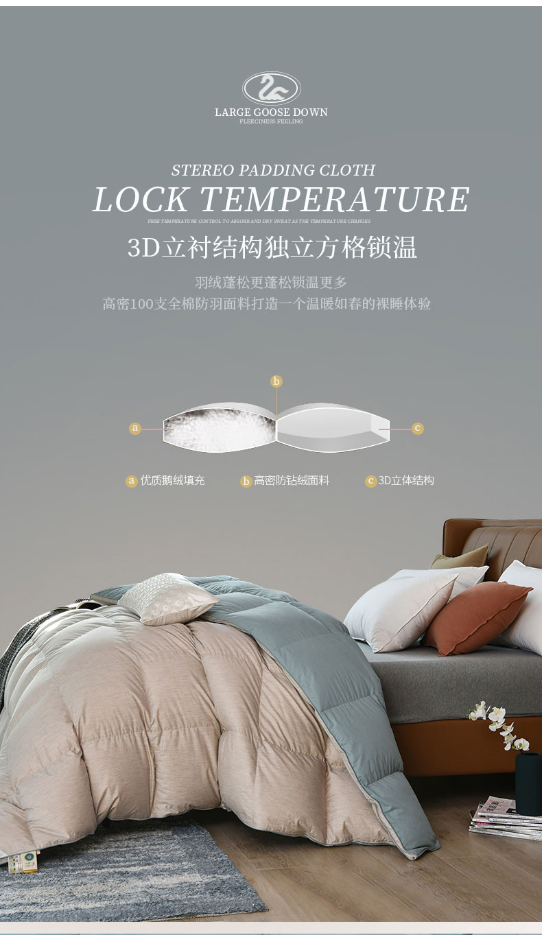 (总)绒研羽绒 2025新款60支长绒棉95白鹅绒立体扭花被,白色,灰色,豆沙