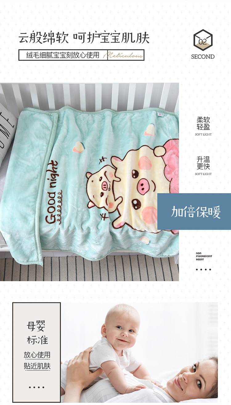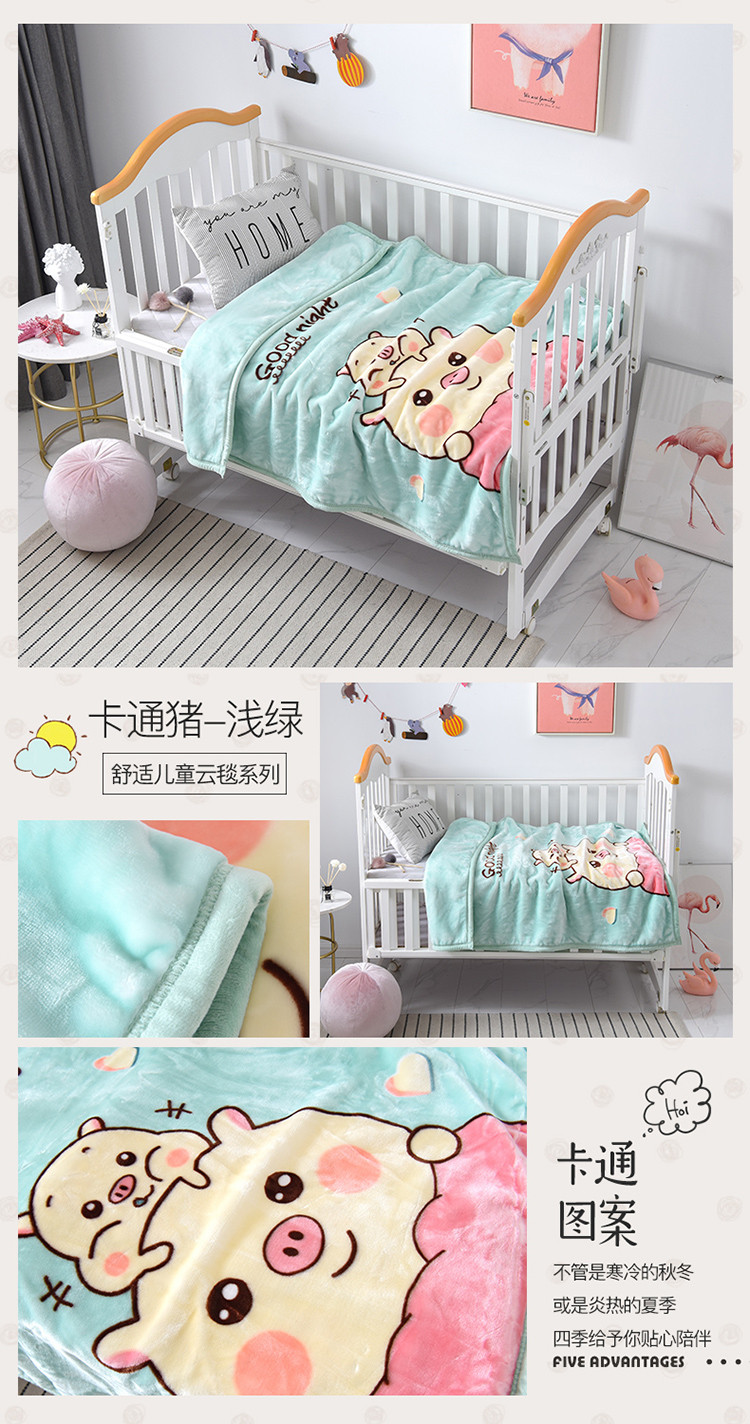 商品名称:凯轩毛毛毯毯子 2024新款双层儿童云毛毯毯子盖毛毯毯子毛毯毯子子 卡通猪-浅绿