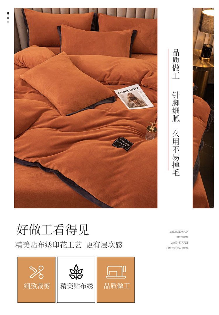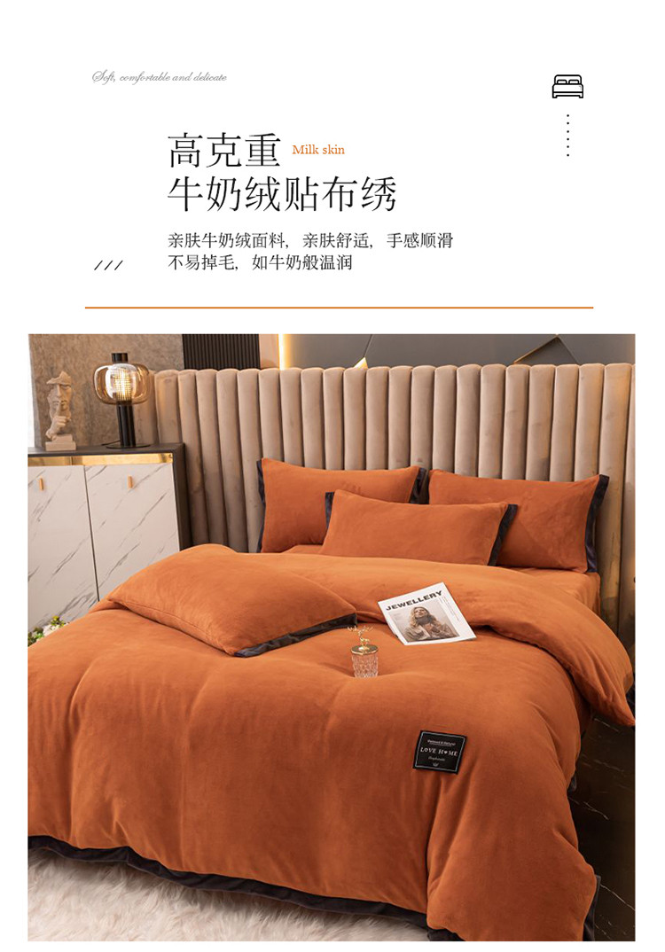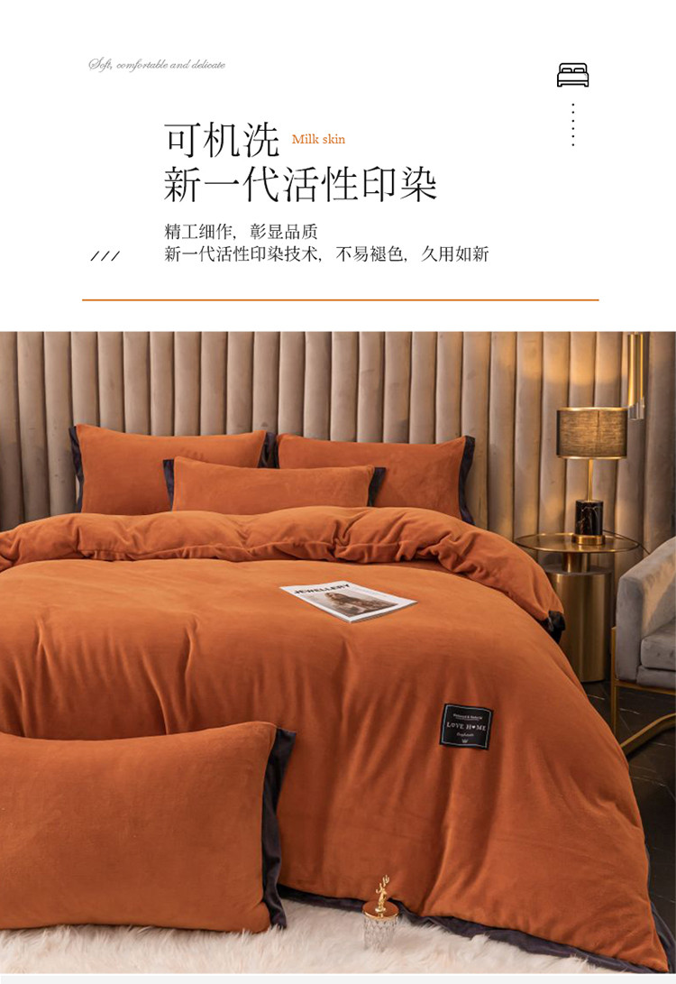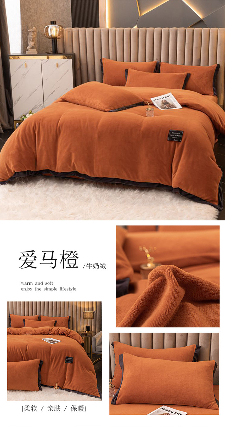 大米家居 新款高克重宽边牛奶宝宝绒法莱亲肤绒四件套荣耀爱马橙
