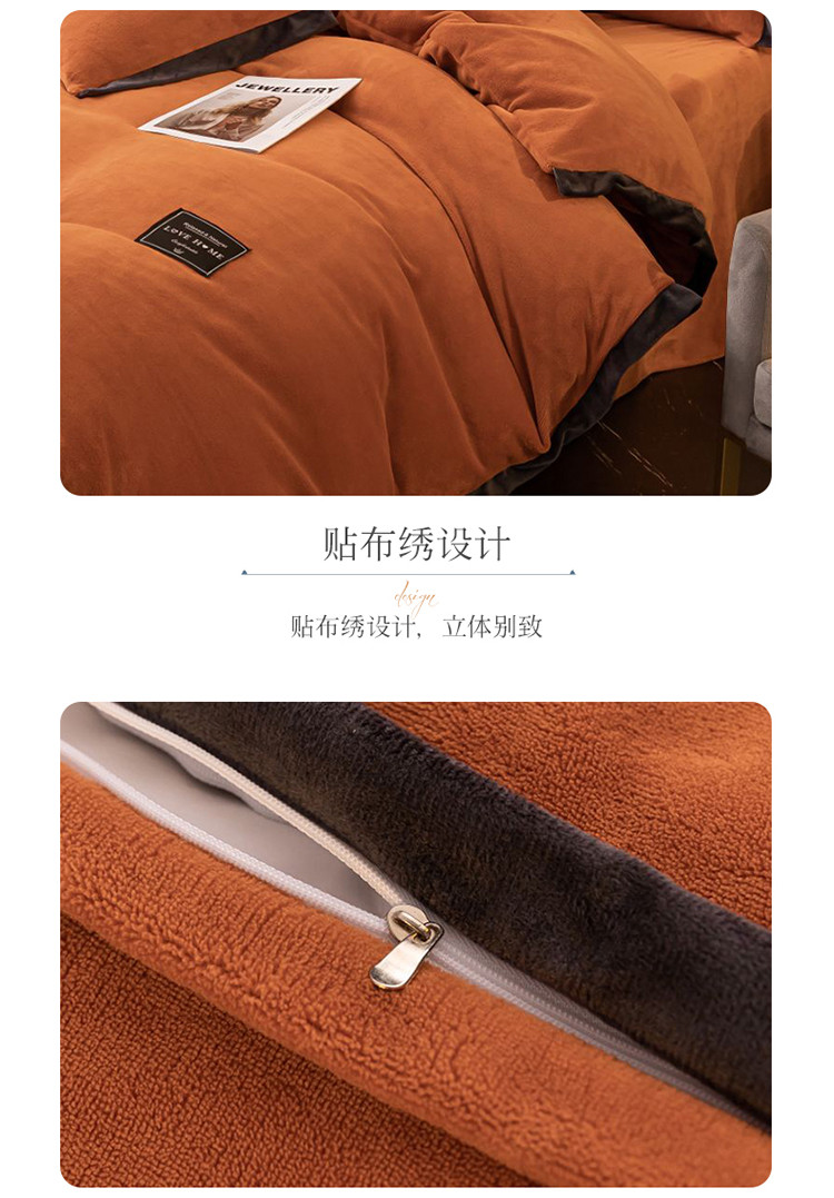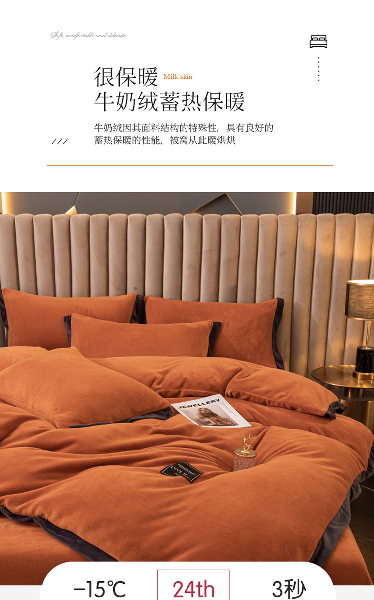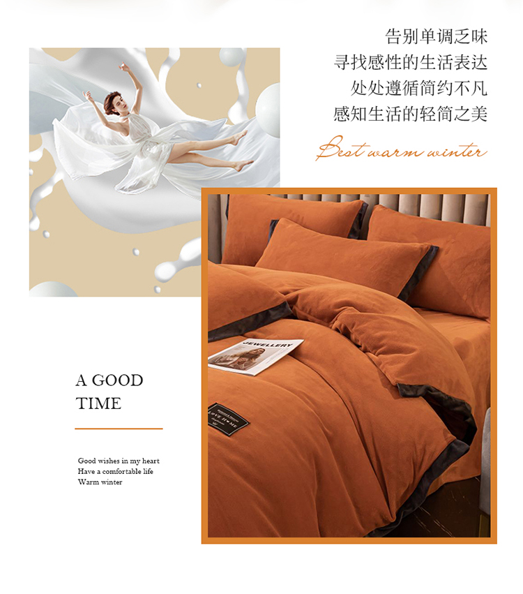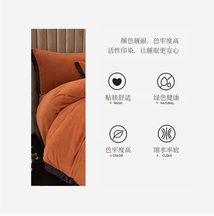 大米家居 新款高克重宽边牛奶宝宝绒法莱亲肤绒四件套荣耀爱马橙