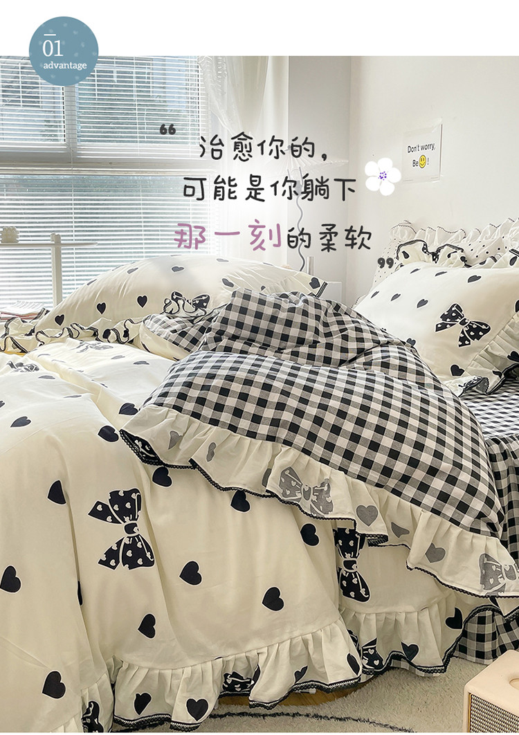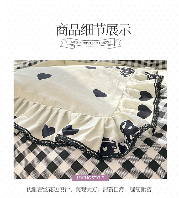 婳庭家居 2021新款ins风黑白简约风系列四件套爱心蝴蝶结
