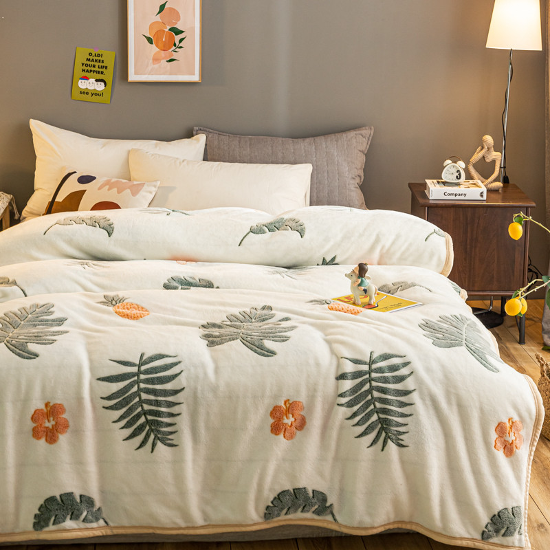 好艺佳 新款240克雪花绒毯法莱绒毯床单加厚毛毯 海岛风情