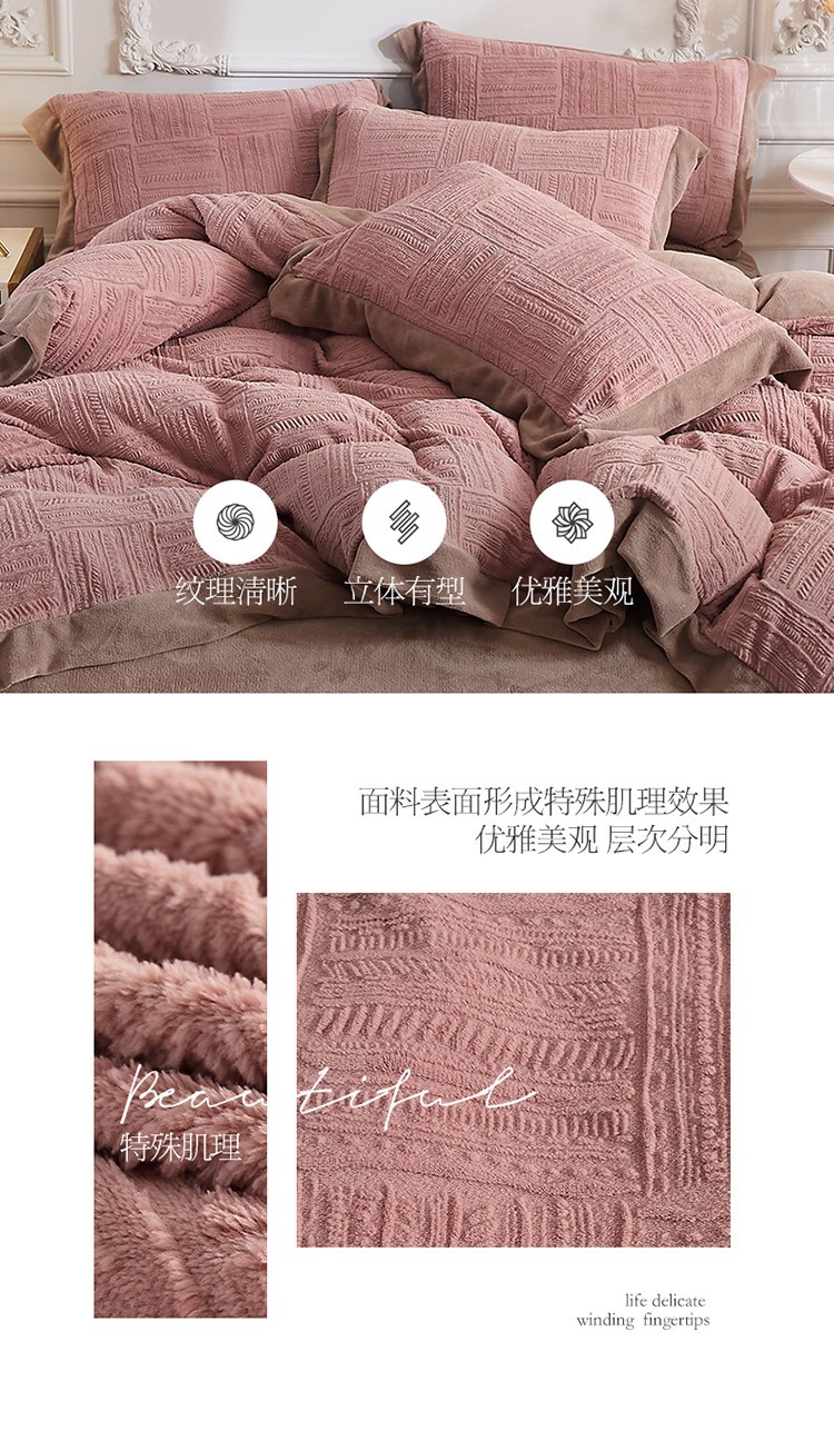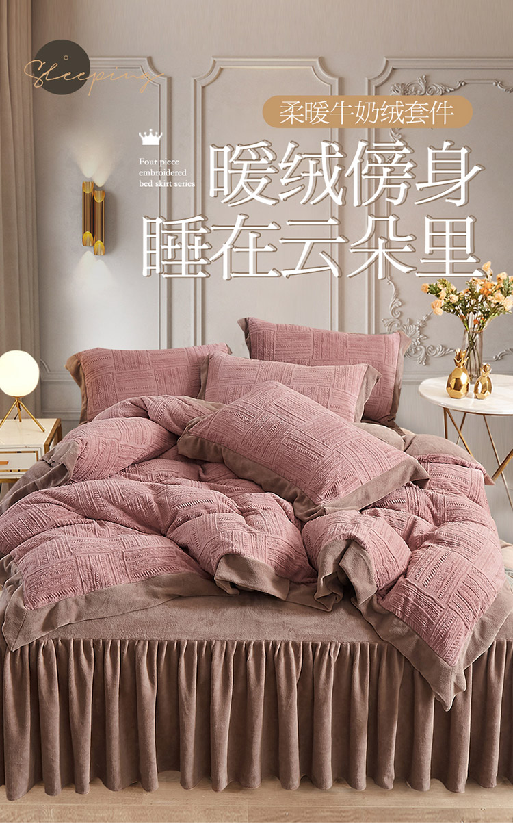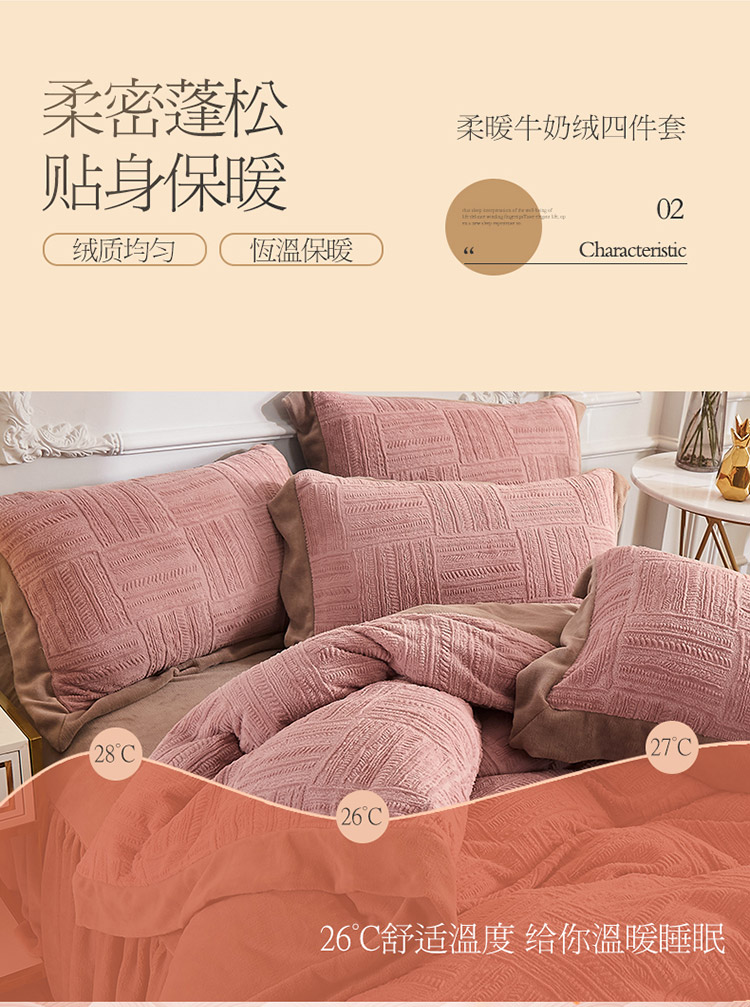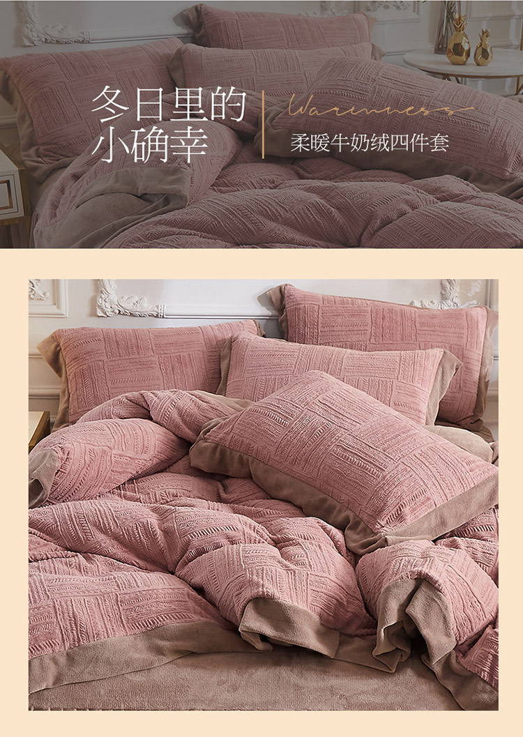 当前位置: 91家纺网 > 商品网购 > 床品套件 > 四件套 > 牛奶绒四件套 > 网红馆 2025新款牛奶绒雕花四件套 浮世-豆沙