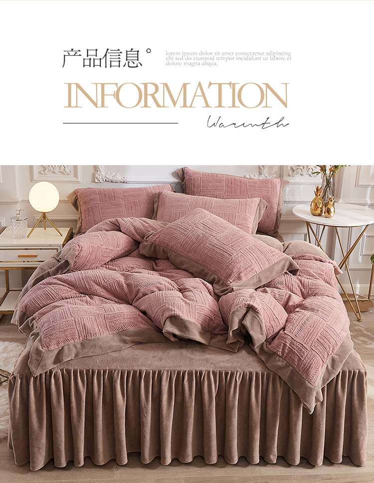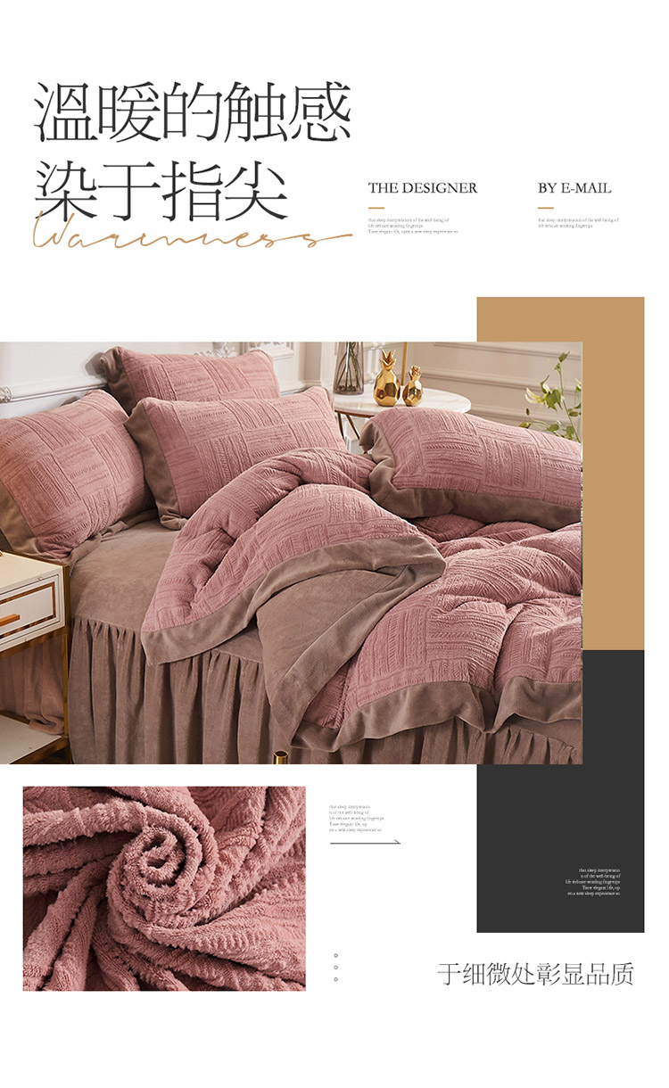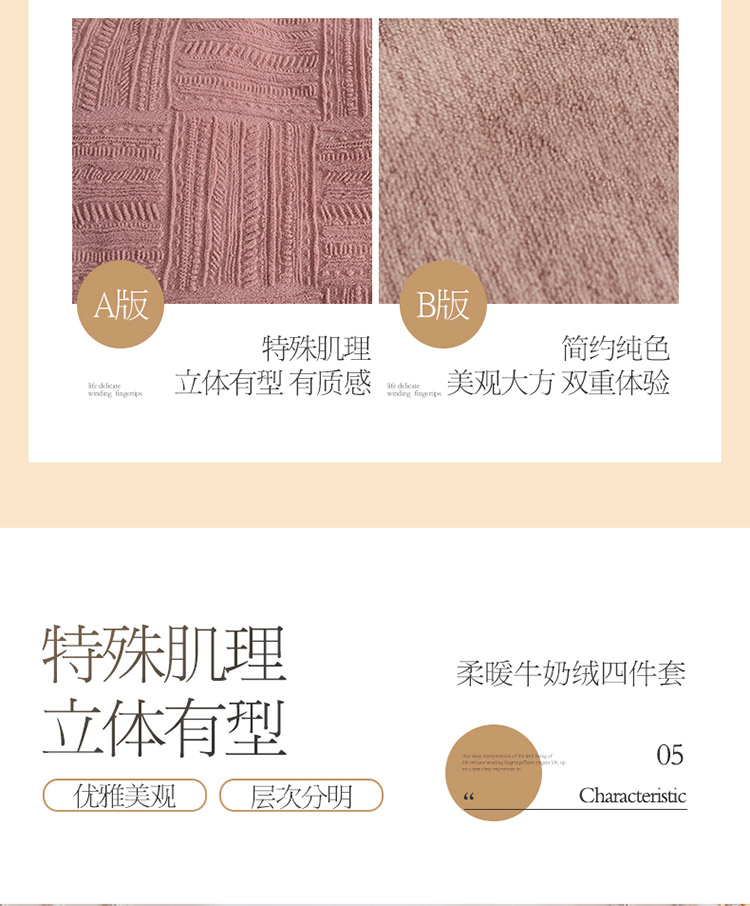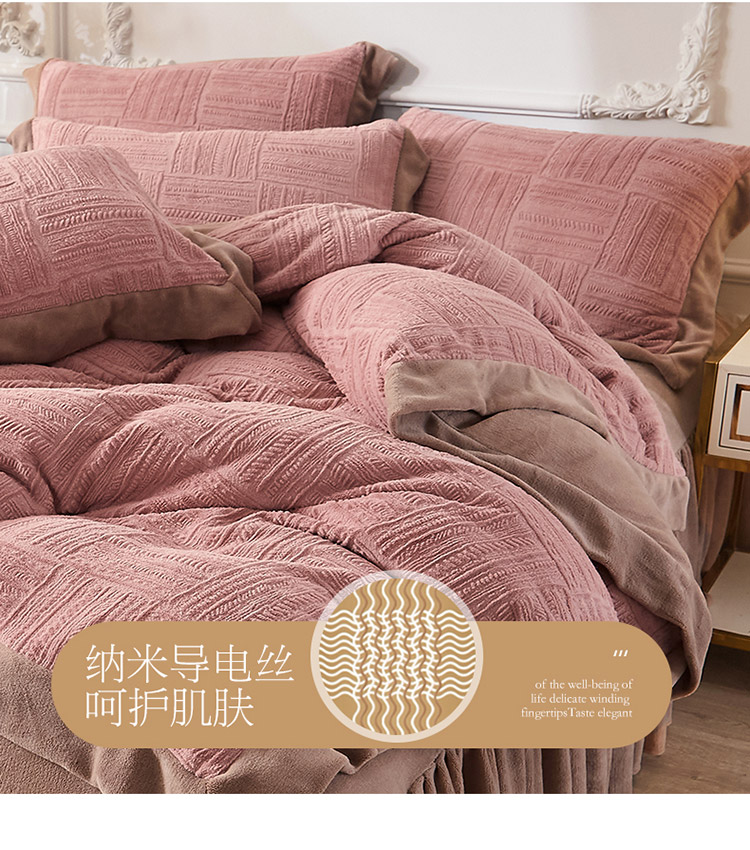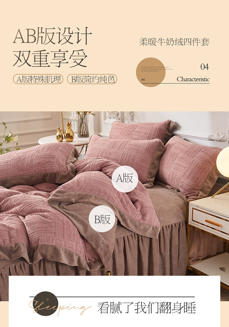 当前位置: 91家纺网 > 商品网购 > 床品套件 > 四件套 > 牛奶绒四件套 > 网红馆 2025新款牛奶绒雕花四件套 浮世-豆沙