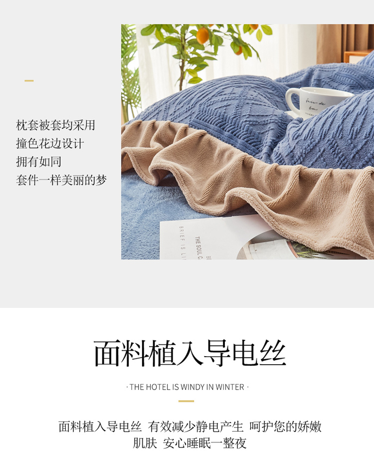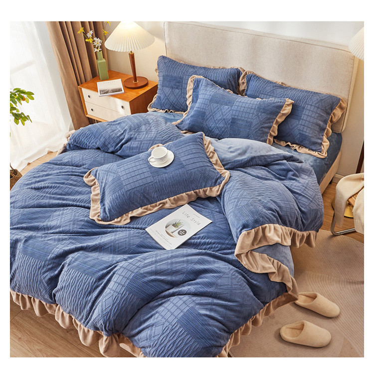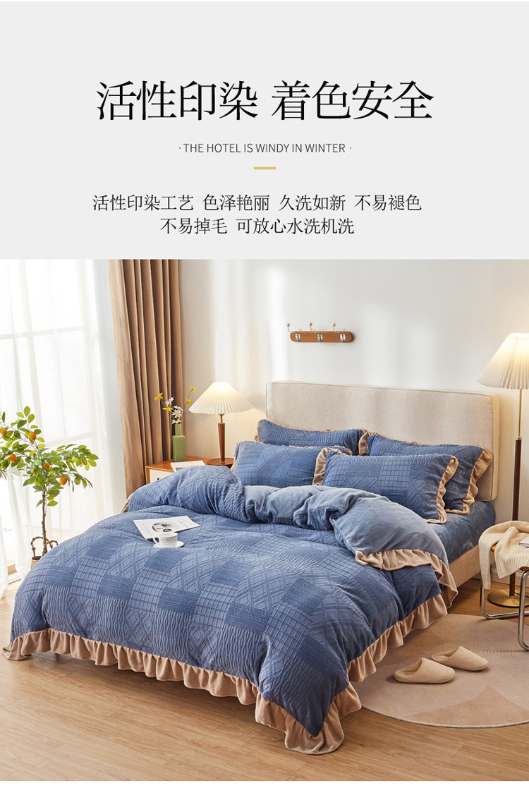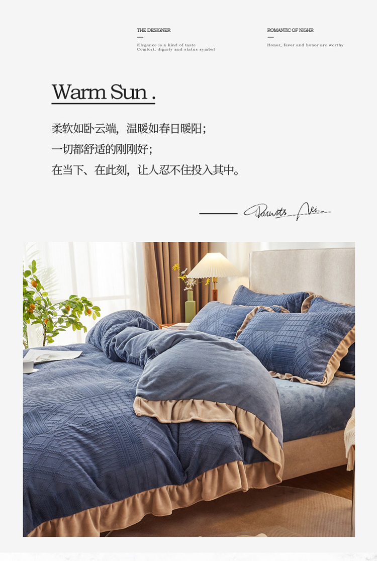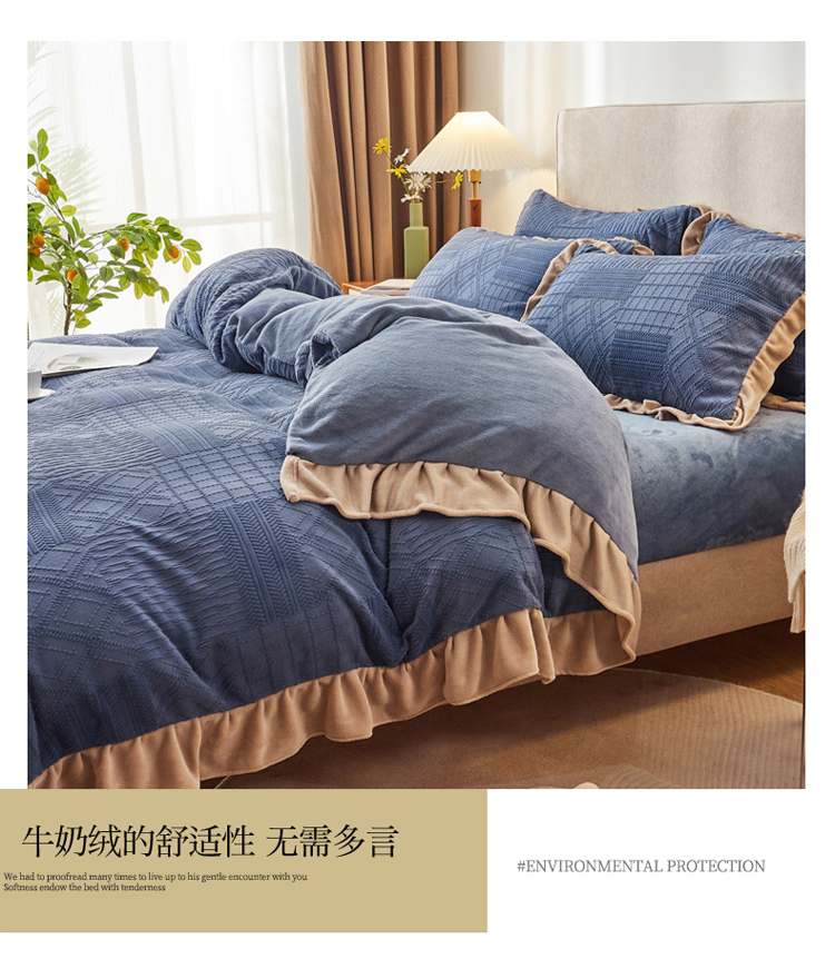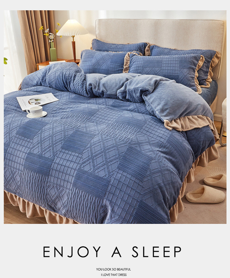 当前位置: 91家纺网 > 商品网购 > 床品套件 > 四件套 > 牛奶绒四件套 > 寐居2021新款韩版立体剪花牛奶绒四件套 浪漫-蓝