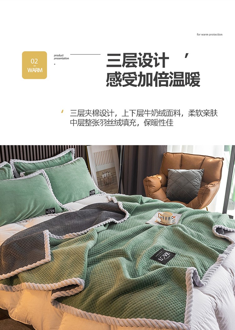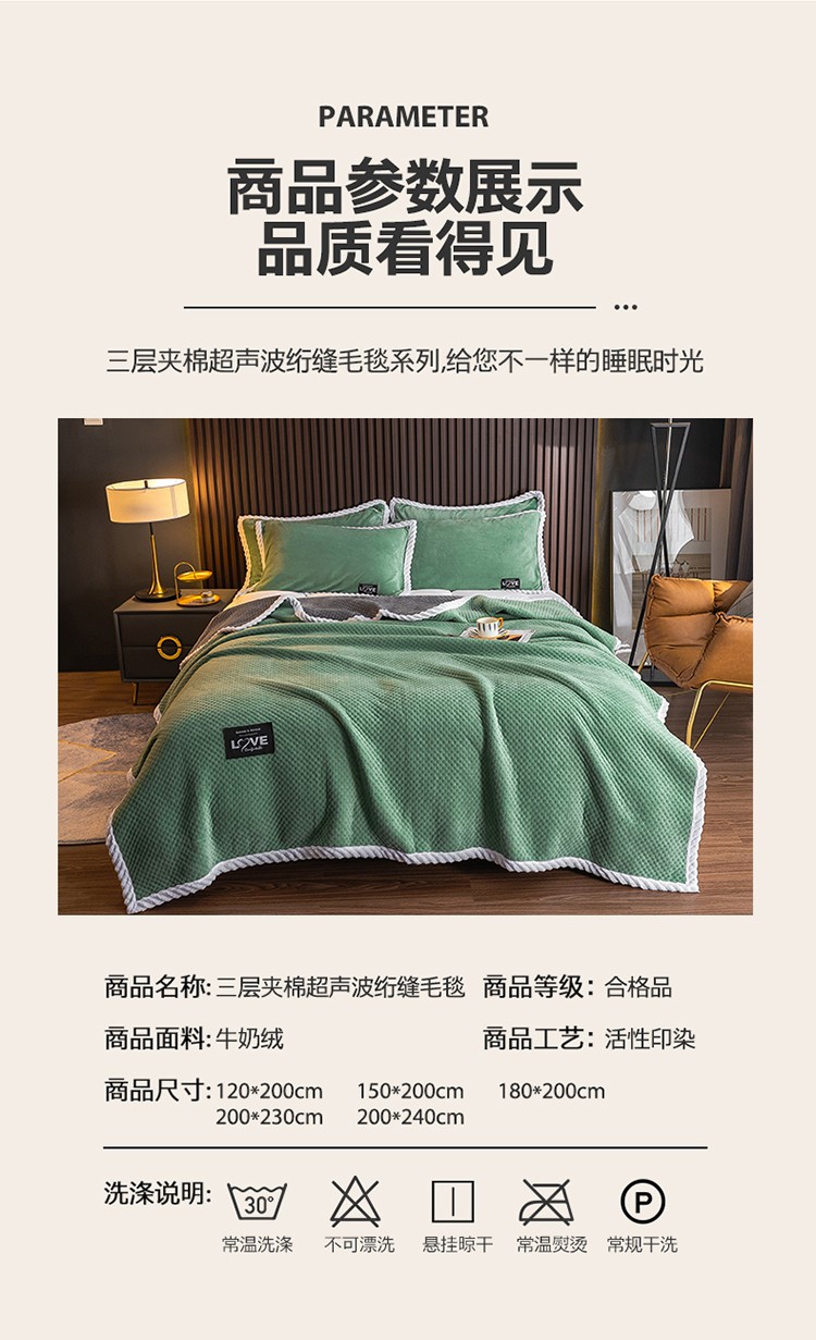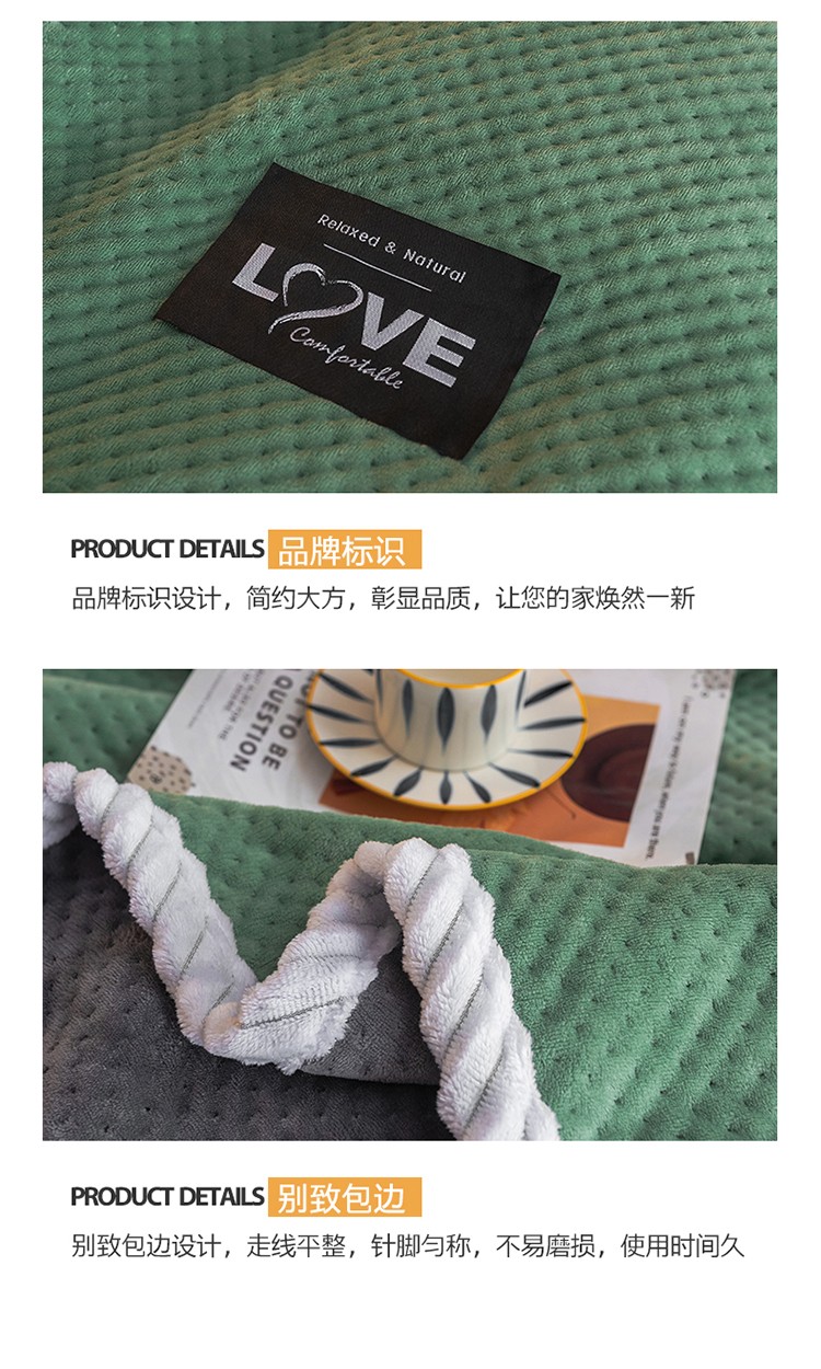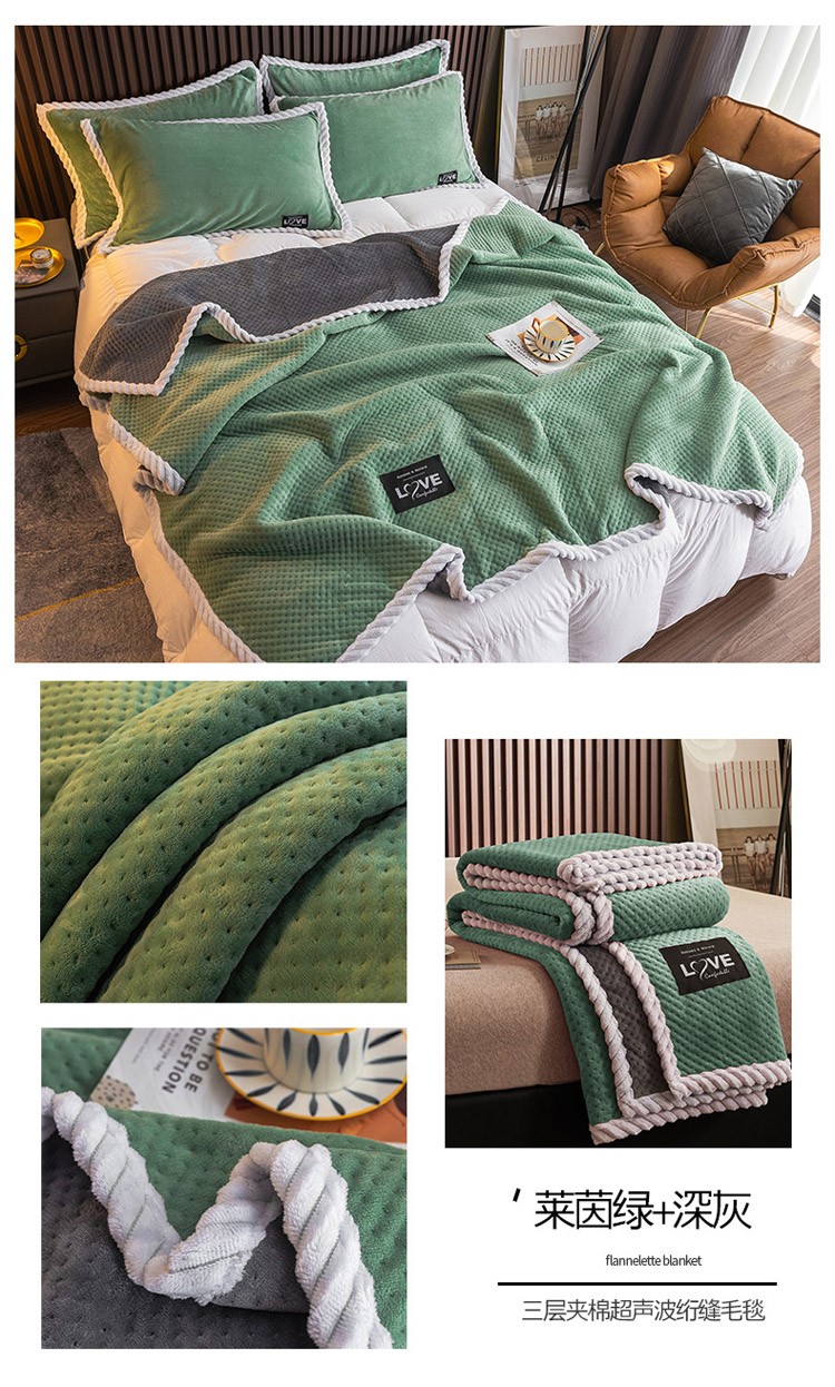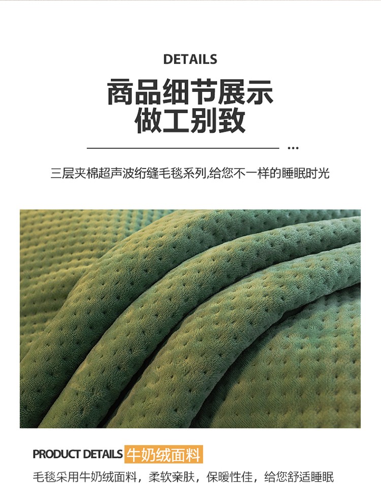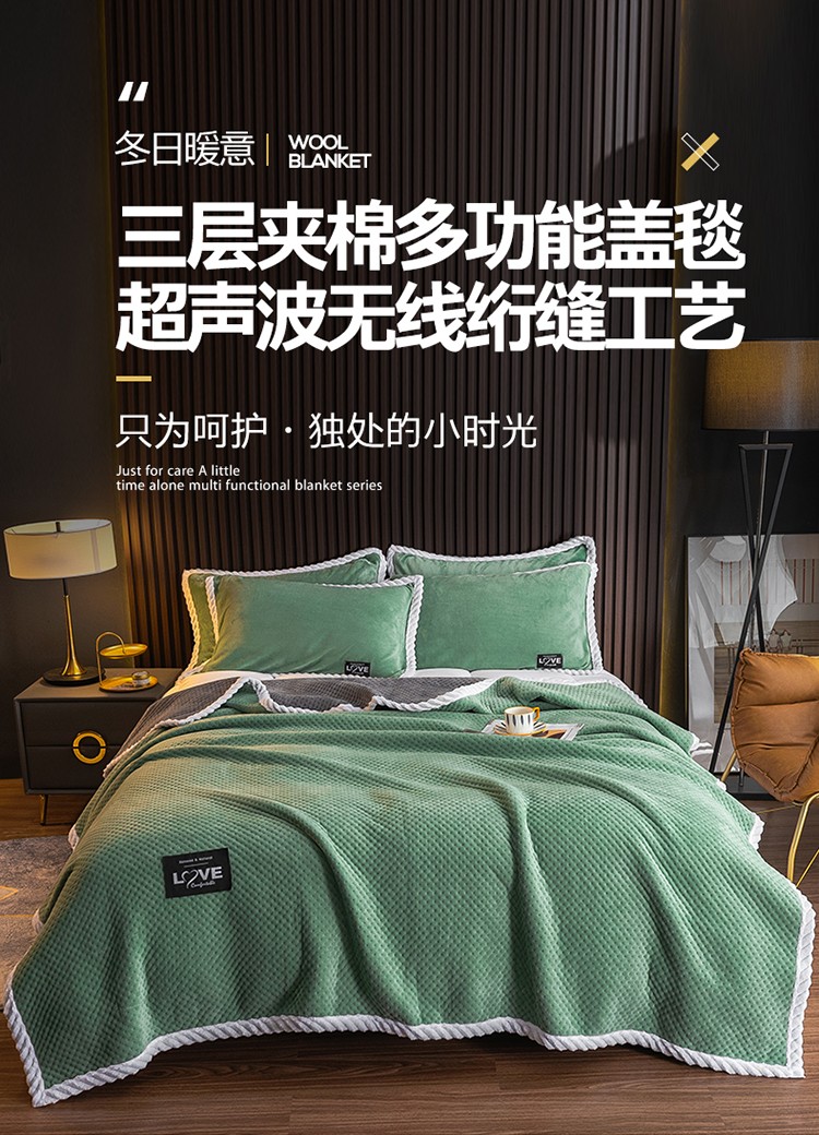 当前位置: 91家纺网 > 商品网购 > 毛毯休闲毯绒毯 > 毛毯 > 宅部落2021新款法莱绒牛奶绒毯三层夹棉多功能毛毯 莱茵绿+深灰