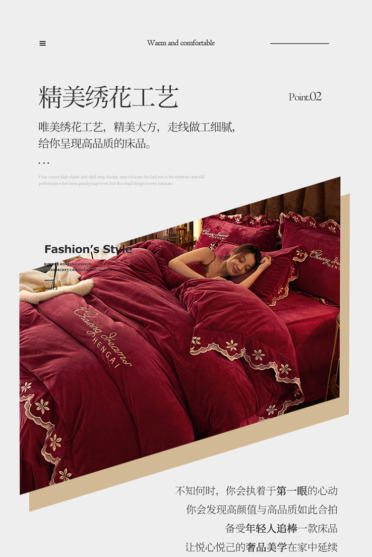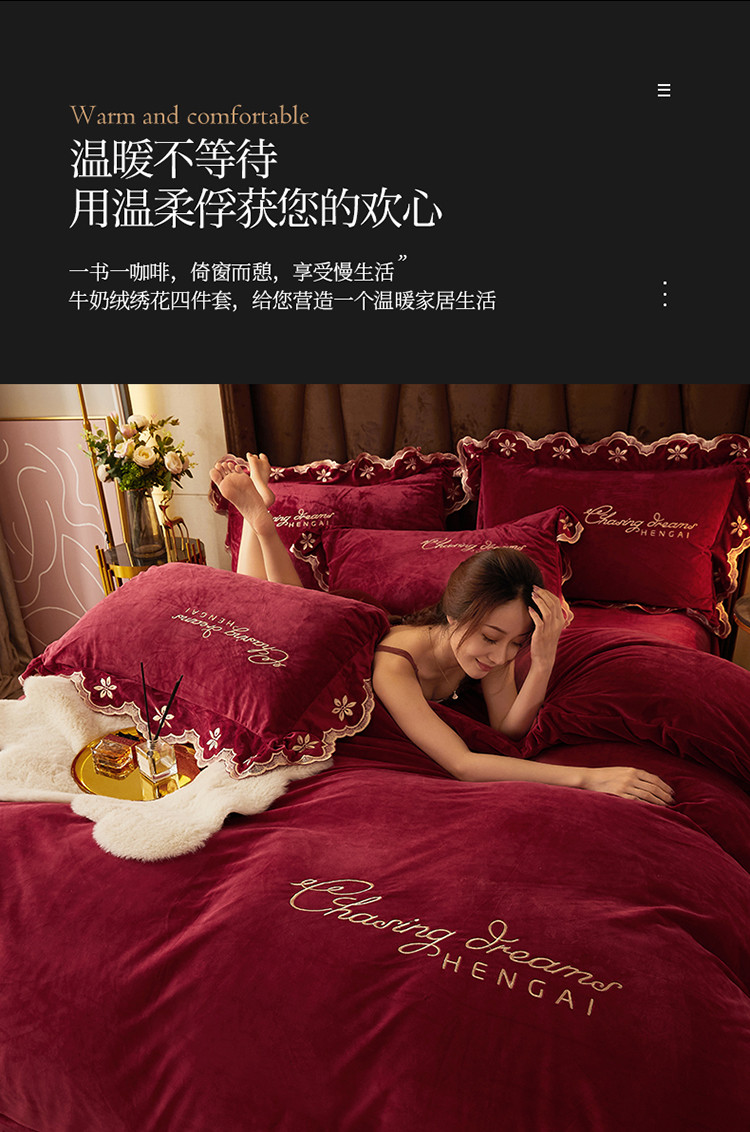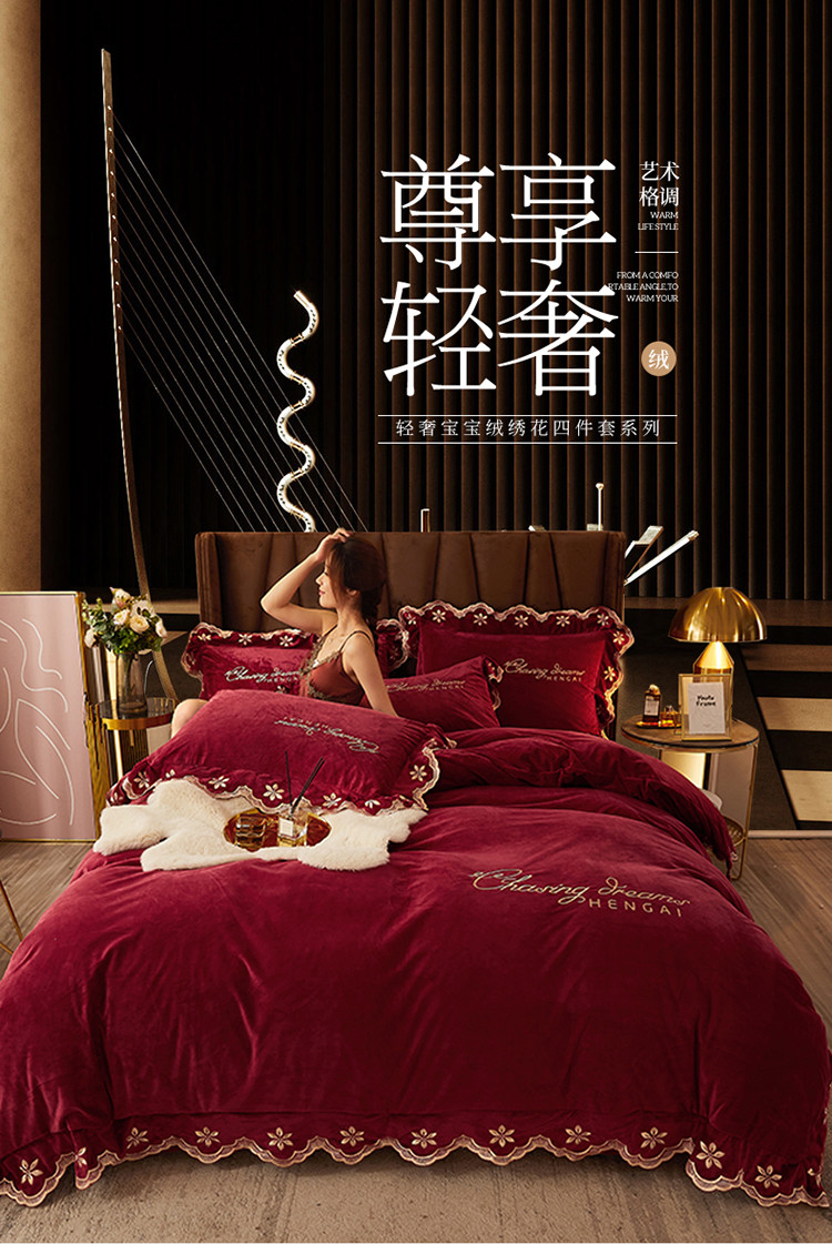恒爱 2021新款宝宝绒四件套梦想生活系列 酒红