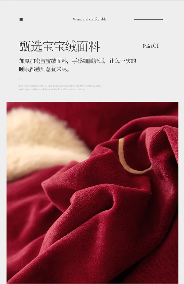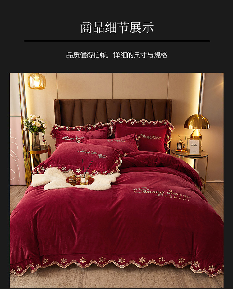 商品名称:恒爱 2021新款宝宝绒四件套梦想生活系列 酒红