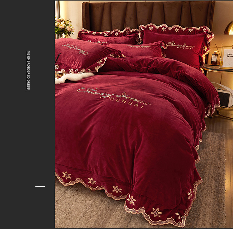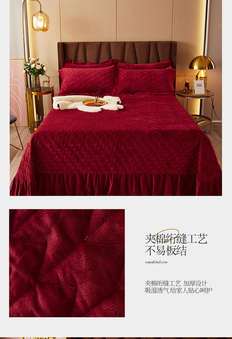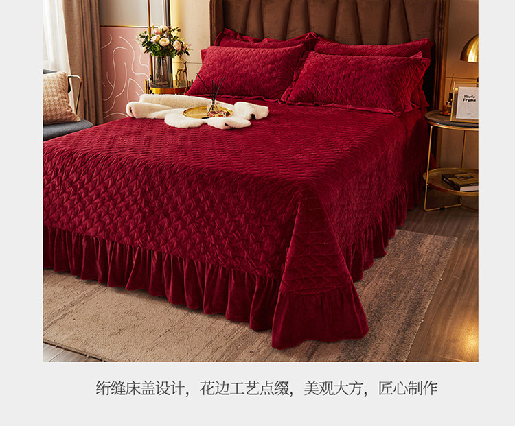 (总)恒爱 2022秋冬水晶绒翩翩花舞夹棉床裙四件套,大红色,豆沙红,橄榄绿,公主粉,桔色,咖啡色,孔雀绿,拉菲红,罗兰紫,玫红色,美人玉,米白色,米驼色,抹茶绿,浅灰色,紫色