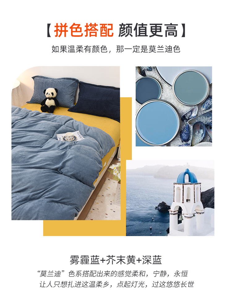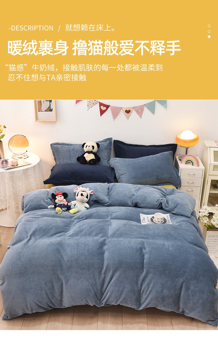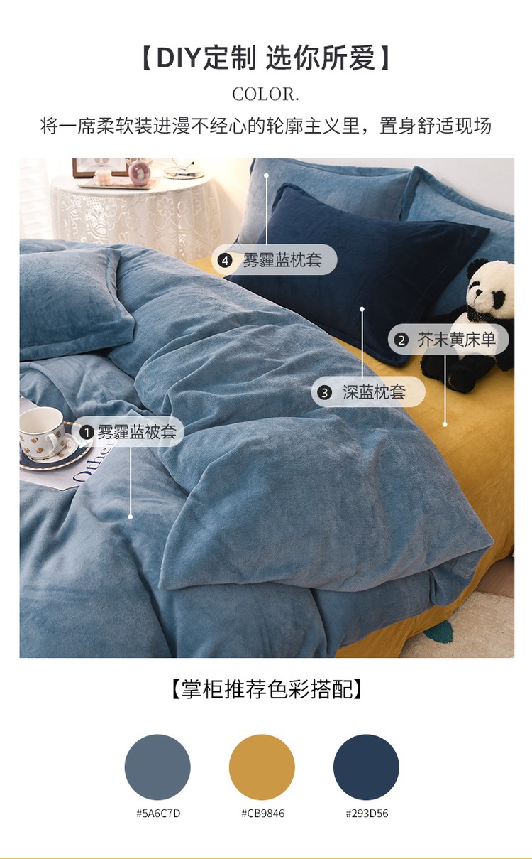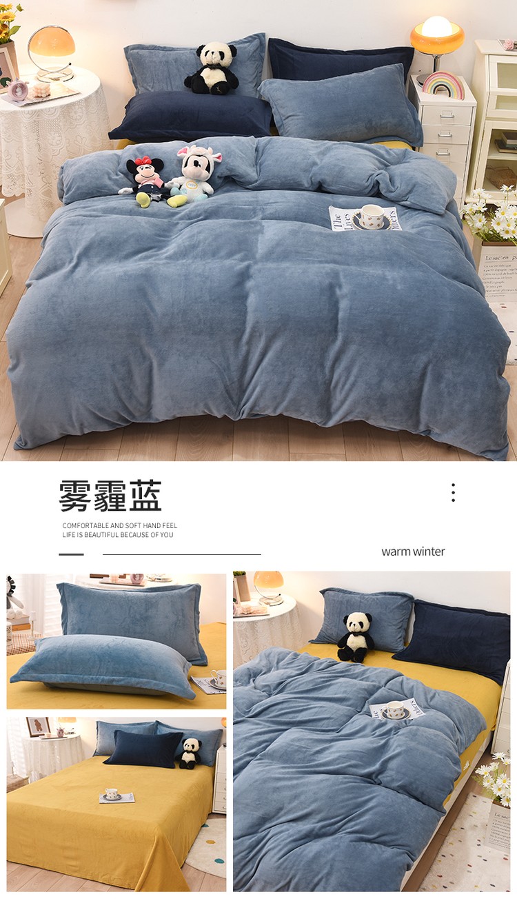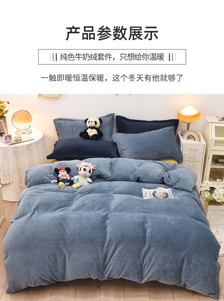 商品名称:优彩 2021新款高克重纯色混搭牛奶绒四件套 雾霾蓝