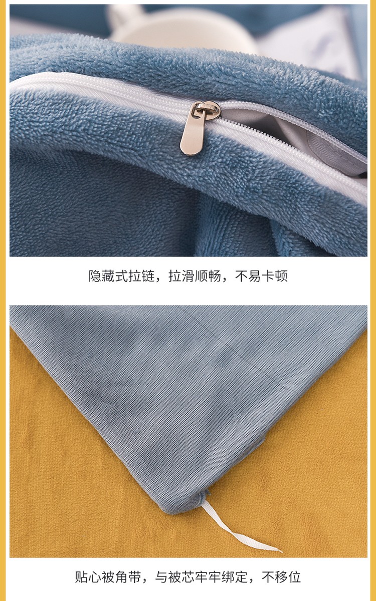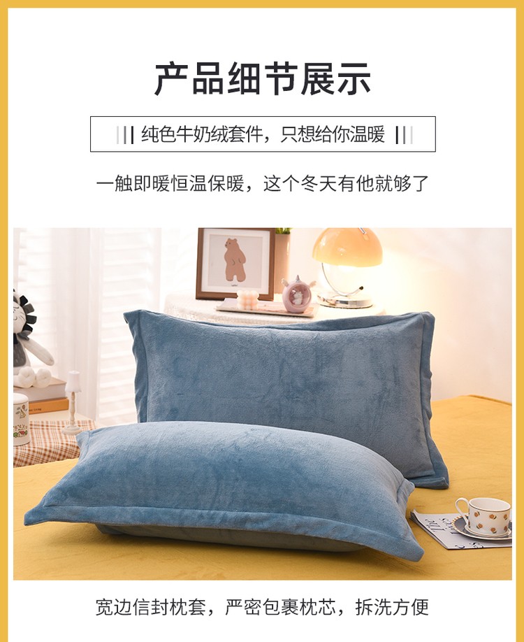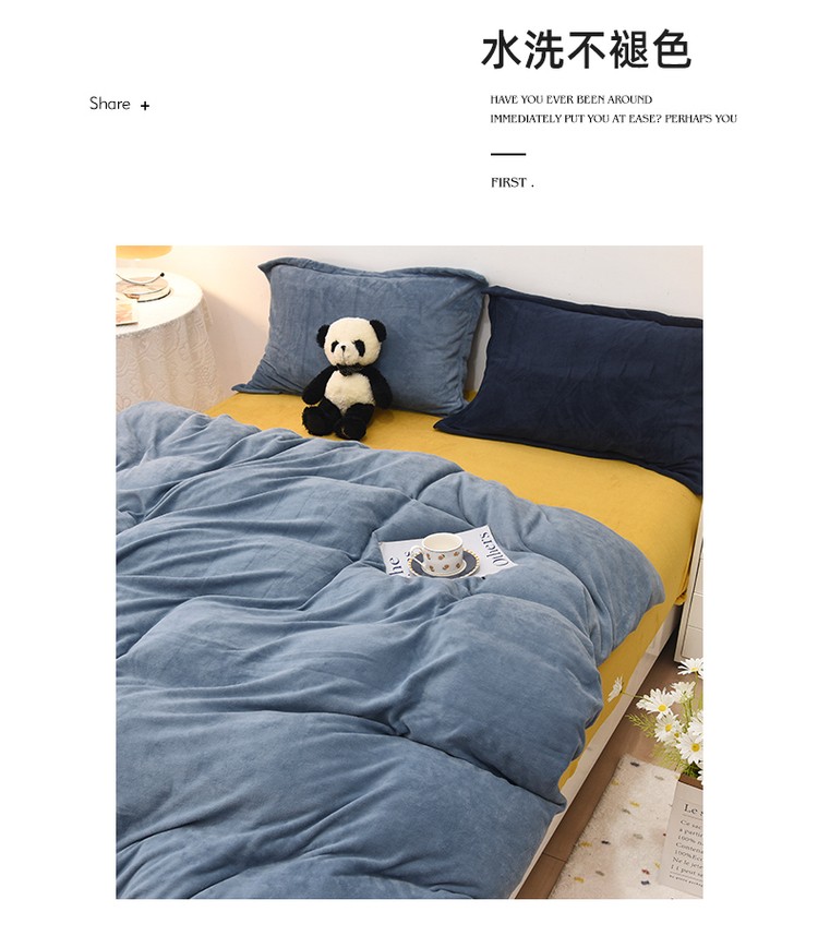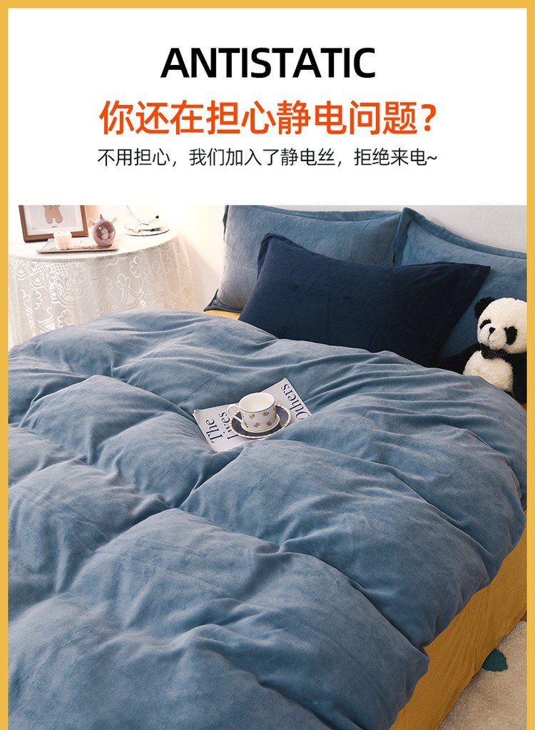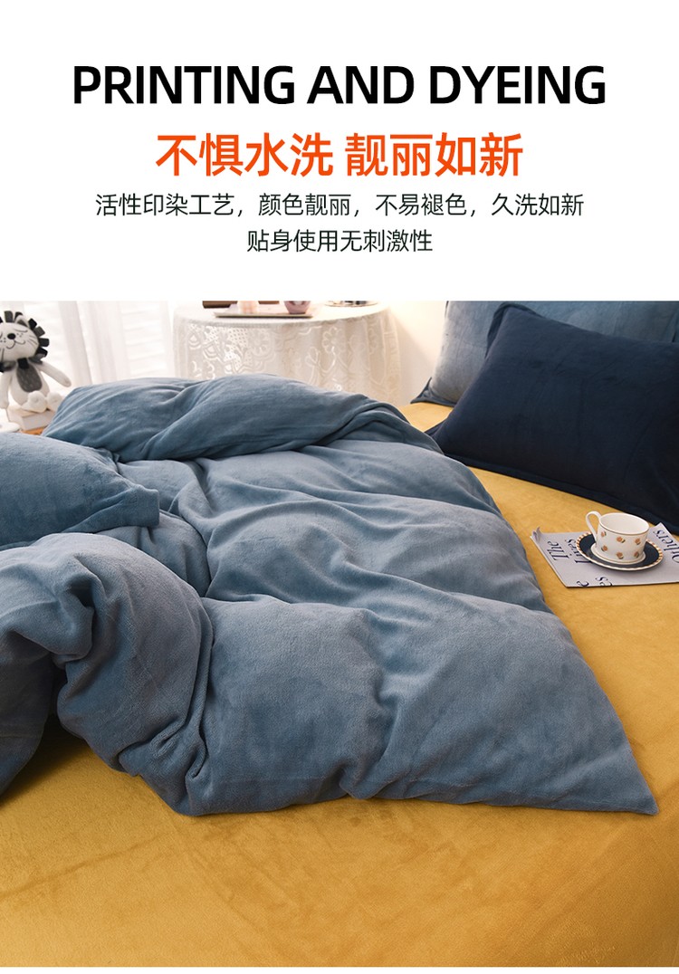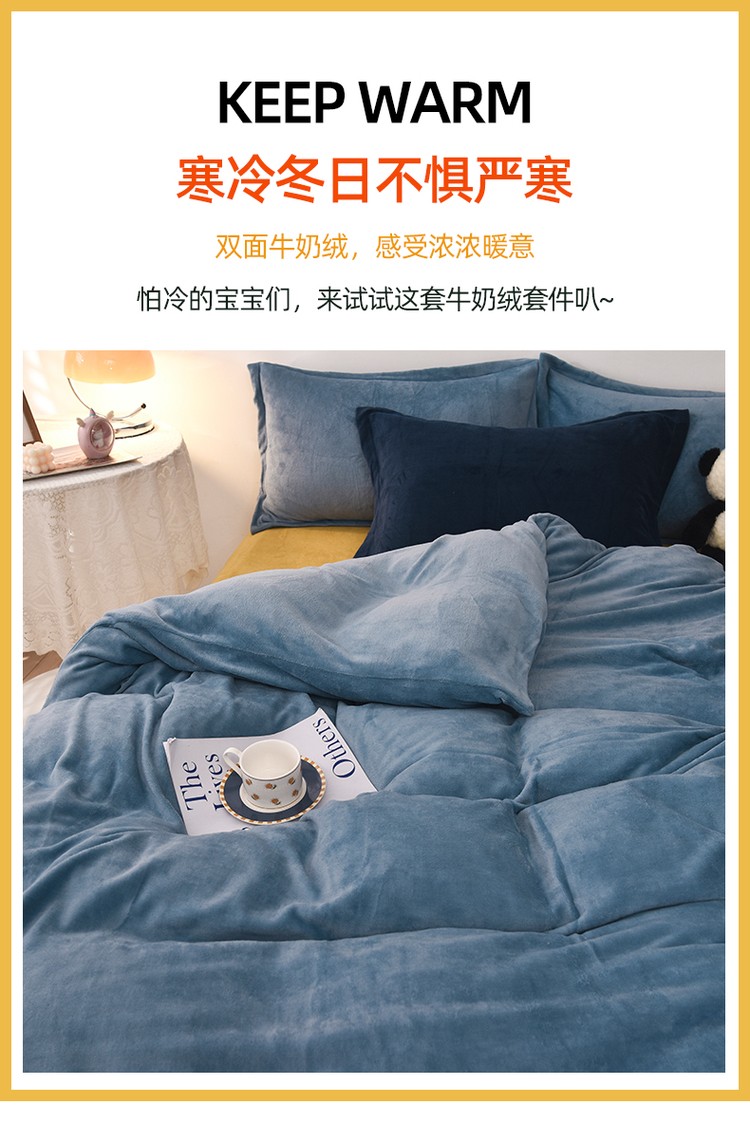 商品名称:优彩 2021新款高克重纯色混搭牛奶绒四件套 雾霾蓝
