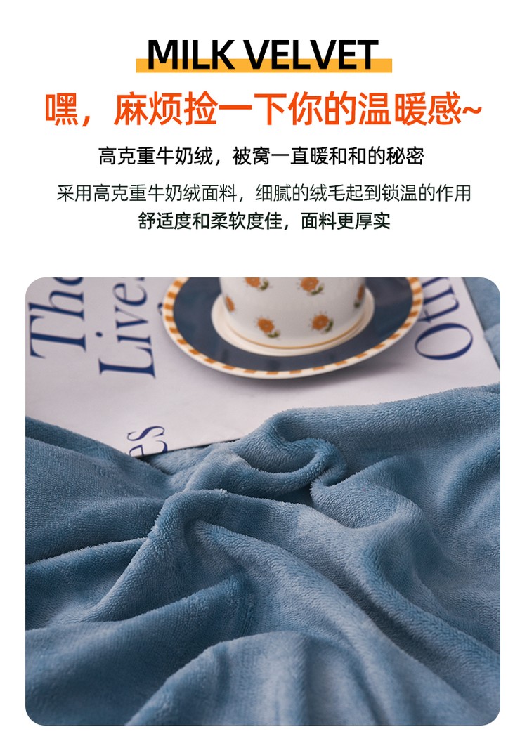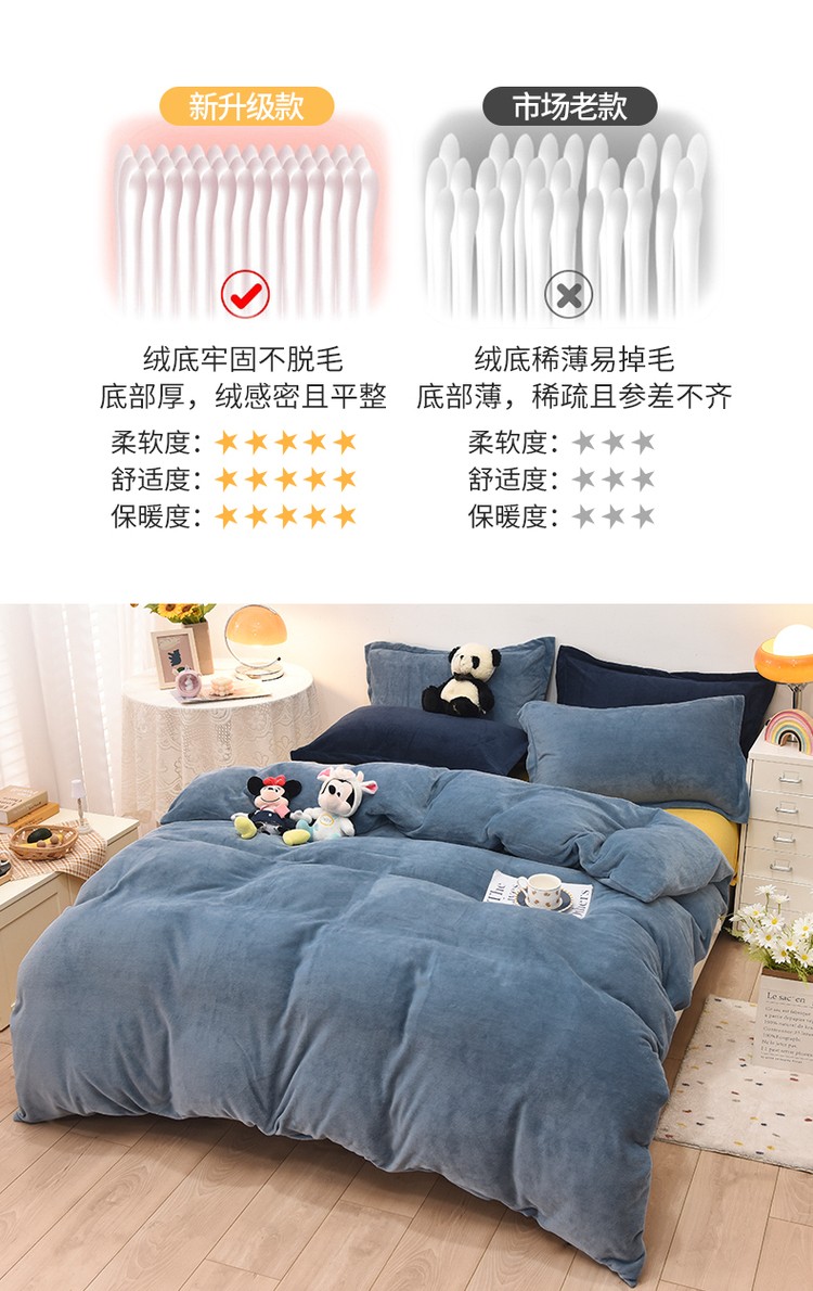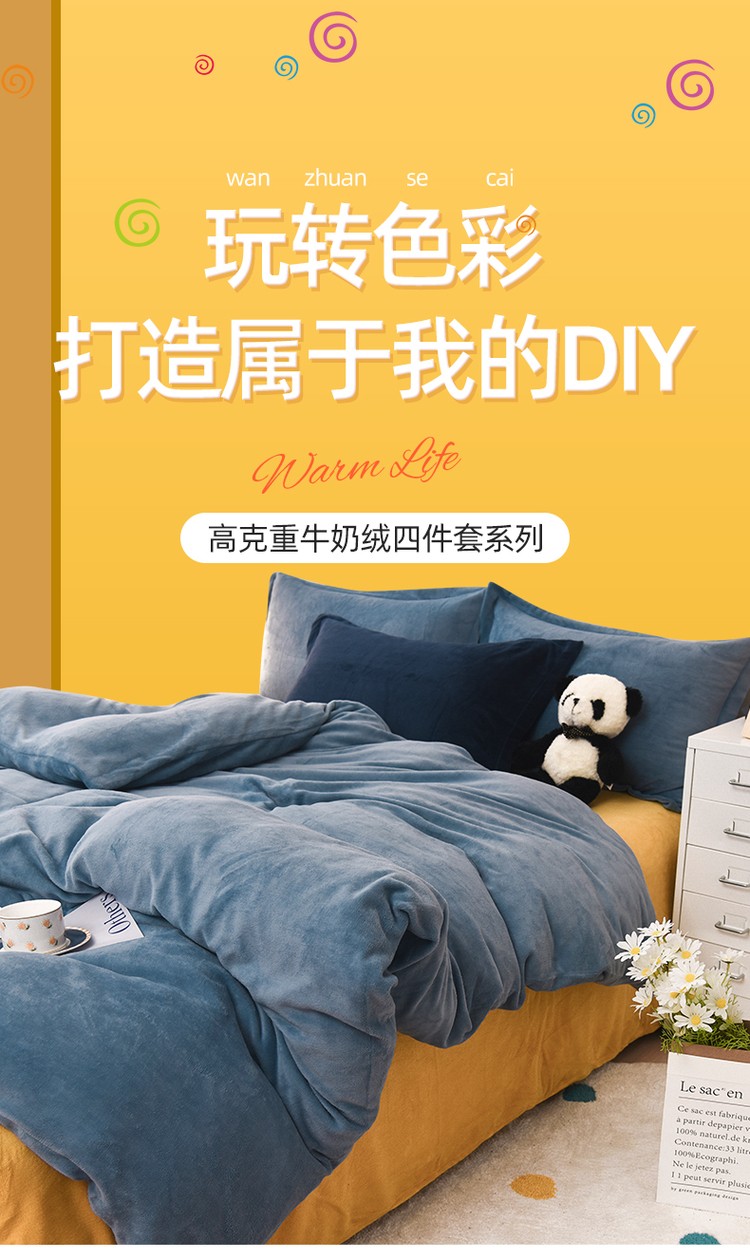 优彩 2021新款高克重纯色混搭牛奶绒四件套 雾霾蓝
