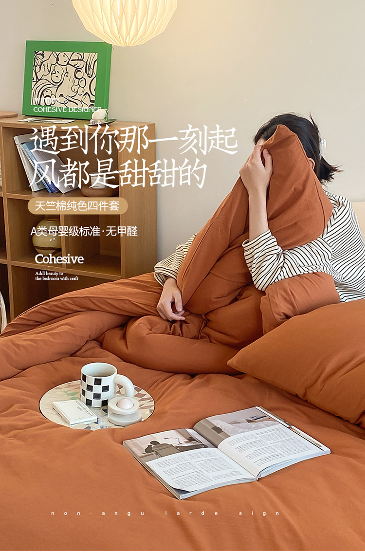 当前位置: 91家纺网 > 商品网购 > 床品套件 > 四件套 > 全棉普通四件套 > 华超针织 2021新款全棉天竺棉纯色双拼四件套 南瓜