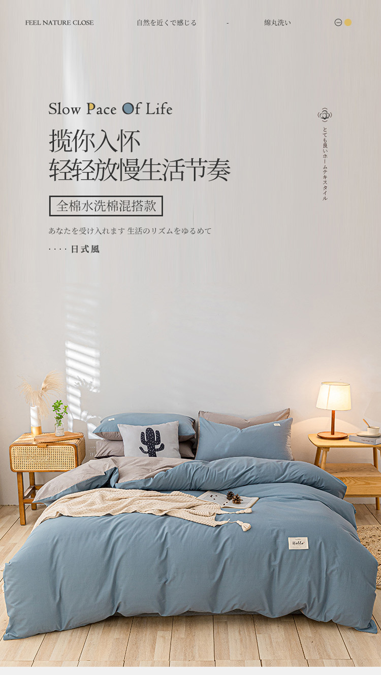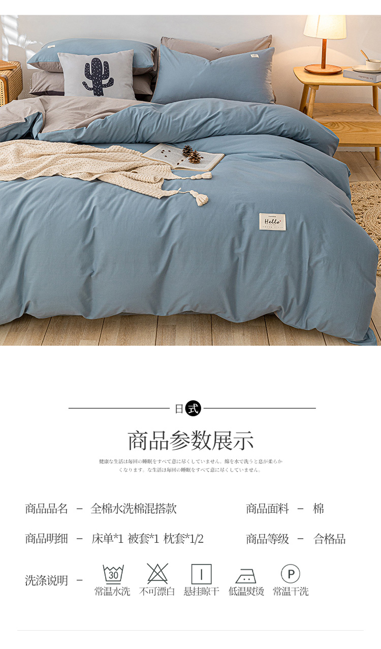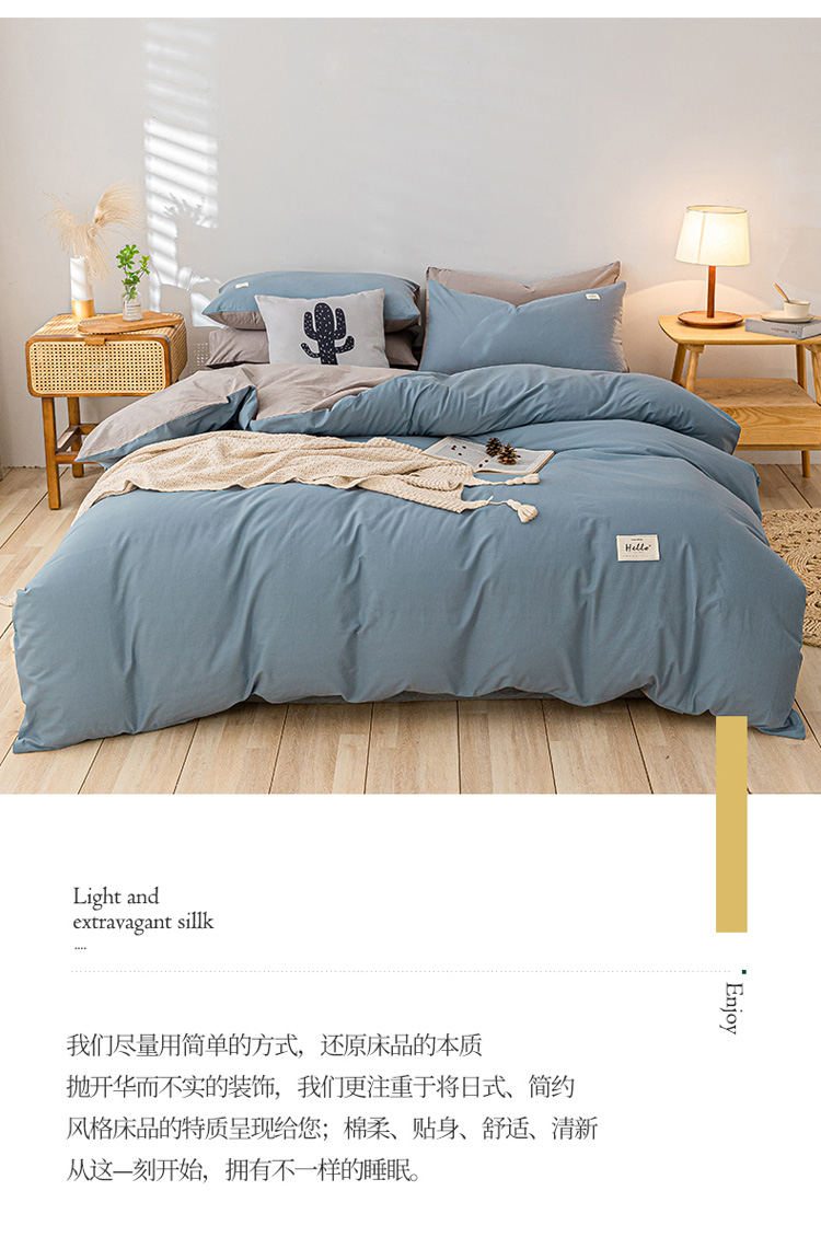 当前位置: 91家纺网 > 商品网购 > 床品套件 > 四件套 > 全棉普通四件套 > 蓝巢 2021新款全棉色织水洗棉四件套 浅蓝灰