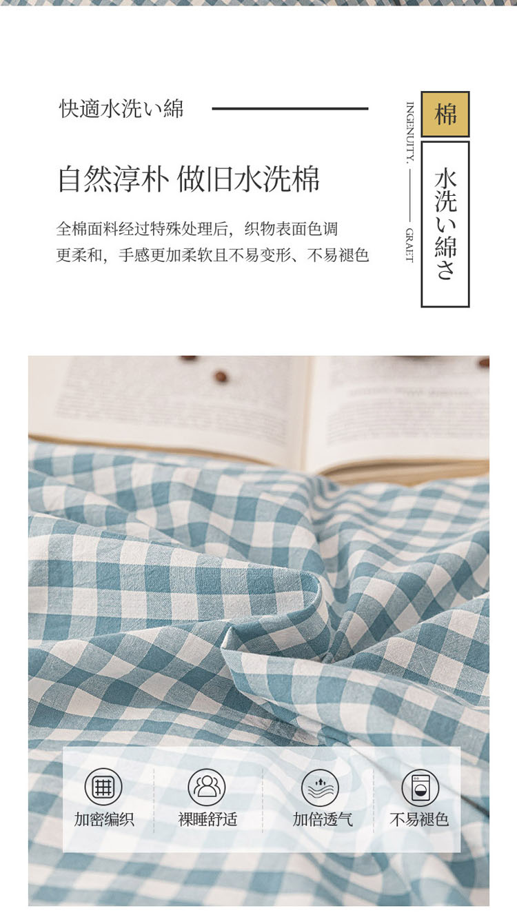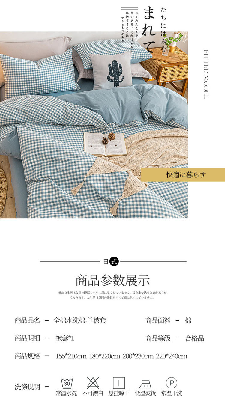 蓝巢 2021新款全棉色织水洗棉单被套 蓝小格