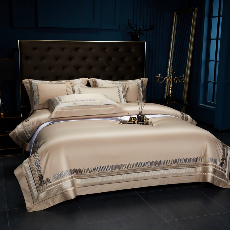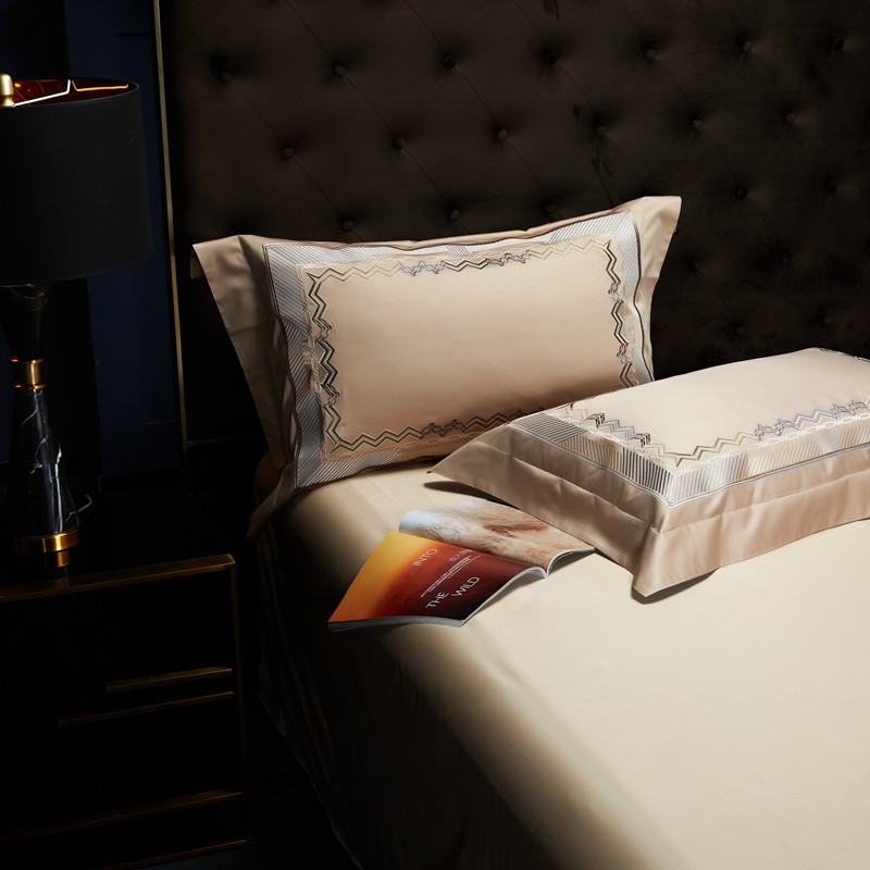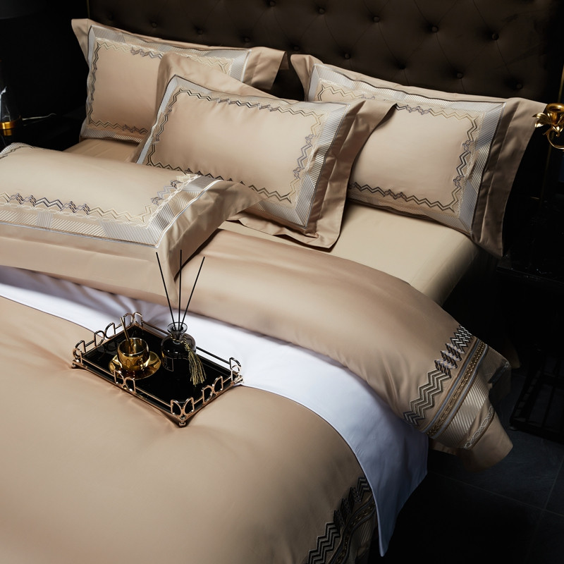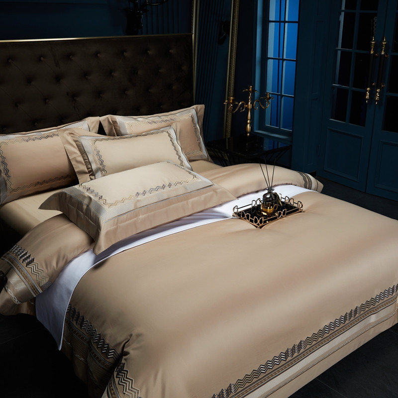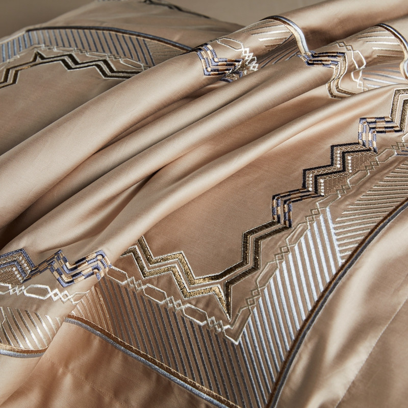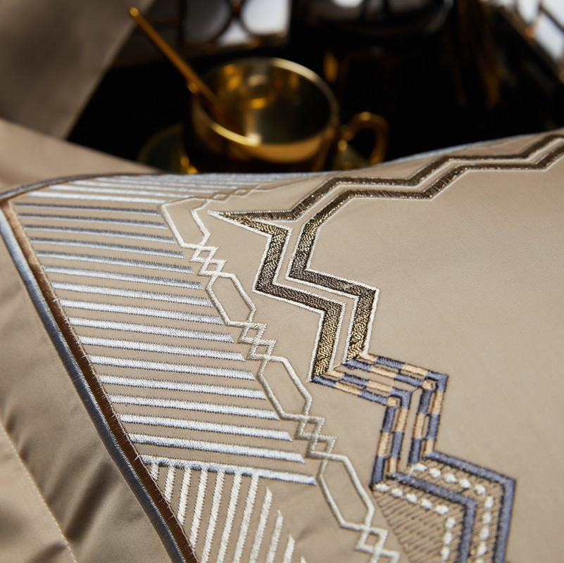 缔缦家纺 2022新款100s澳棉刺绣系列四件套-恋曲 卡其