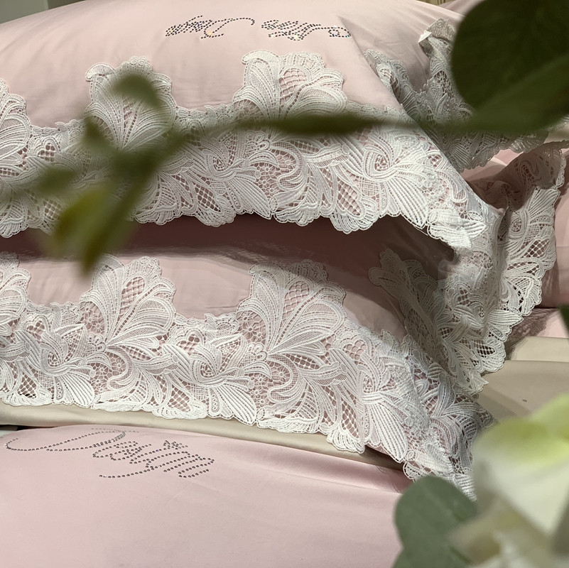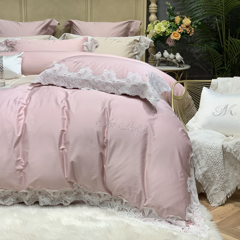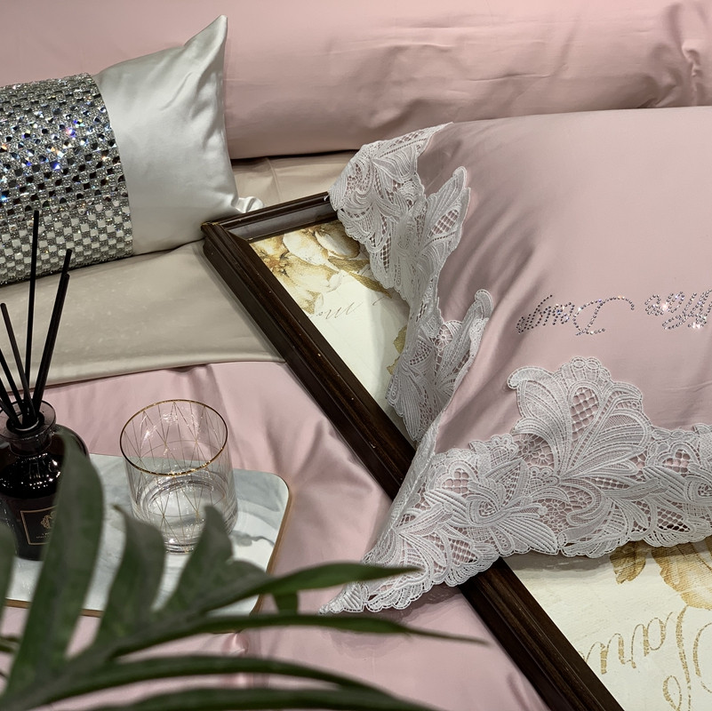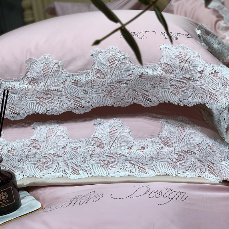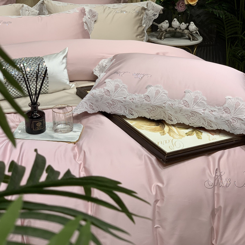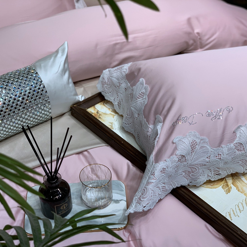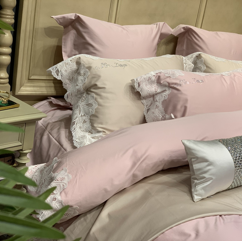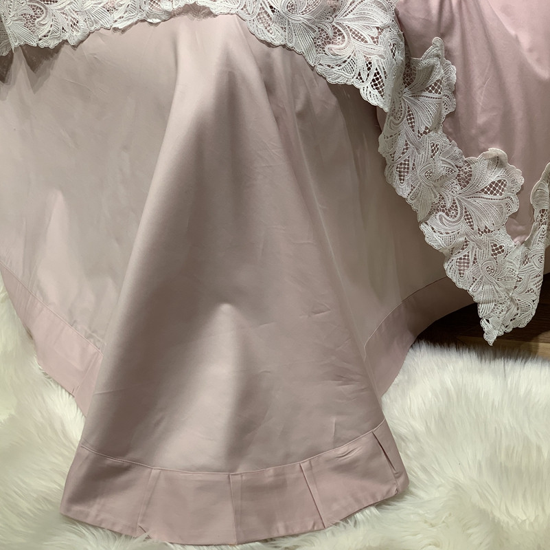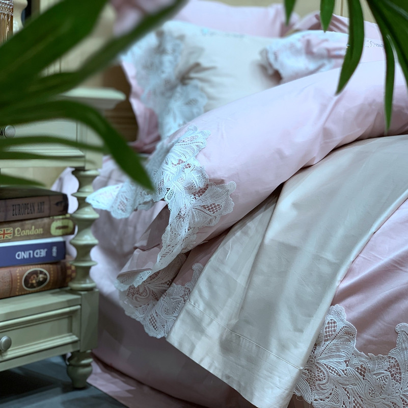 缔缦家纺 2022新款100支长绒棉蕾丝系列四件套-莎桦 裸粉