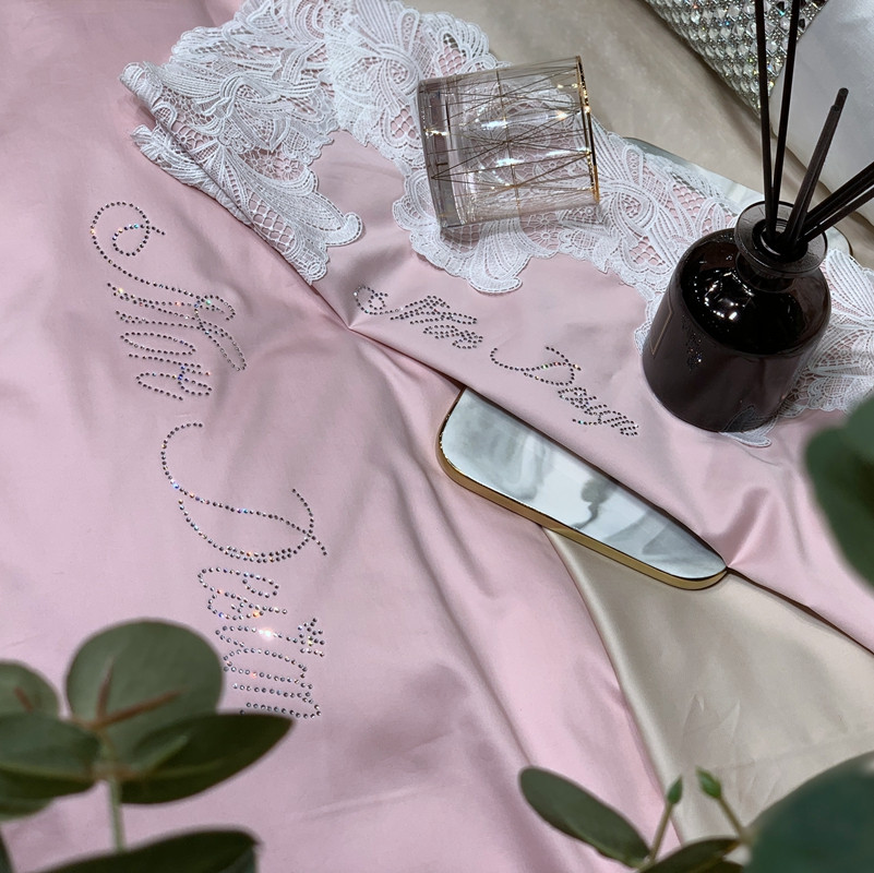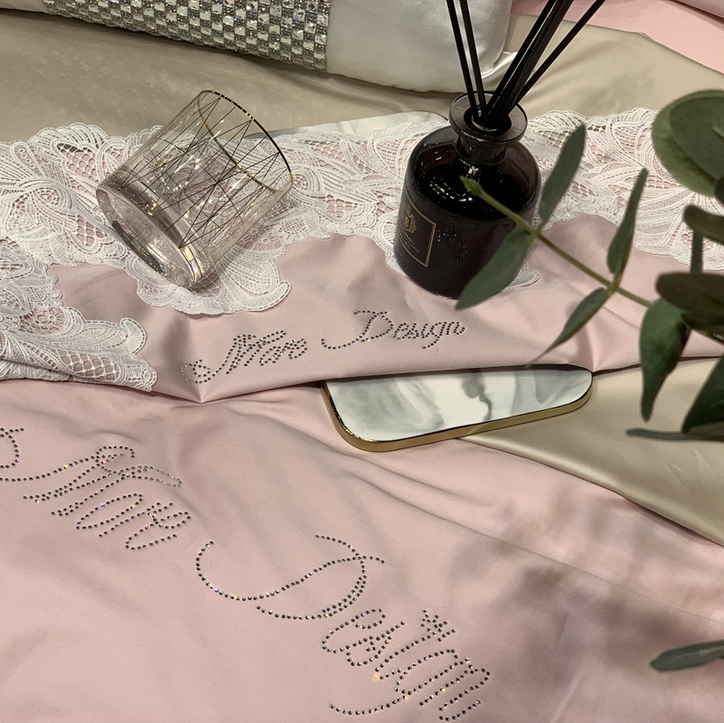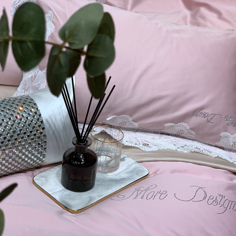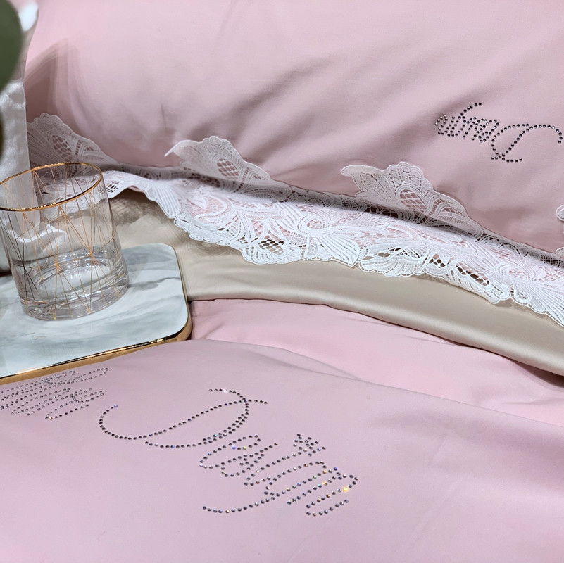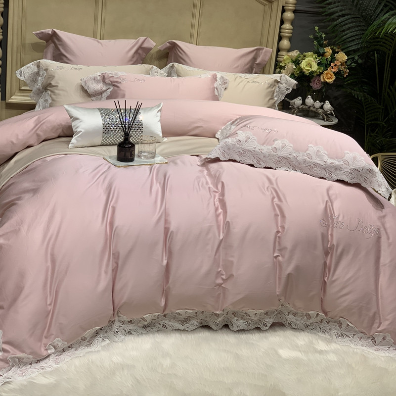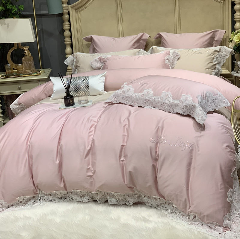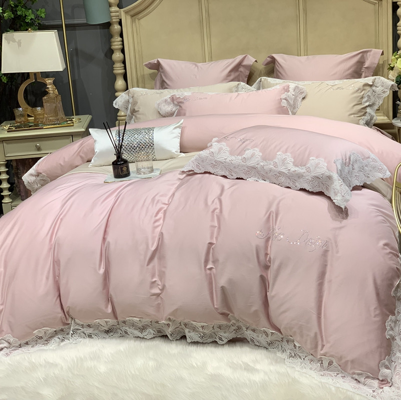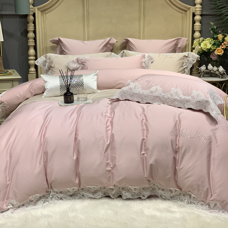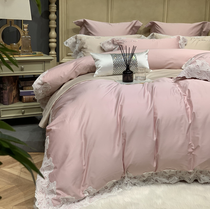 缔缦家纺 2022新款100支长绒棉蕾丝系列四件套-莎桦 裸粉