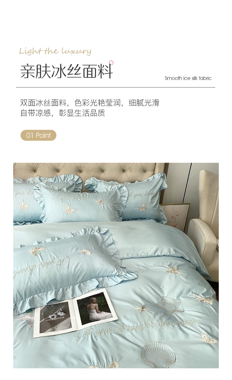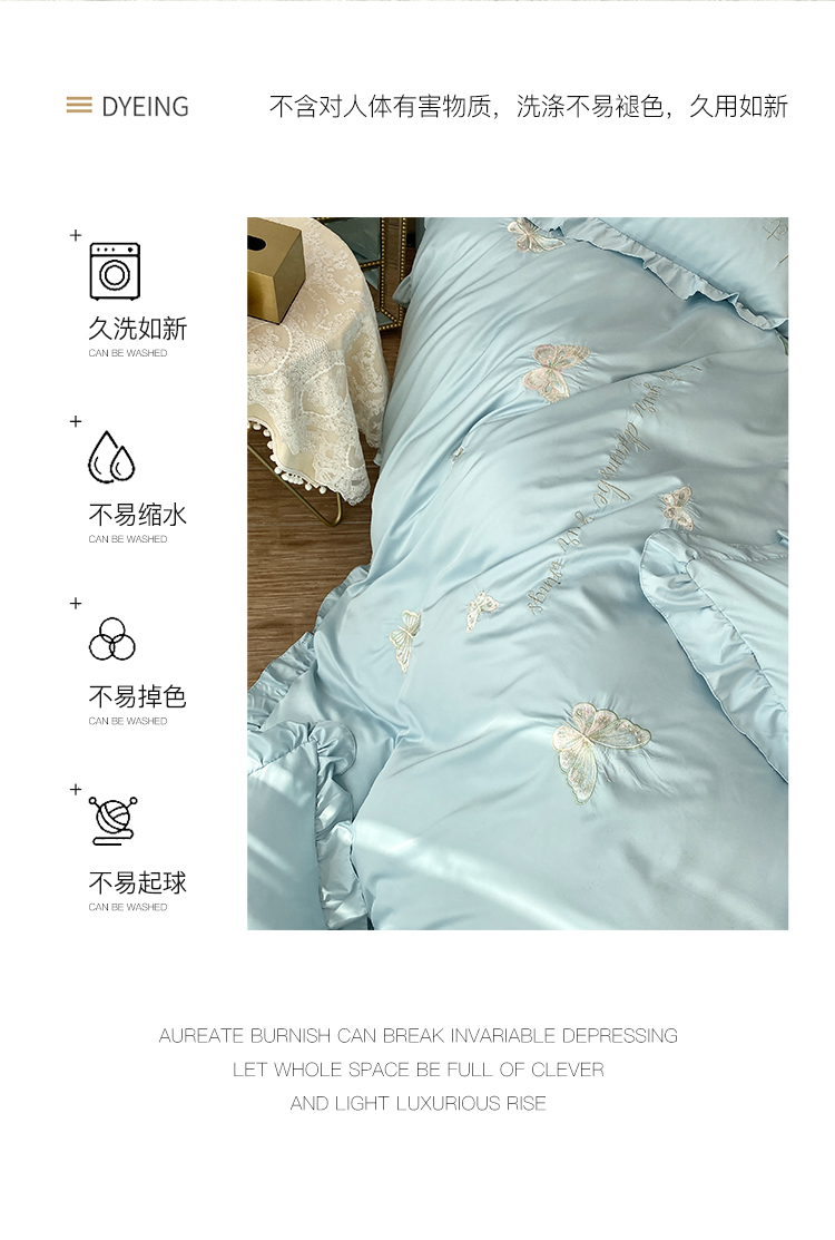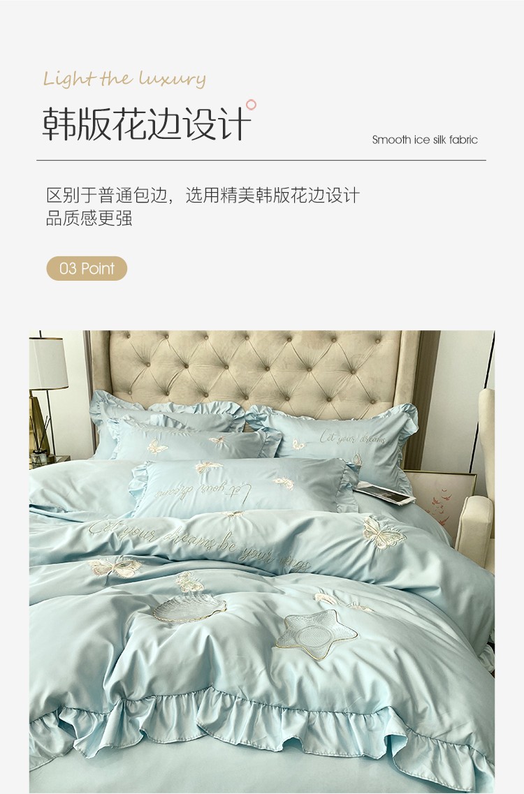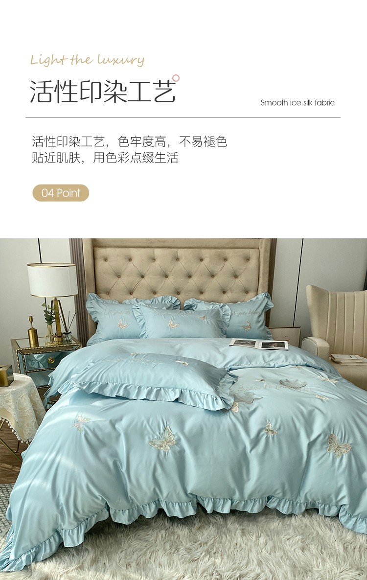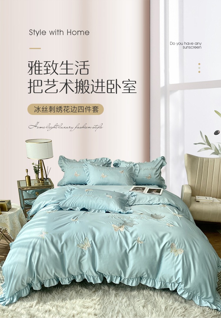 商品名称:理想家2022新款冰丝刺绣花边蝴蝶四件套 绿