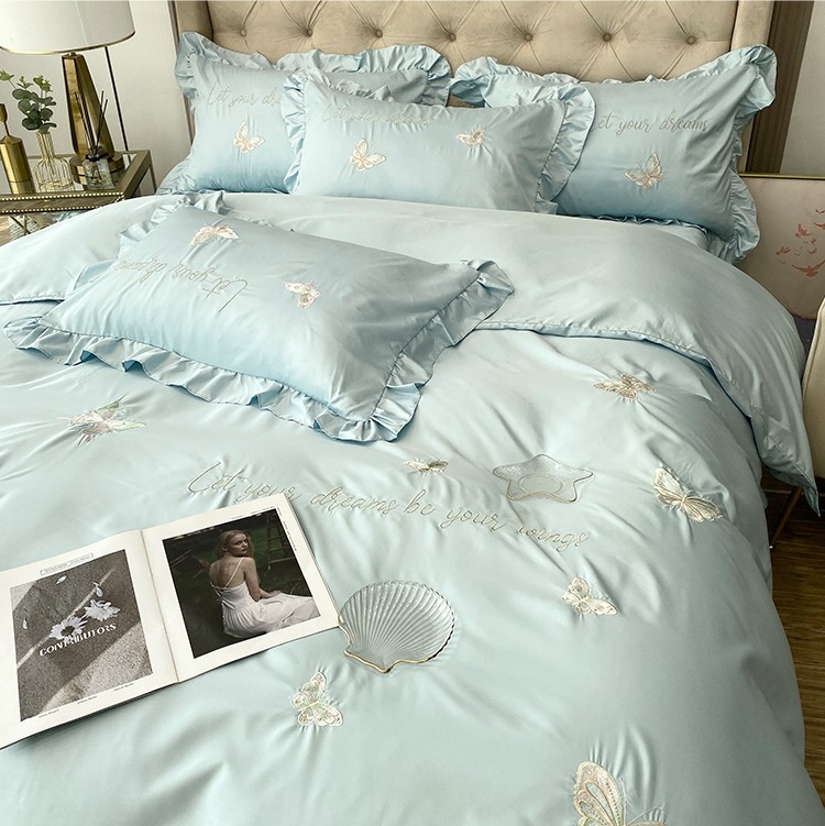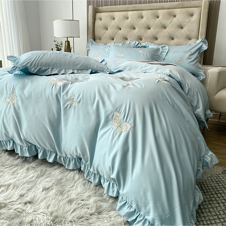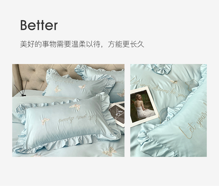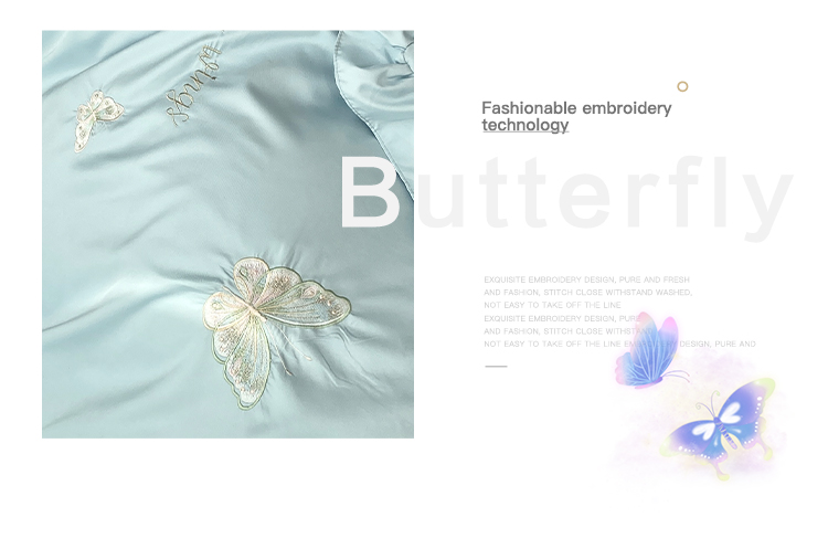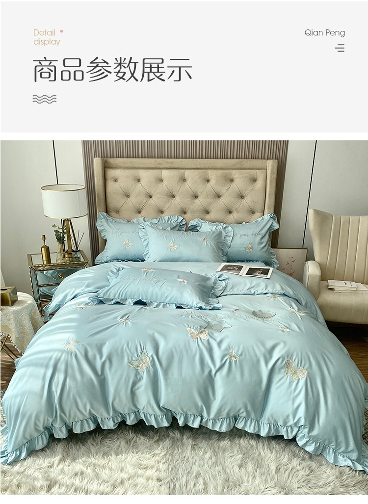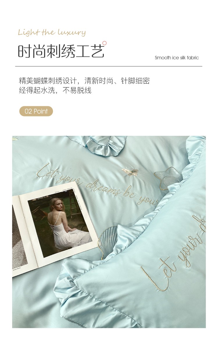 商品名称:理想家2022新款冰丝刺绣花边蝴蝶四件套 绿