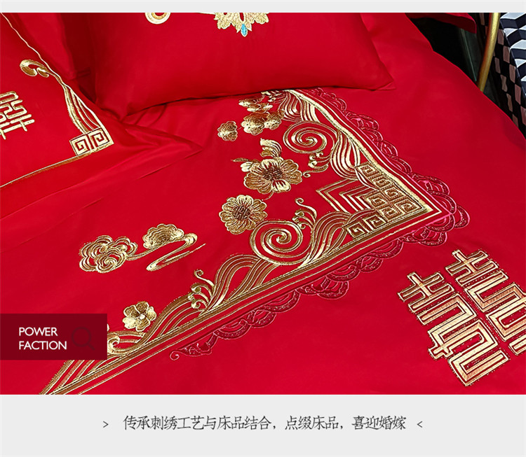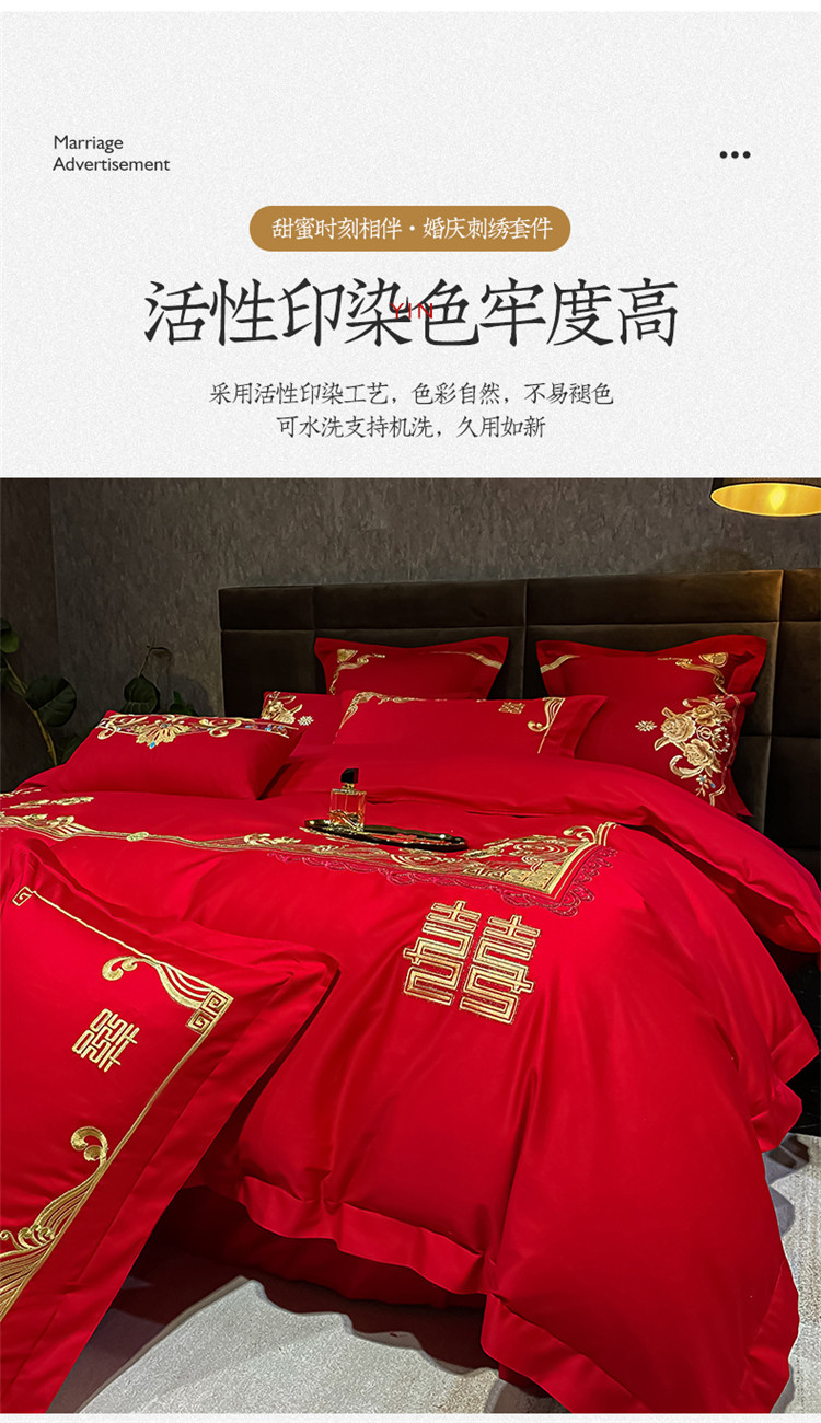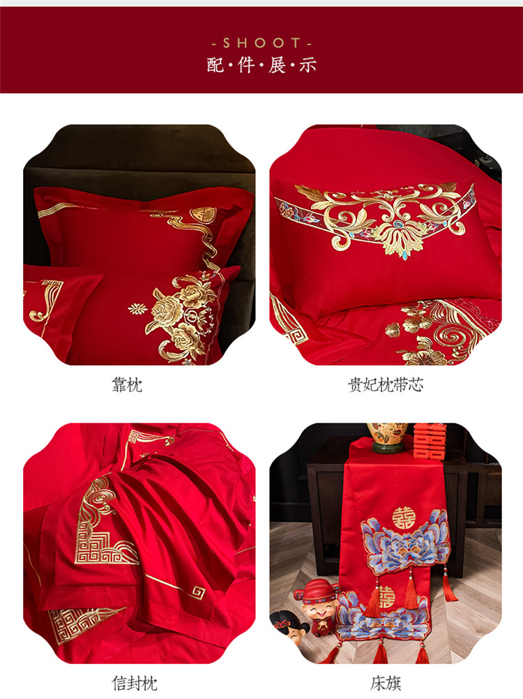 当前位置: 91家纺网 > 商品网购 > 床品套件 > 四件套 > 婚庆四件套 > 千禧 2022新款全工艺喷气全棉婚庆套件 恭喜宫囍