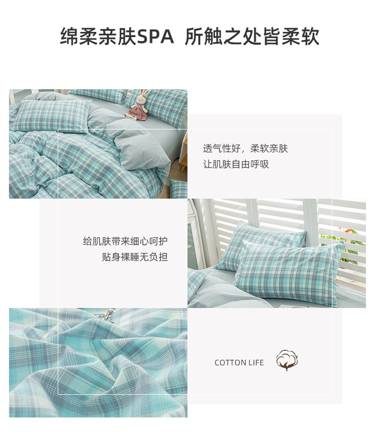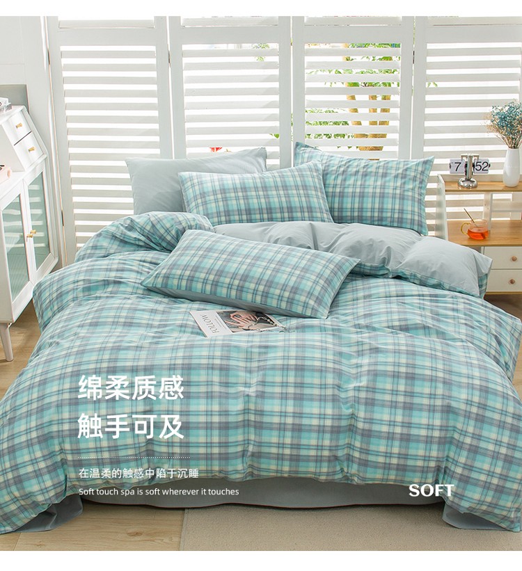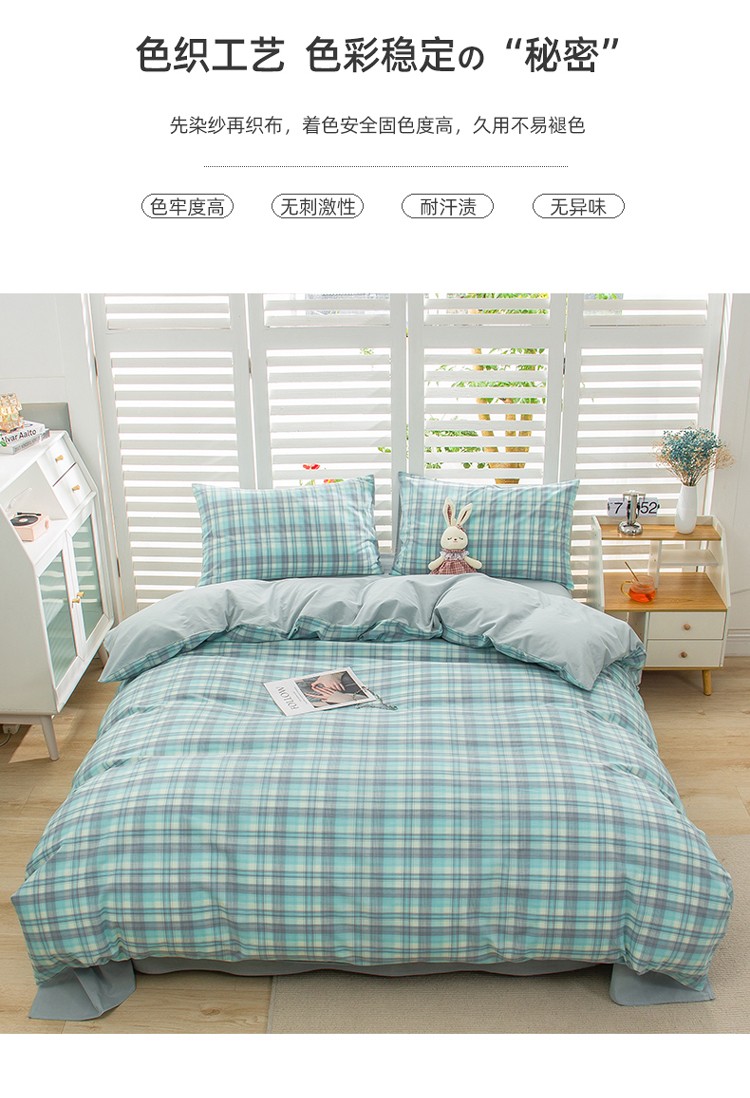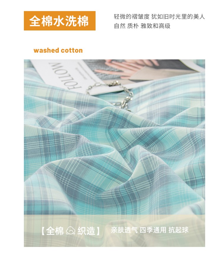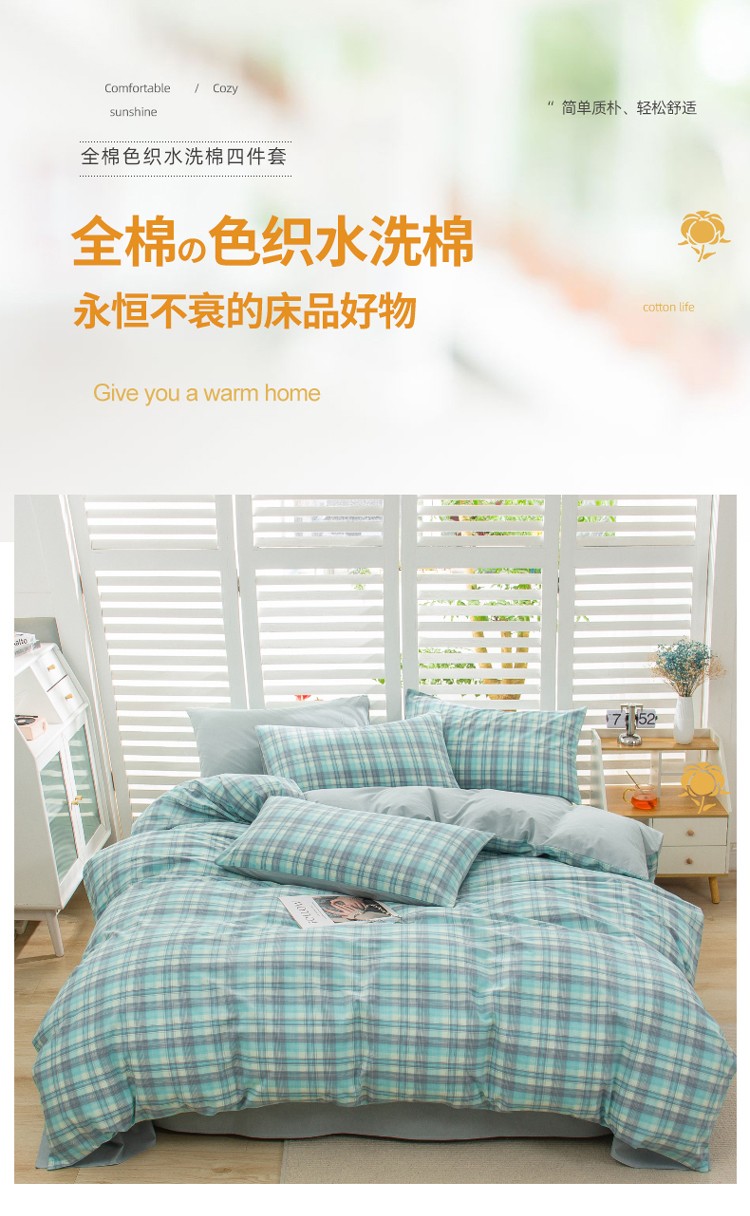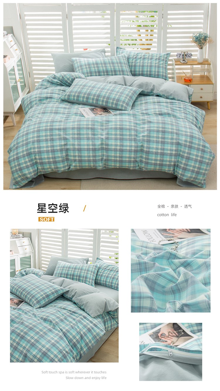 当前位置: 91家纺网 > 商品网购 > 床品套件 > 四件套 > 水洗棉四件套 > 柠萌家居 2022新款A类全棉色织水洗棉无印风格四件套 星空绿格