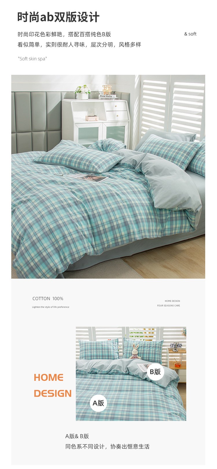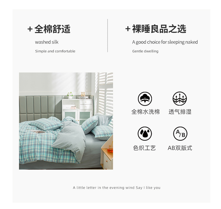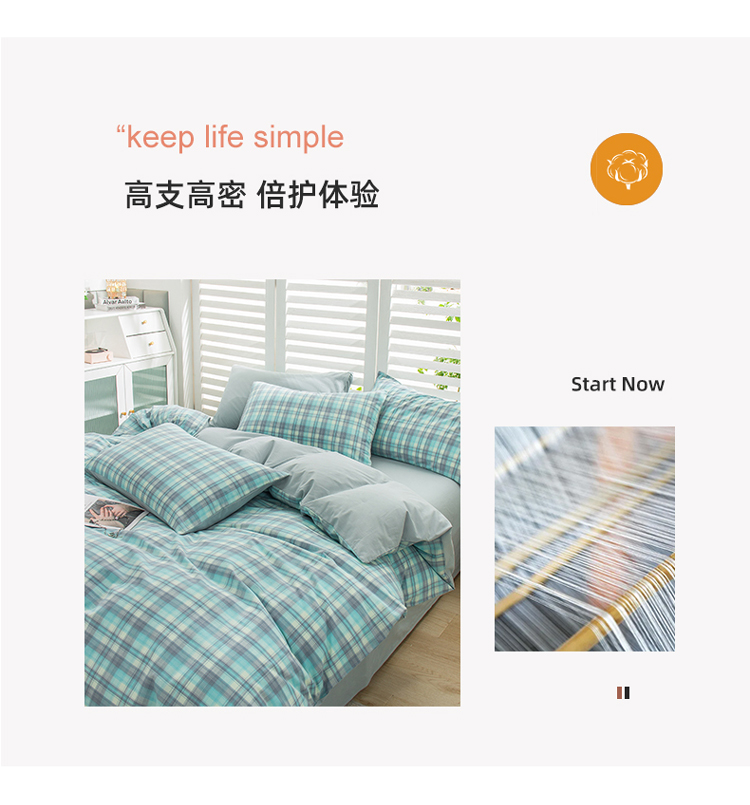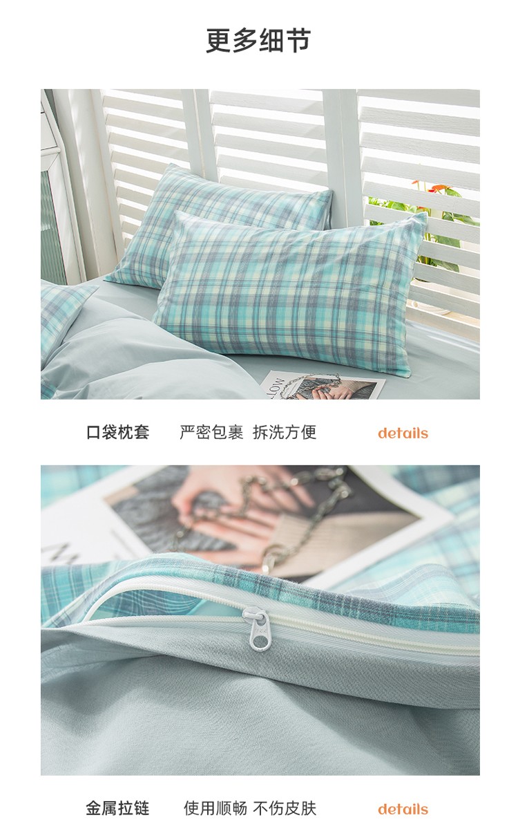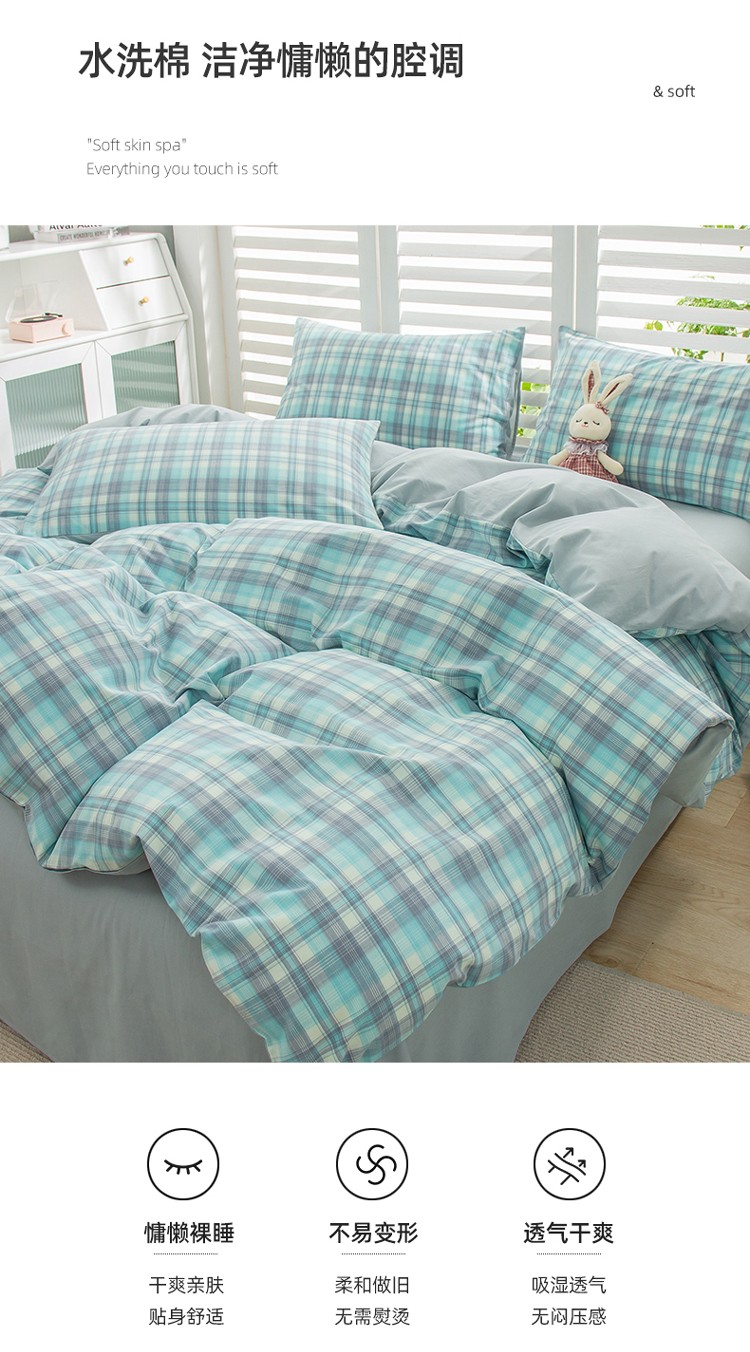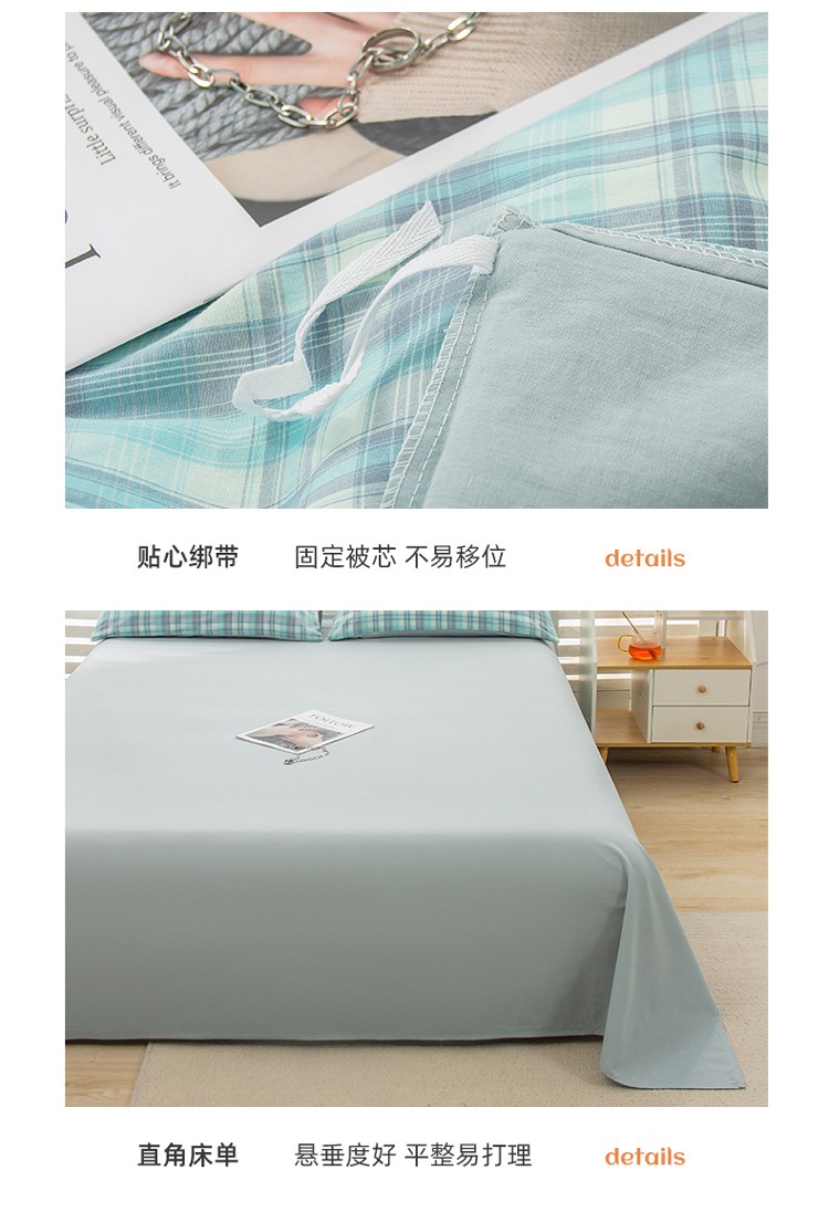 当前位置: 91家纺网 > 商品网购 > 床品套件 > 四件套 > 水洗棉四件套 > 柠萌家居 2022新款A类全棉色织水洗棉无印风格四件套 星空绿格