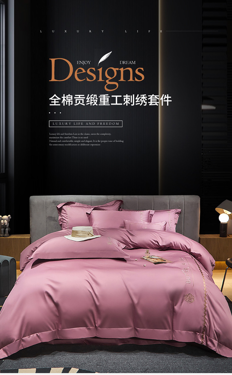 初拾 2022新款100支澳棉极简轻奢洛伊系列四件套-场景一 洛伊-迷迭紫