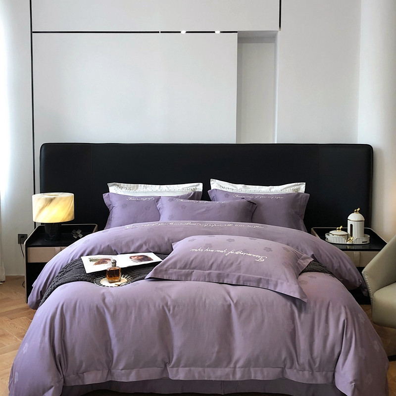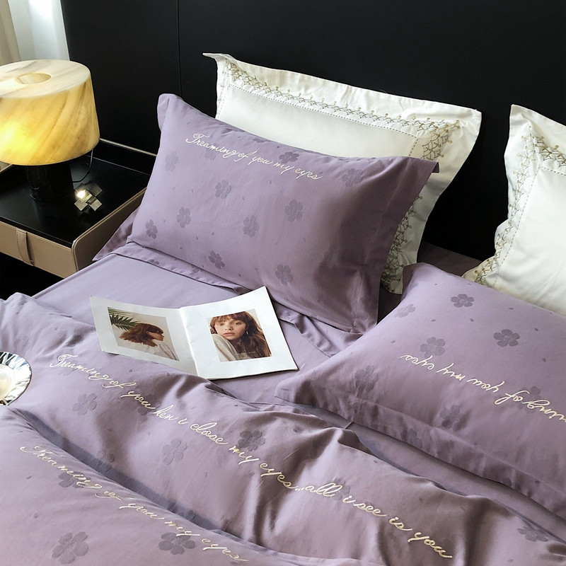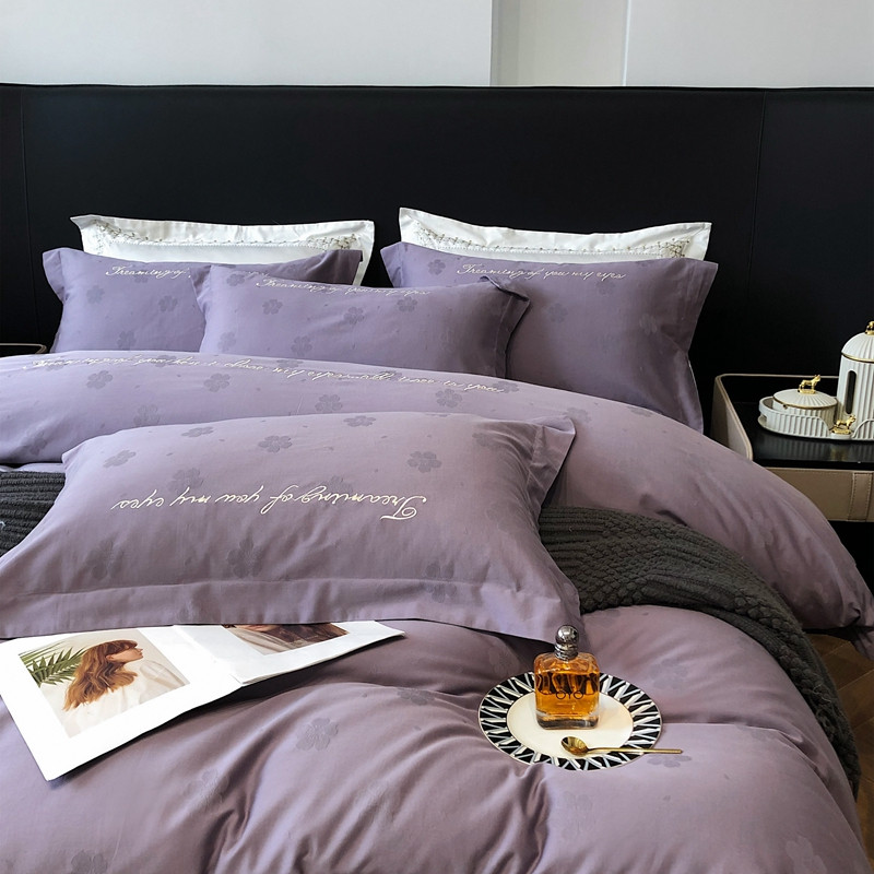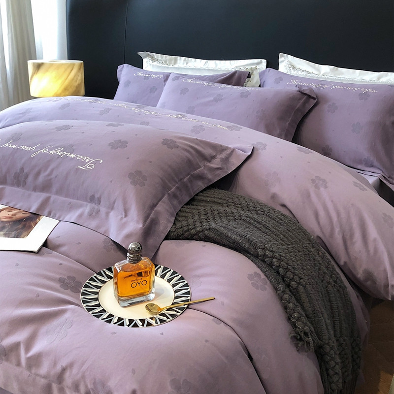 玖玖爱家纺 2022新款120支贡缎磨毛水洗提花四件套 莫尔加仑紫