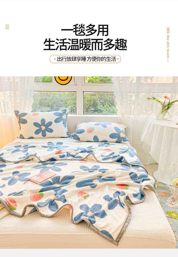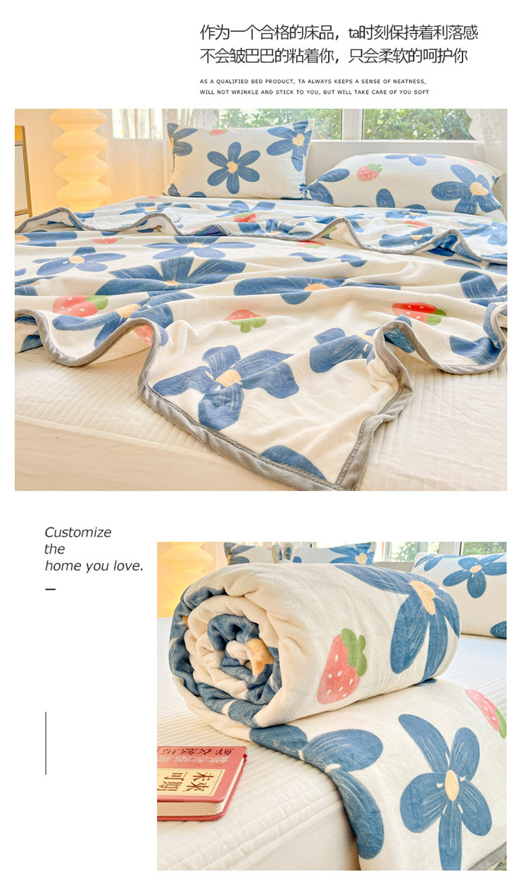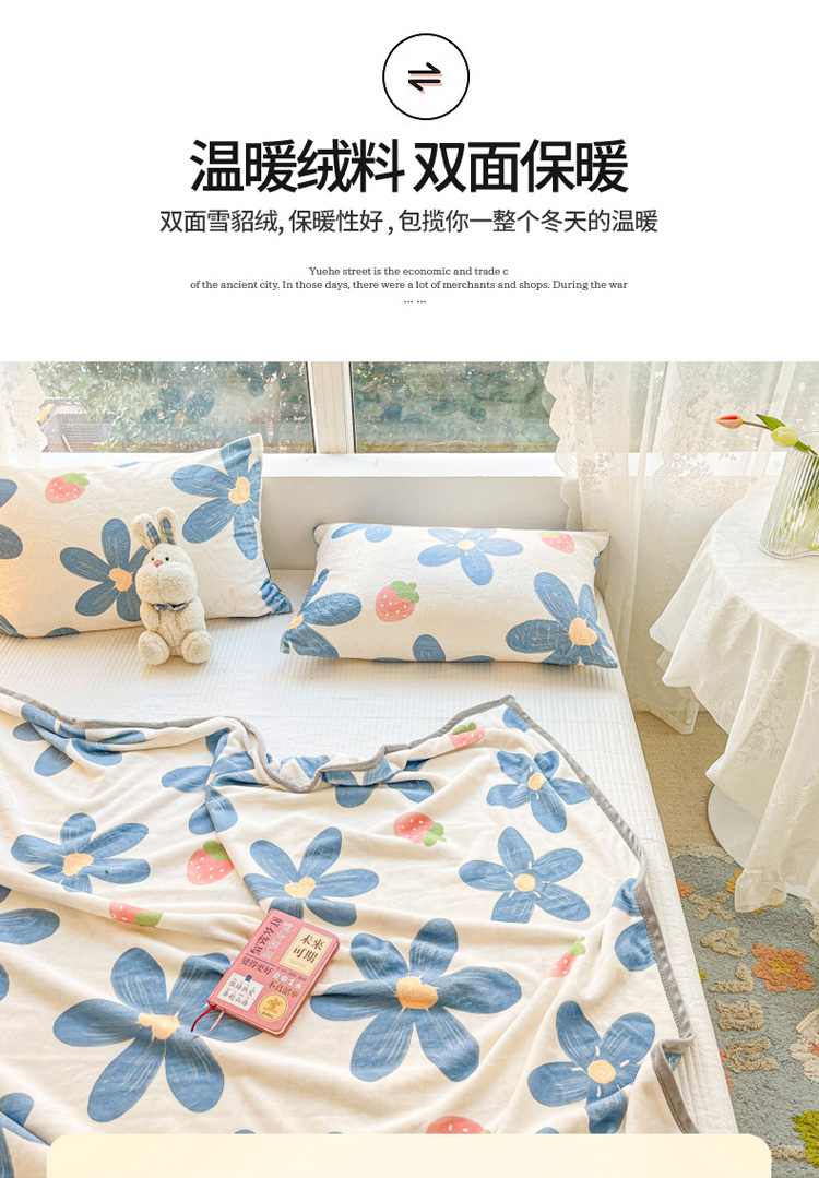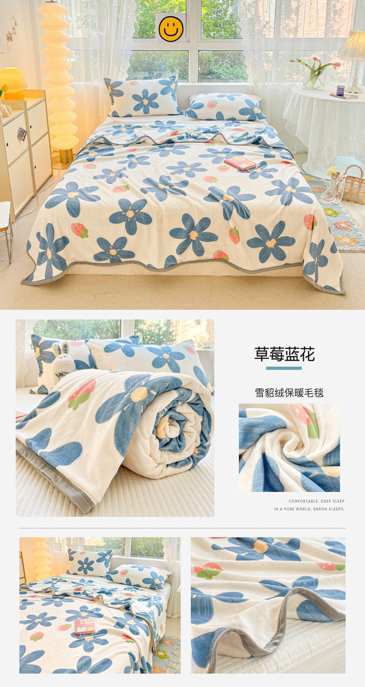 当前位置: 91家纺网 > 商品网购 > 毛毯休闲毯绒毯 > 毛毯 > 慕尚家纺 2022新款300g雪绒绒牛奶毛毯 草莓蓝花