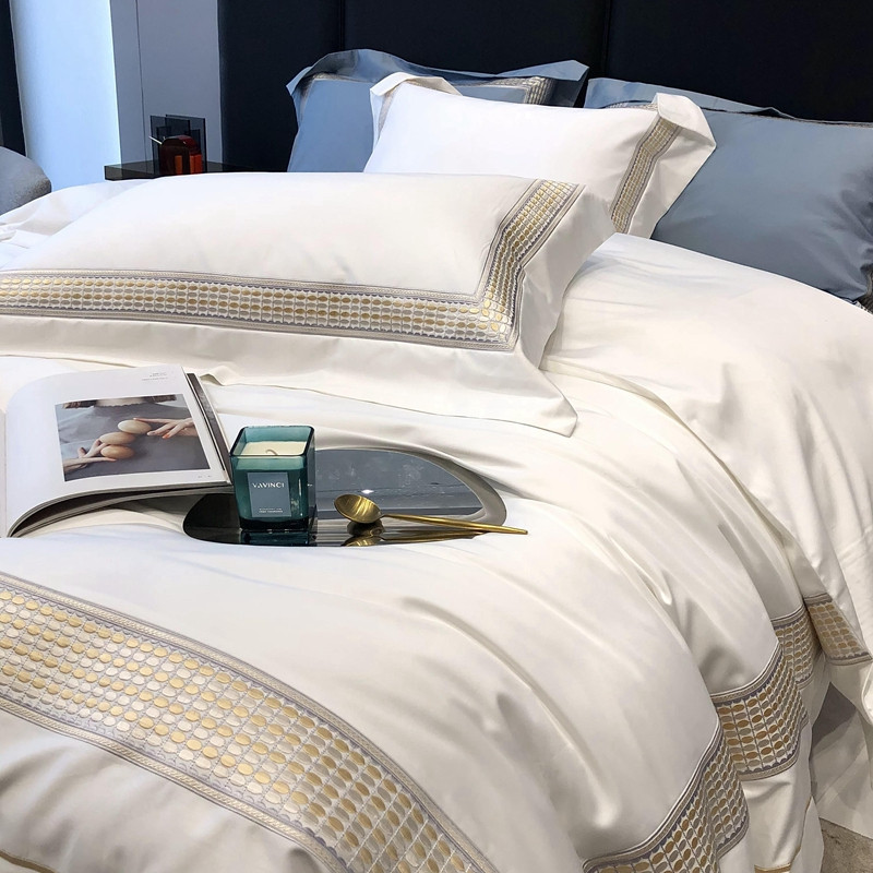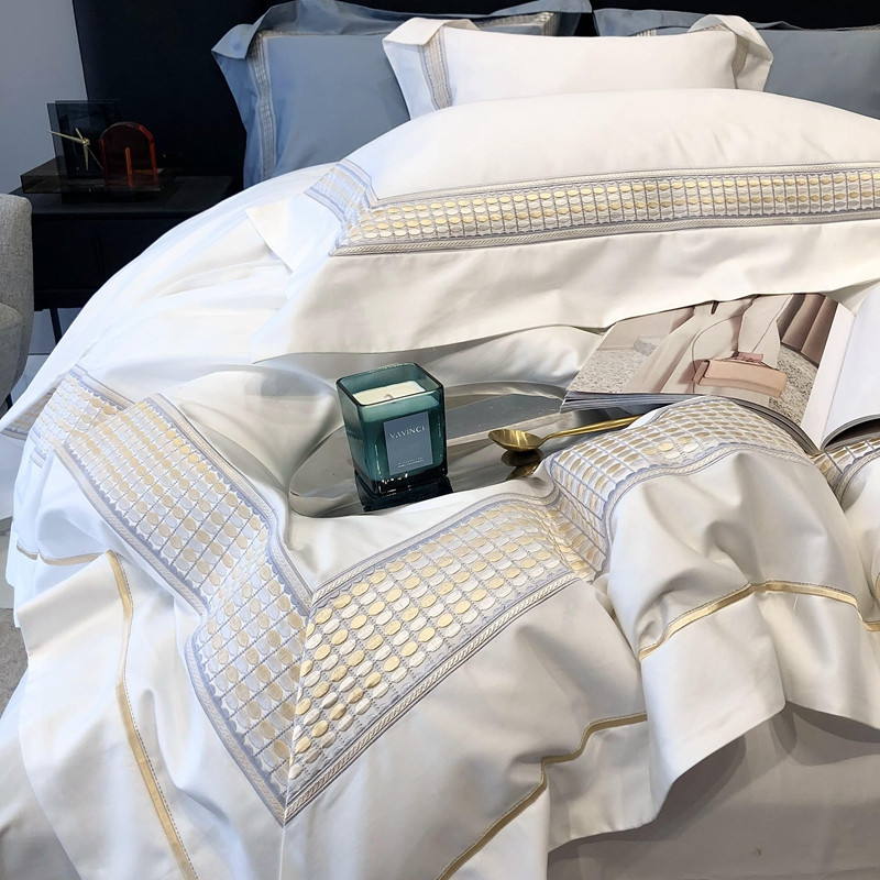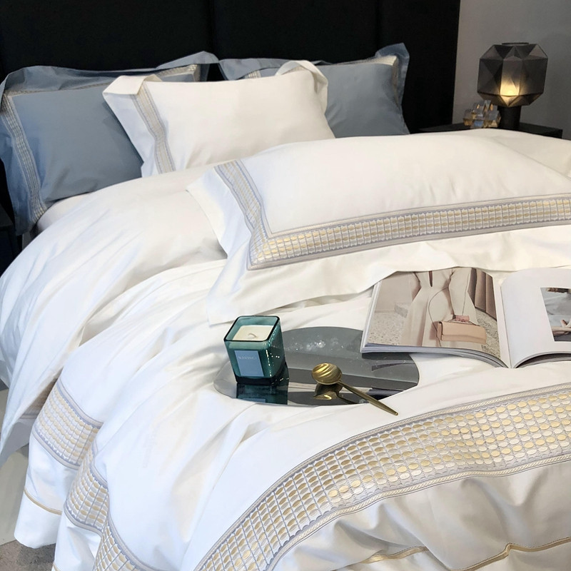 (总)太古汇家居 2025新款打孔镂空宽边格拉夫系列四件套,格拉夫-粉,格拉夫-红,格拉夫-蓝,格拉夫-米白