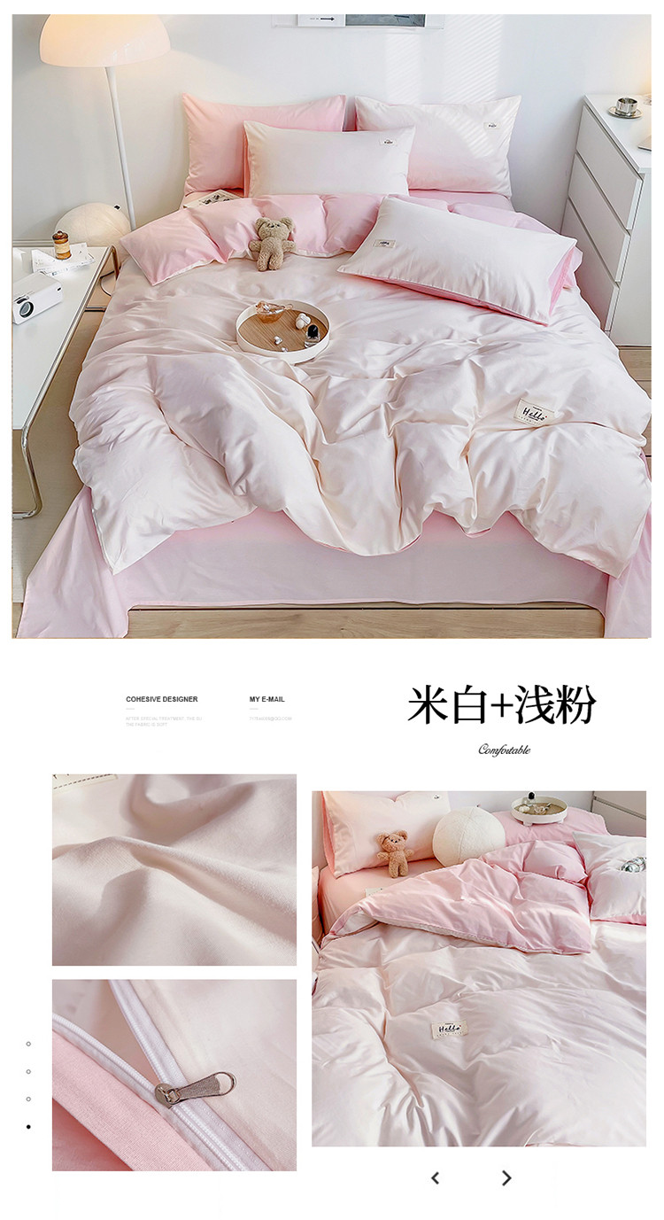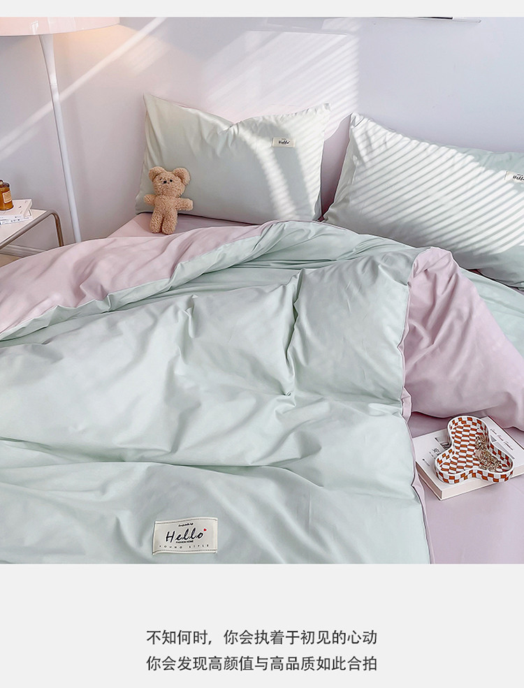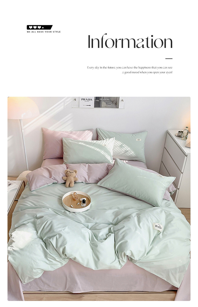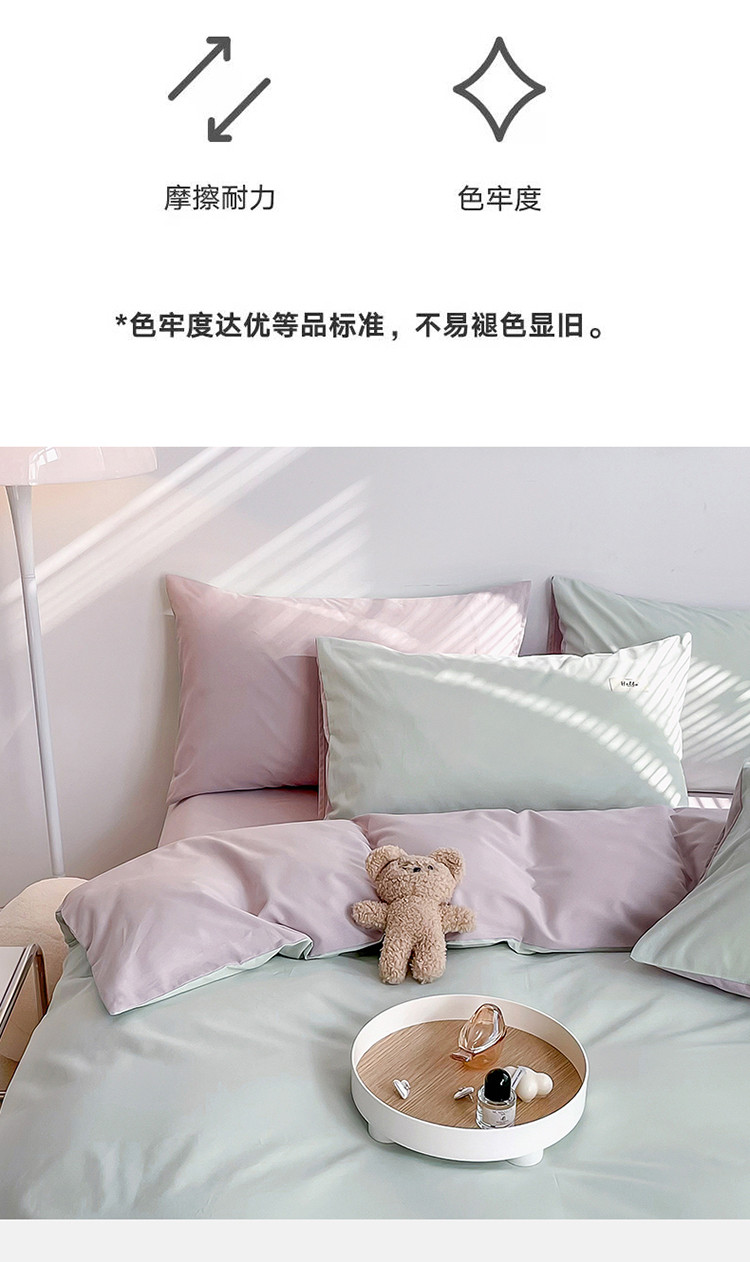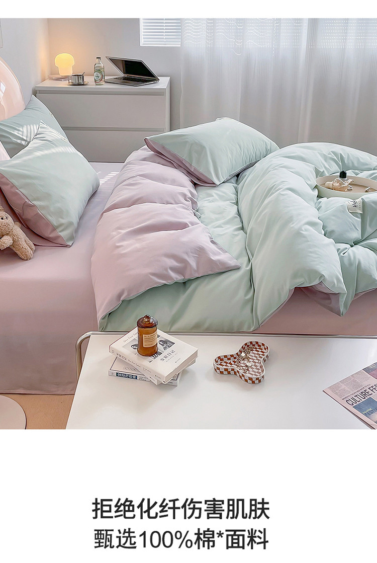 (总)798家纺 2025新款全棉双拼纯色良品四件套,碧绿+奶白,布鲁蓝+梧桐灰,豆绿+芍药粉,奶白+豆绿,奶白+青草绿,浅夏紫+芍药粉,肉肉粉+班尼咖,肉肉粉+千夏紫,肉肉粉+小雏菊,石灰+梧桐灰