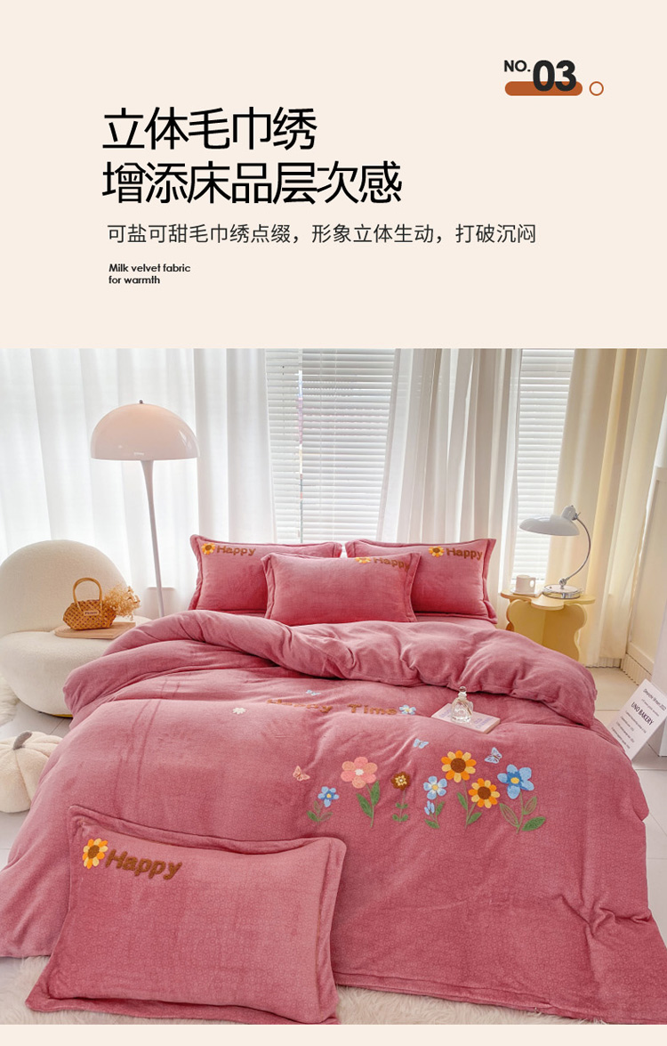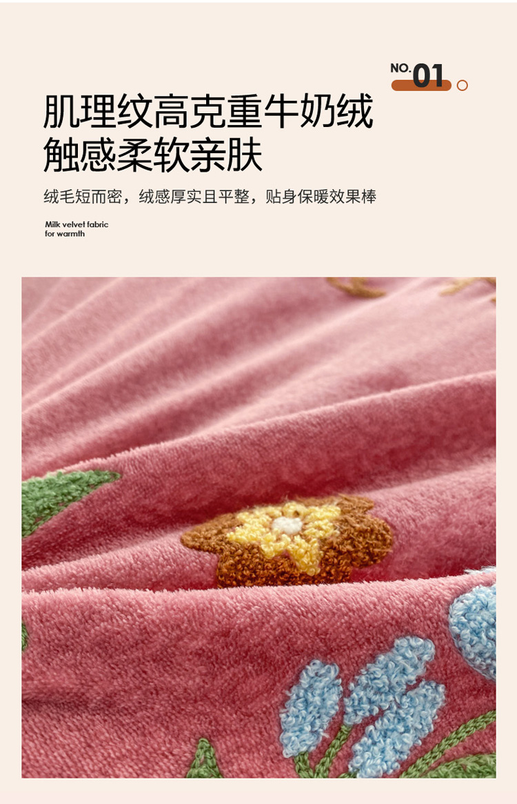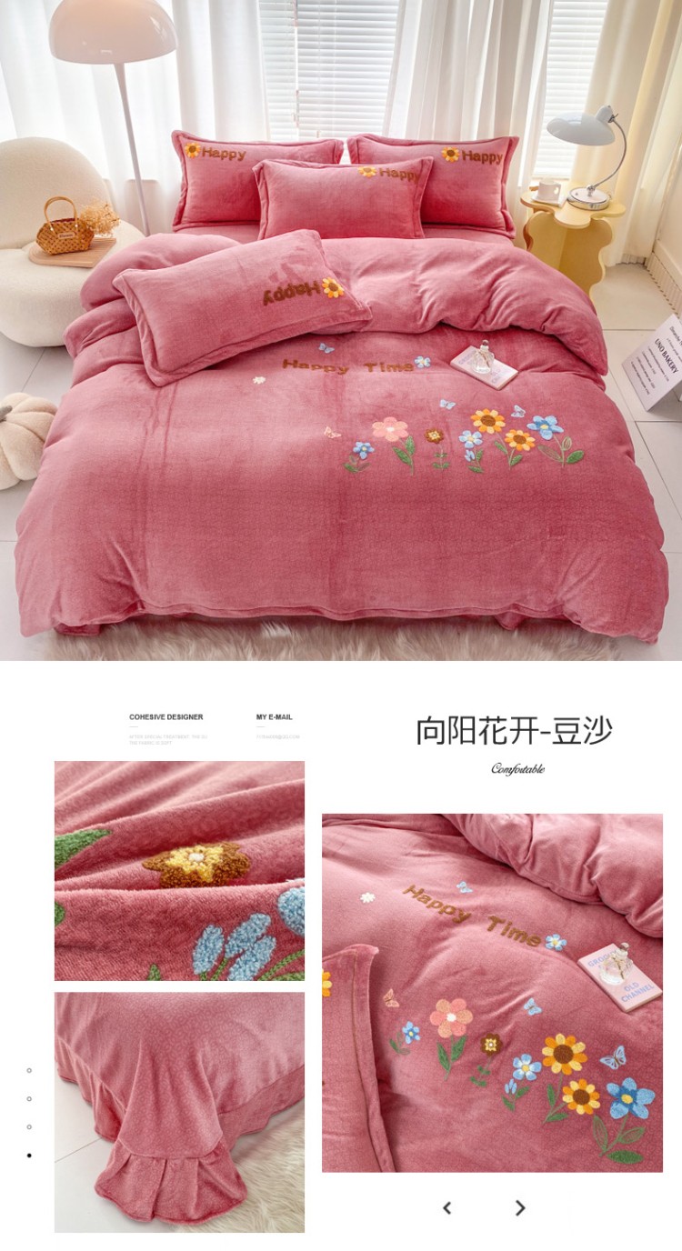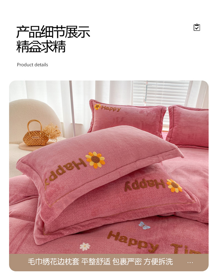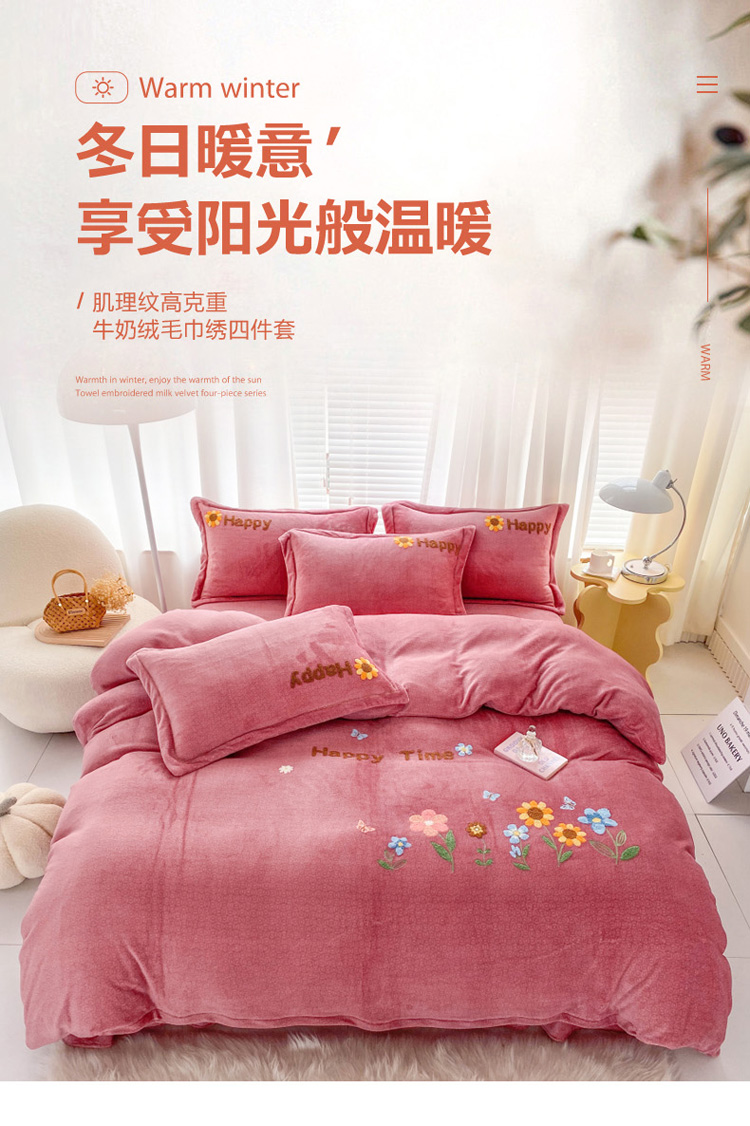 商品名称:云锦22新肌理纹高克重200克牛奶绒毛巾绣四件套向阳花开豆沙