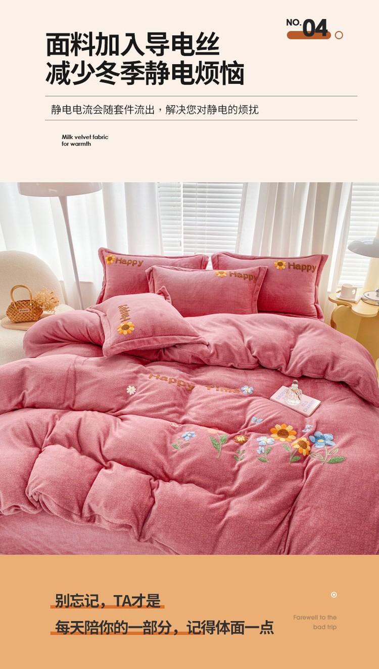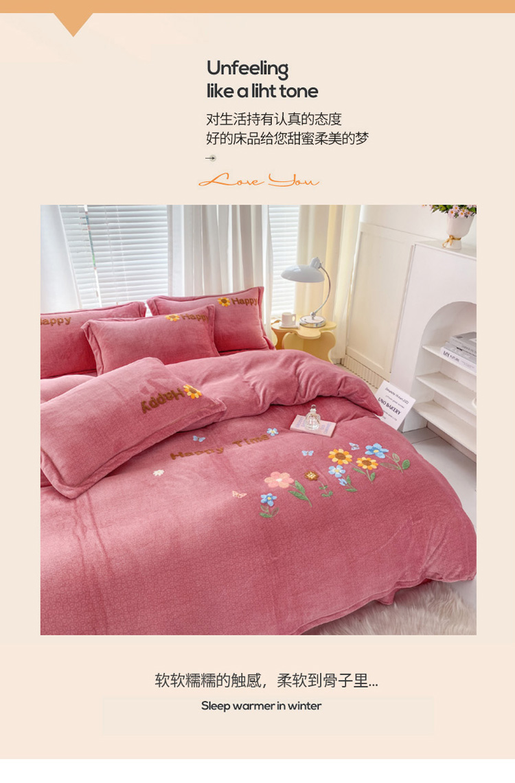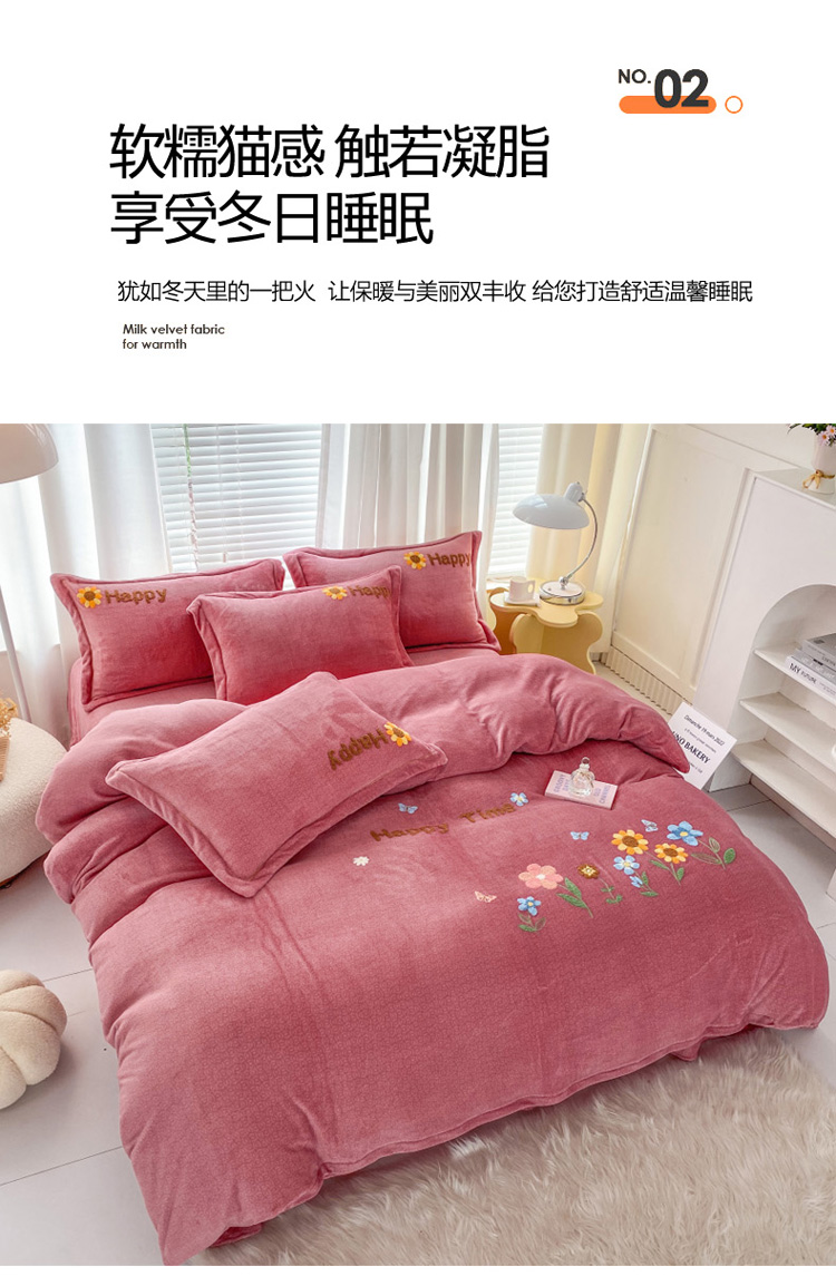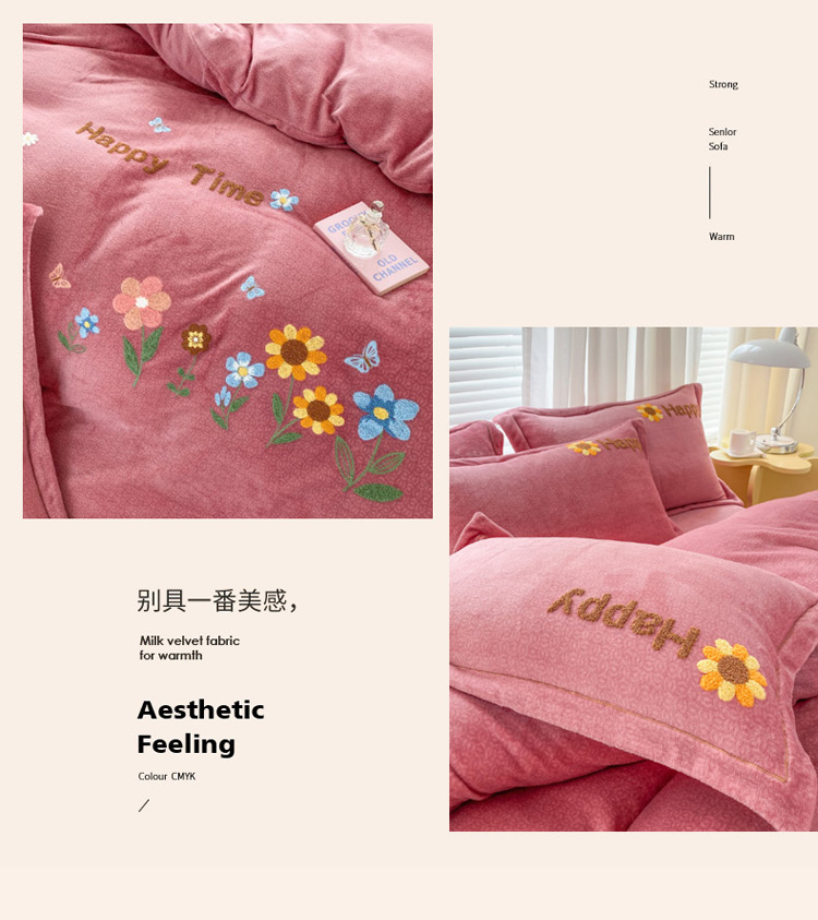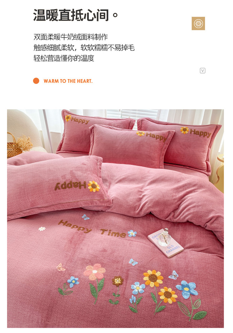 商品名称:云锦22新肌理纹高克重200克牛奶绒毛巾绣四件套向阳花开豆沙