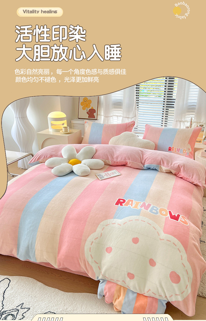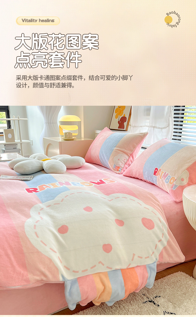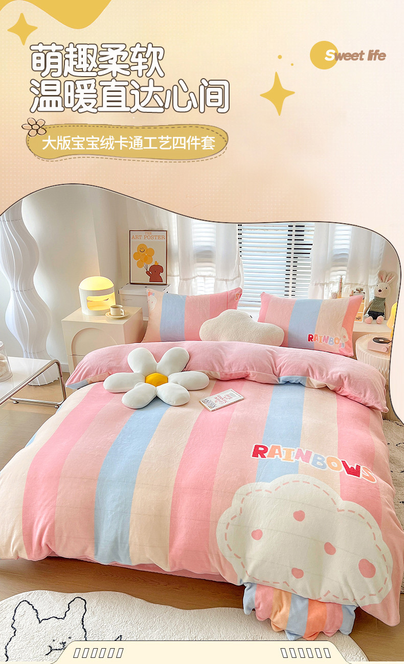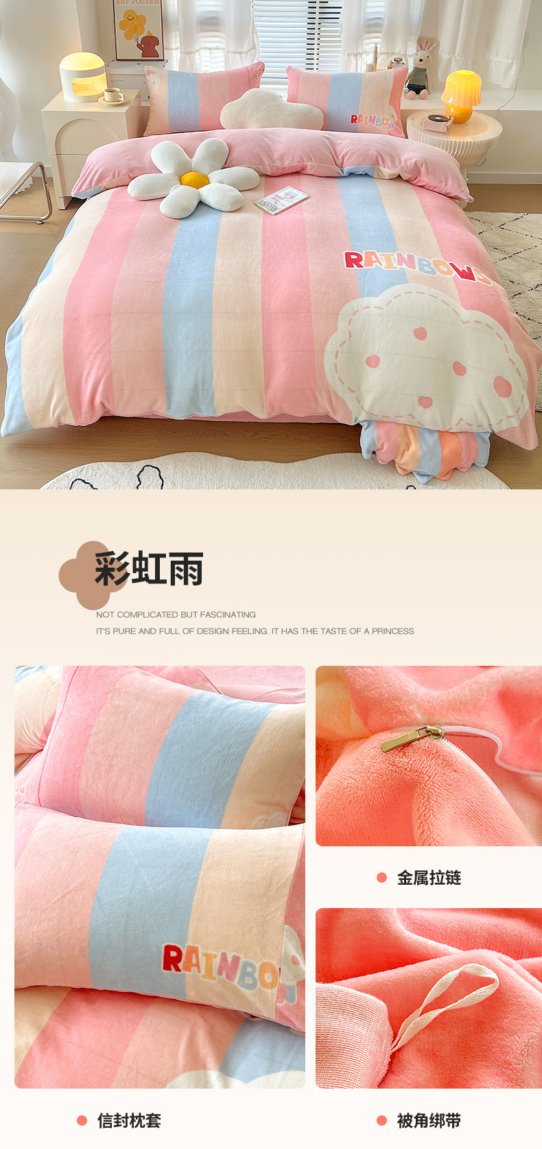 兄弟坊 2024大版宝宝绒数码印花卡通工艺款四件套 彩虹雨