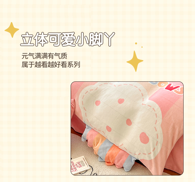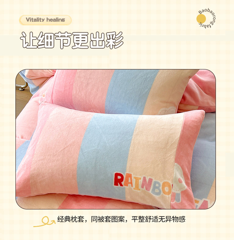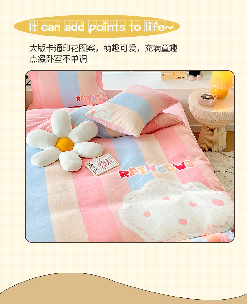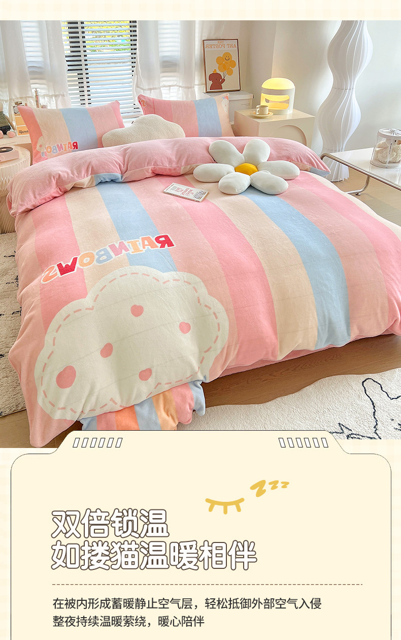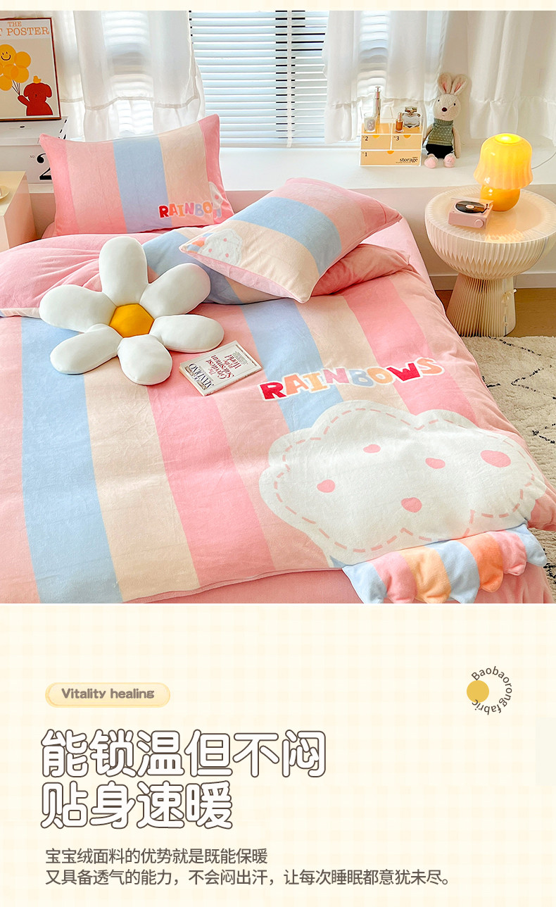 兄弟坊 2024大版宝宝绒数码印花卡通工艺款四件套 彩虹雨