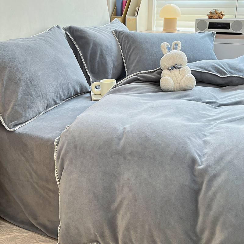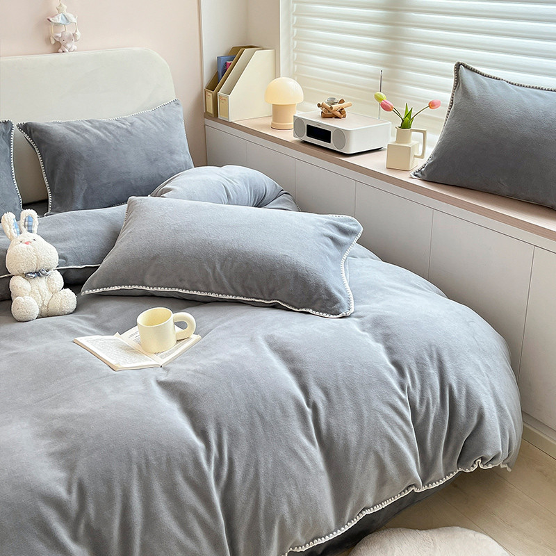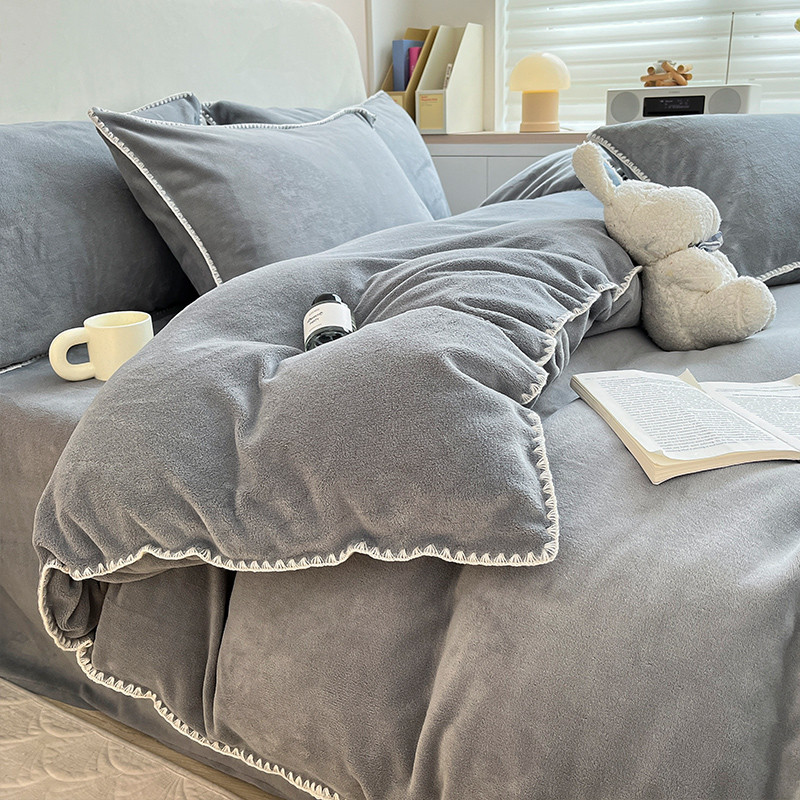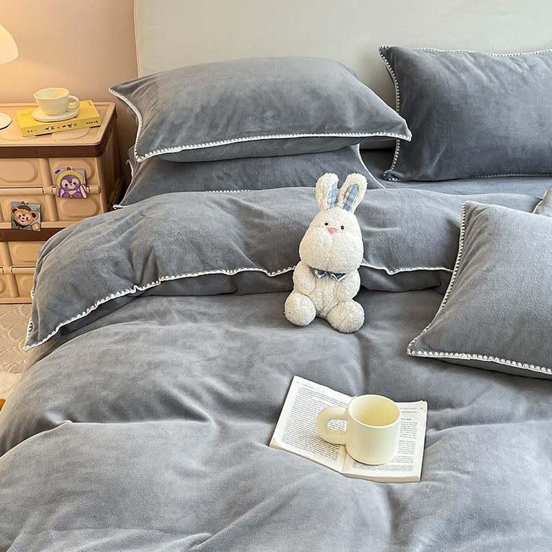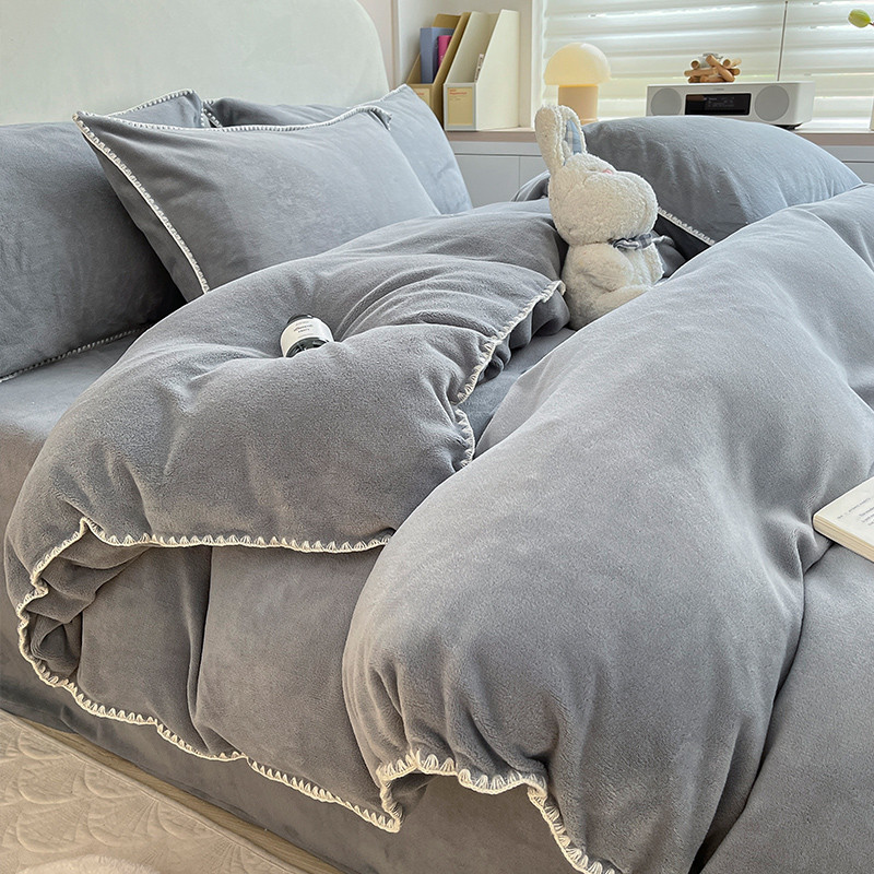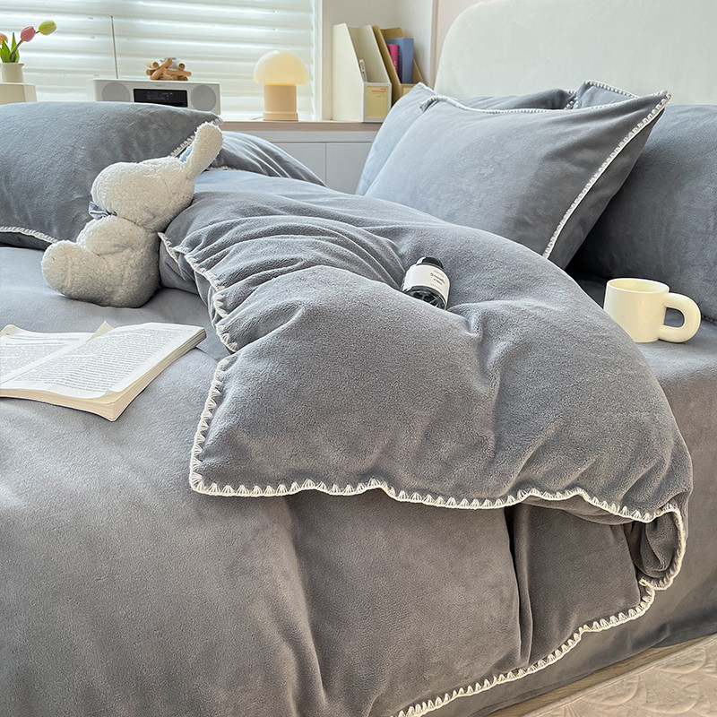 当前位置: 91家纺网 > 商品网购 > 床品套件 > 四件套 > 牛奶绒四件套 > 安哆啦 新款贝壳边工艺牛奶绒珊瑚绒四件套单被套 绅士灰