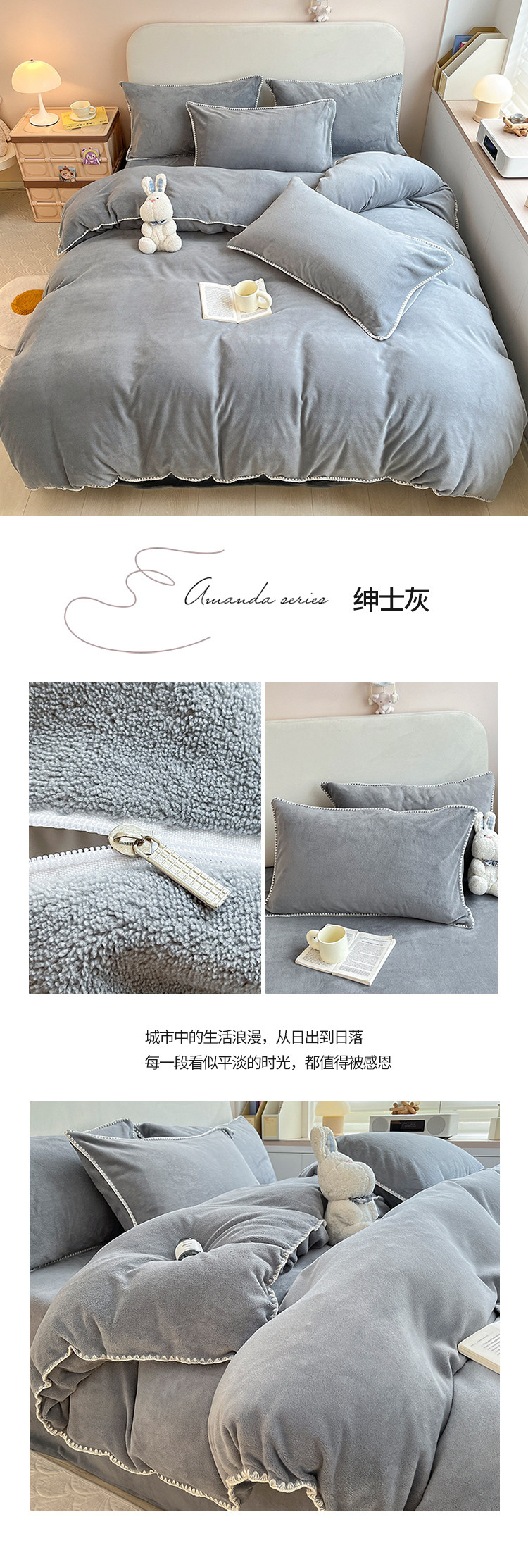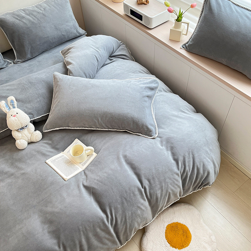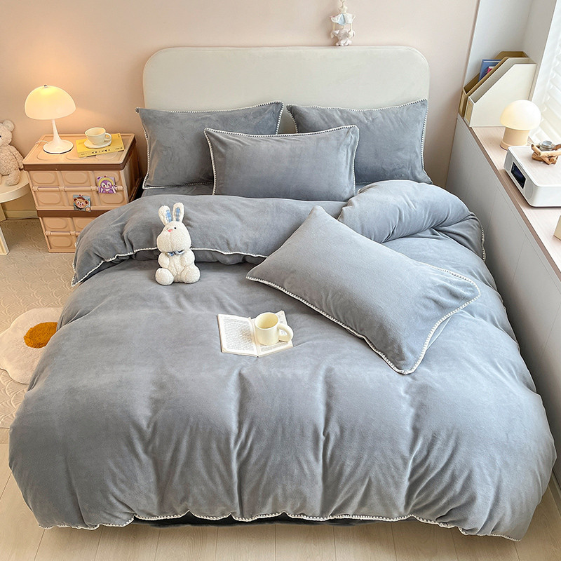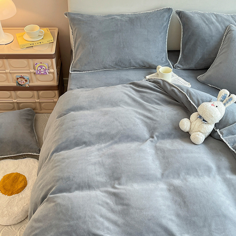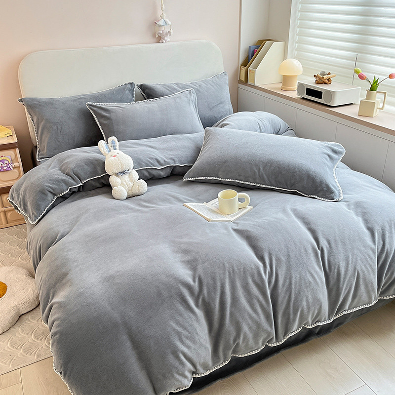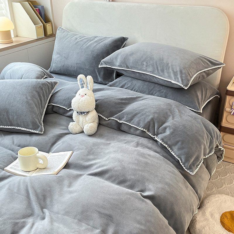 当前位置: 91家纺网 > 商品网购 > 床品套件 > 四件套 > 牛奶绒四件套 > 安哆啦 新款贝壳边工艺牛奶绒珊瑚绒四件套单被套 绅士灰