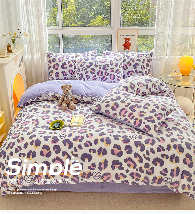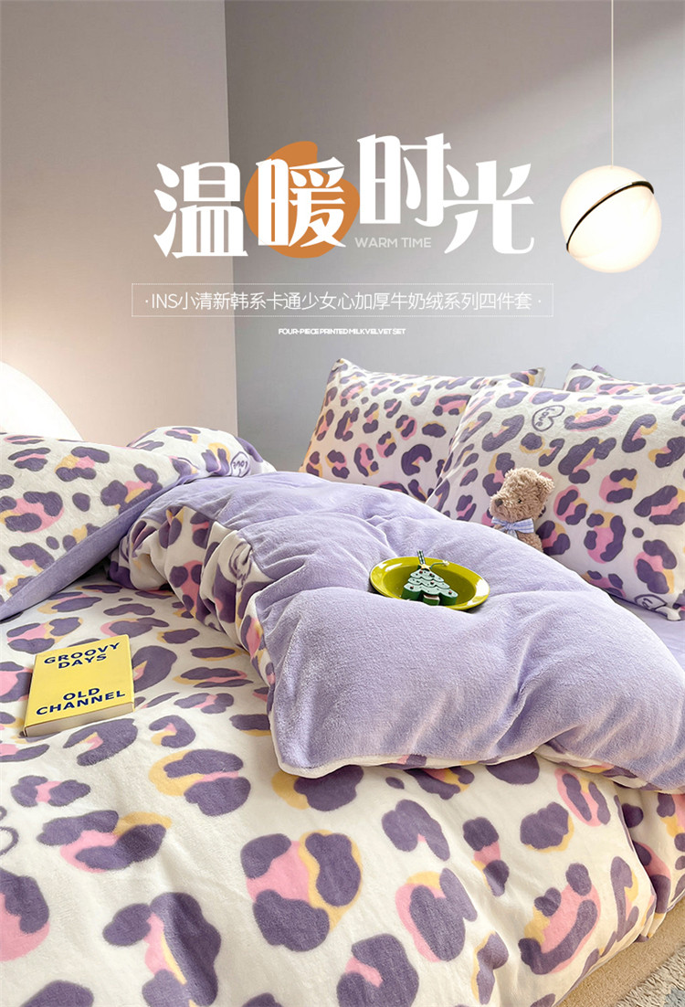 (总)桃子家居 2022新款ins小清新加厚牛奶绒系列四件套