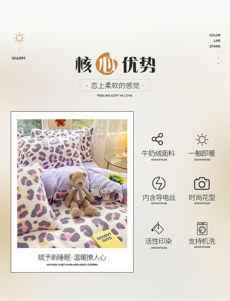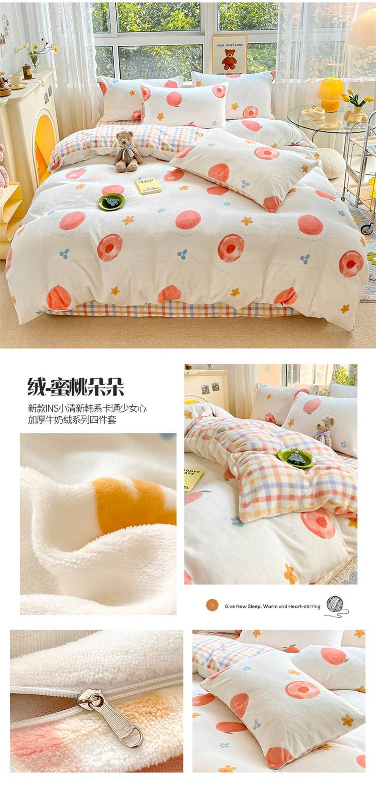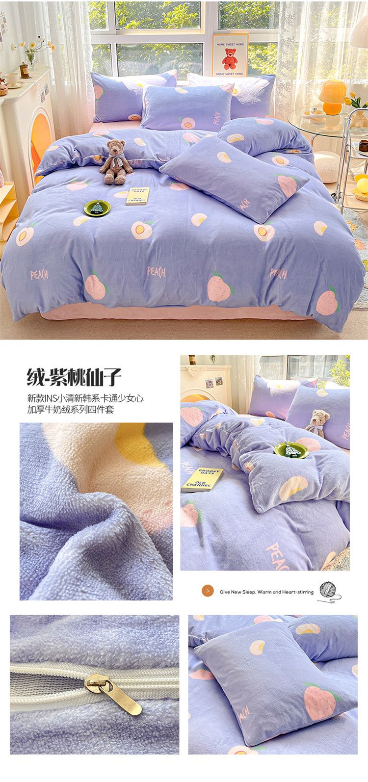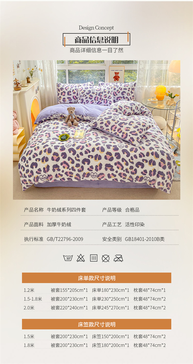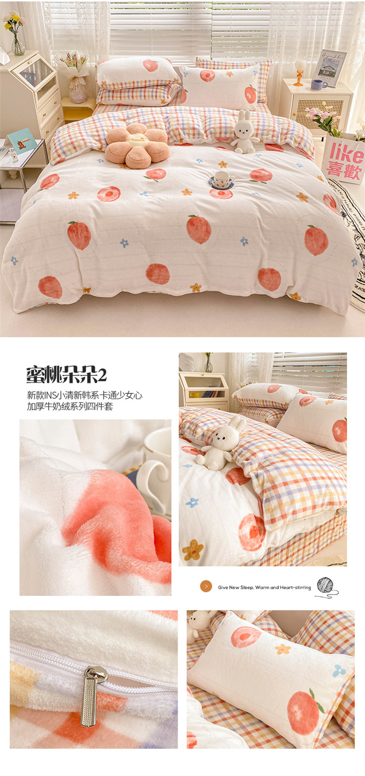 商品名称:(总)桃子家居 2022新款ins小清新加厚牛奶绒系列四件套